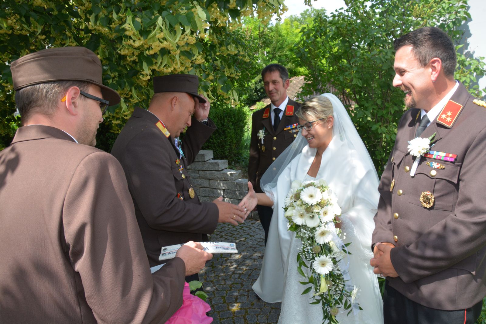 Nach der Trauung gratulierte das Abschnittskommando unter Führung von Abschnittskommandant BR Andreas Schwingl recht herzlich.