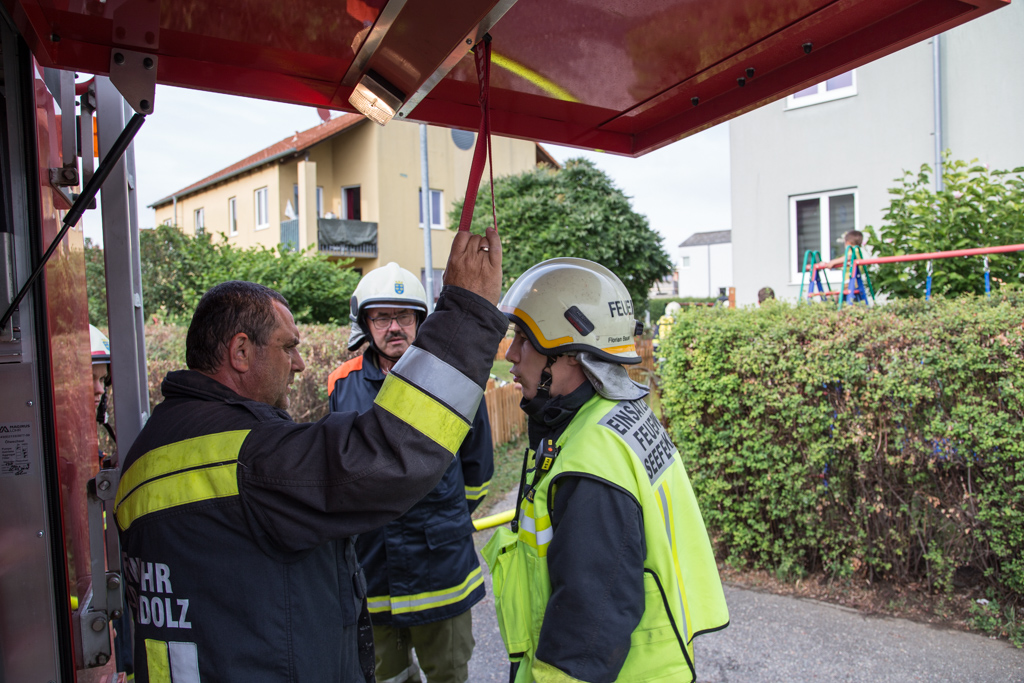 Die Feuerwehr Seefeld-Kadolz konnte wenige Sekunden nach der Alarmierung bereits ausrücken, da mehrere Feuerwehrmitglieder mit Arbeiten im Feuerwehrhaus beschäftigt waren. Zusätzlich fand noch das Abschlussfest im benachbarten Kindergarten statt wo ebenfalls mehrere Feuerwehrmitglieder anwesend waren.