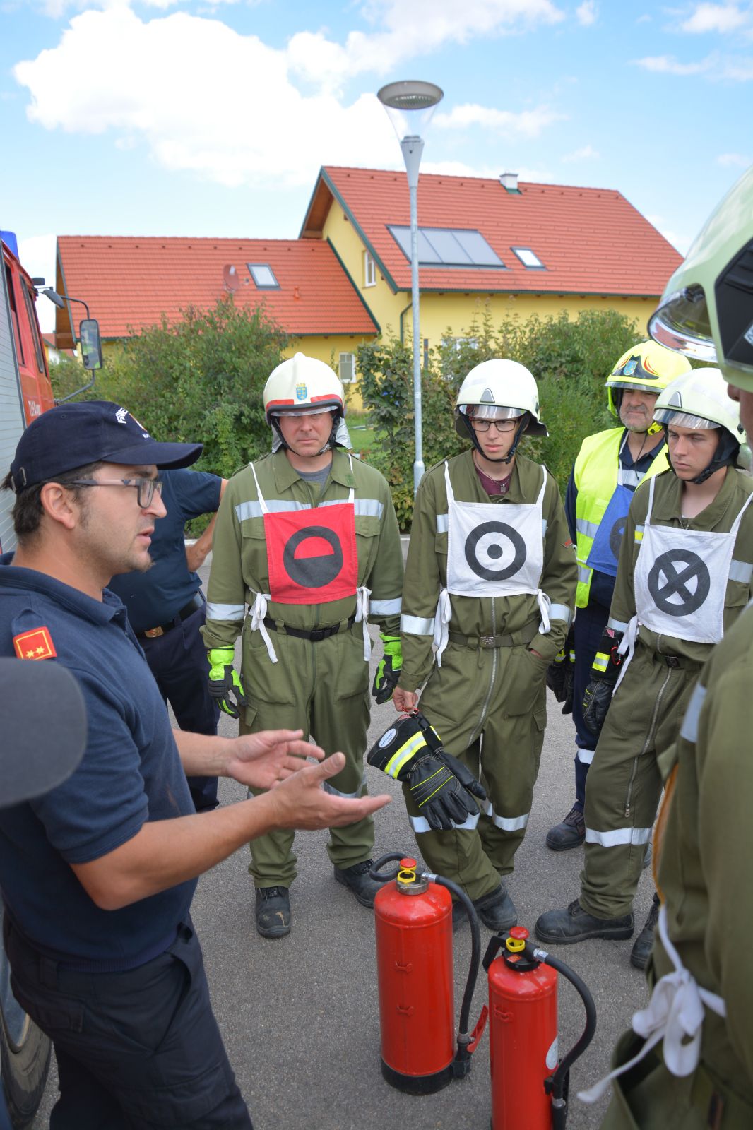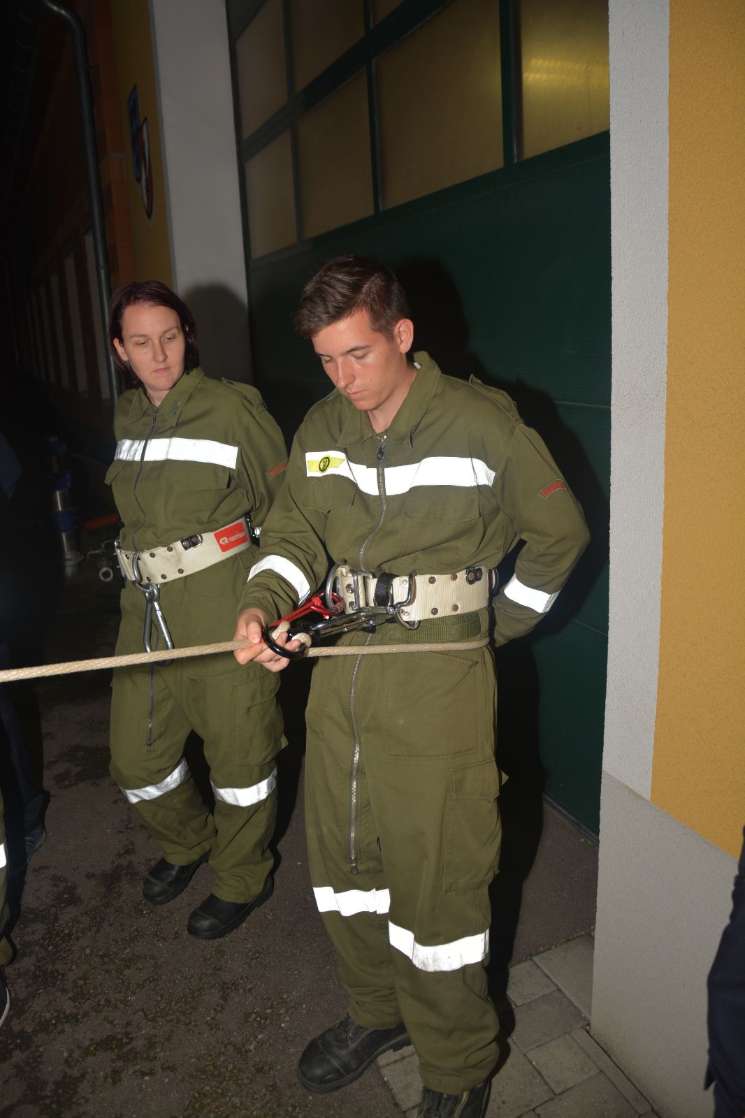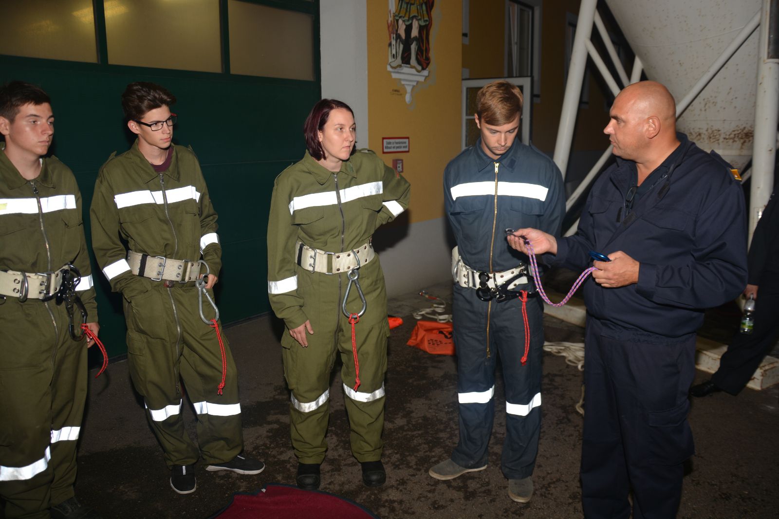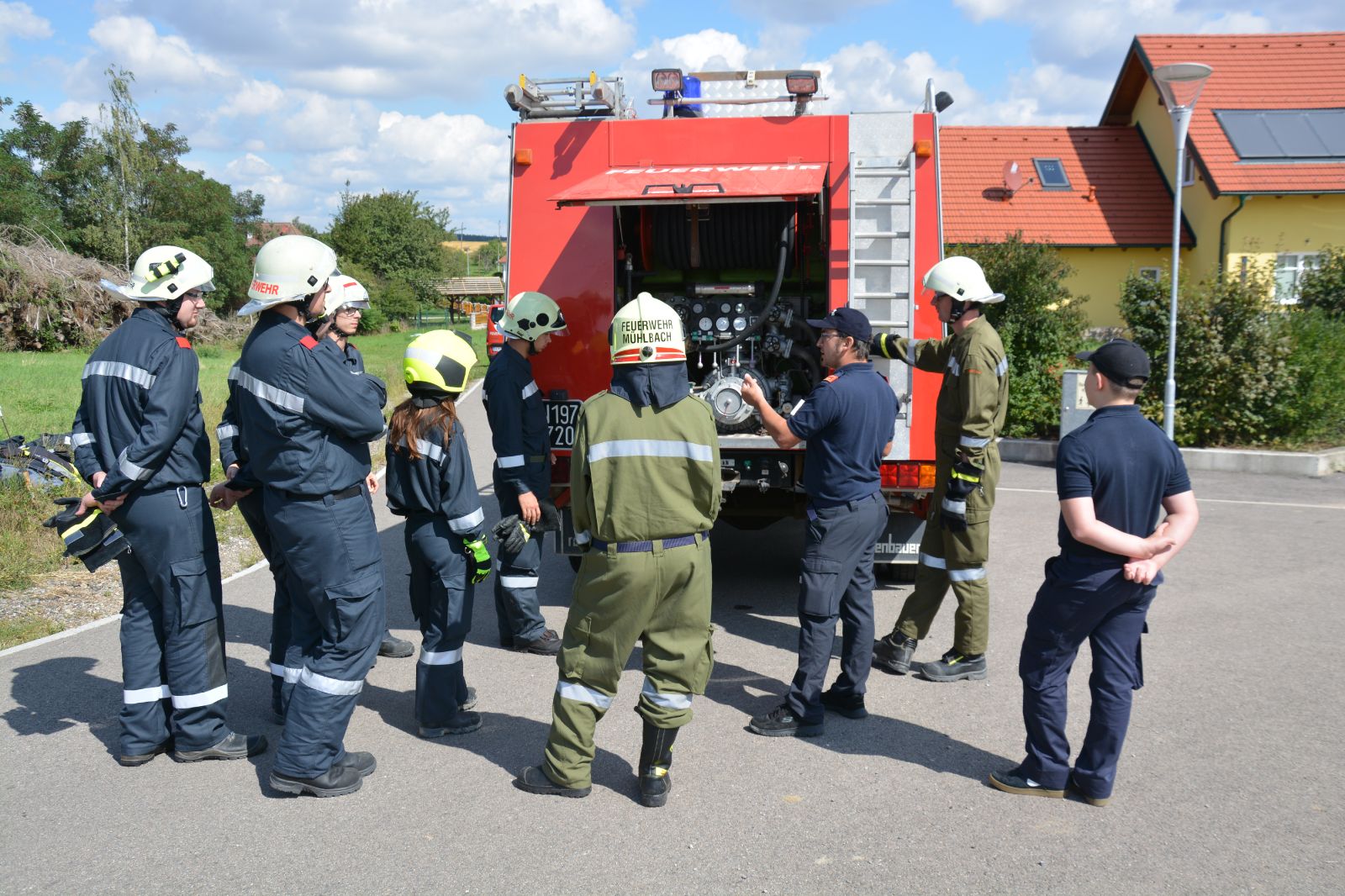 Am ersten Tag standen folgende Themen am Stundenplan *) Gefahren an der Einsatzstelle *) der Feuerwehreinsatz *) die Löschgruppe (Theorie) *) Verhalten vor der Gruppe *) Leinen, Knoten und Rettungsmittel *) Kleinlöschgeräte