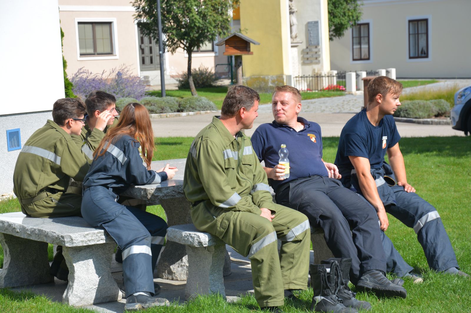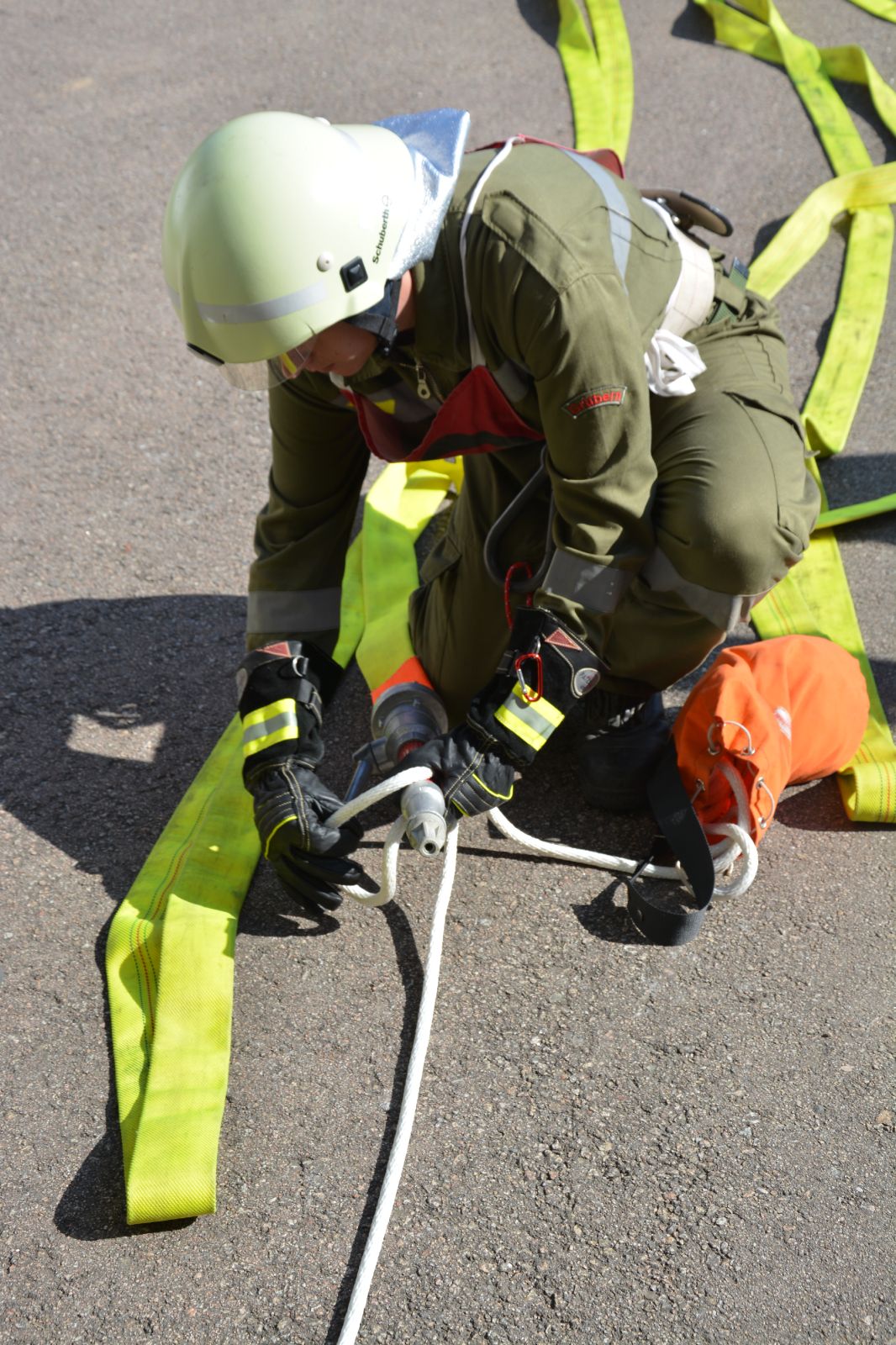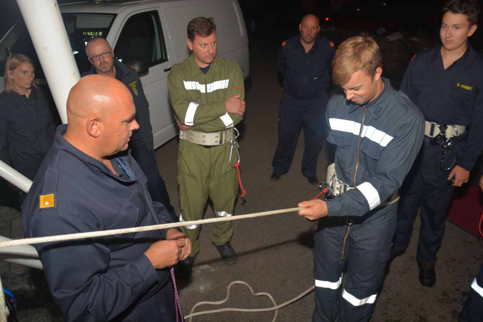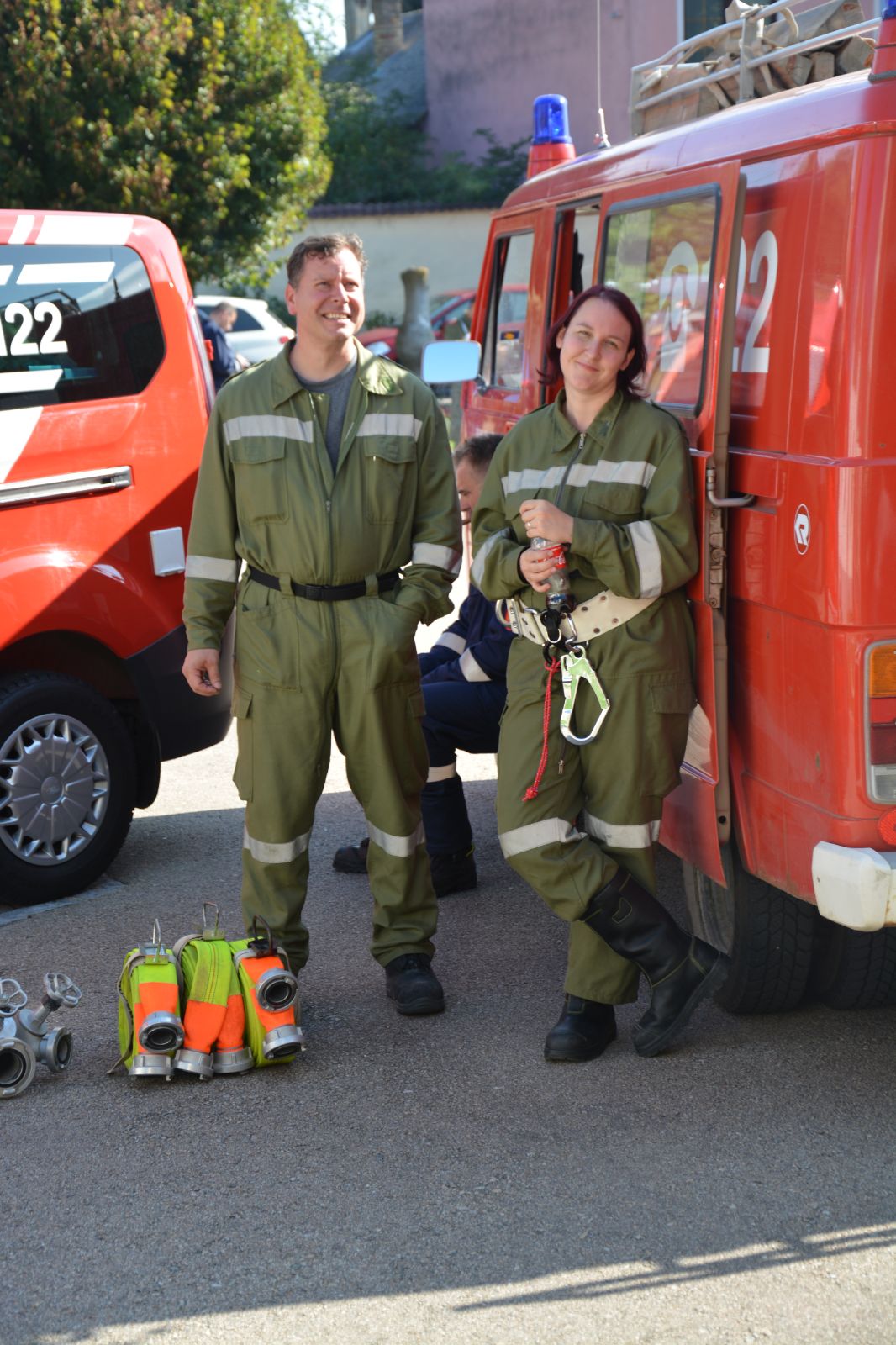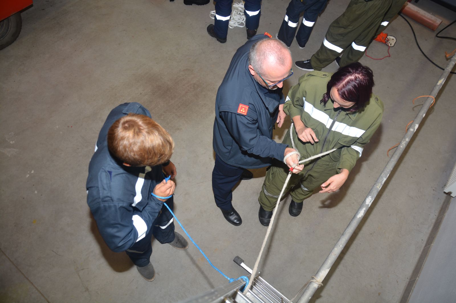 Am ersten Tag standen folgende Themen am Stundenplan *) Gefahren an der Einsatzstelle *) der Feuerwehreinsatz *) die Löschgruppe (Theorie) *) Verhalten vor der Gruppe *) Leinen, Knoten und Rettungsmittel *) Kleinlöschgeräte