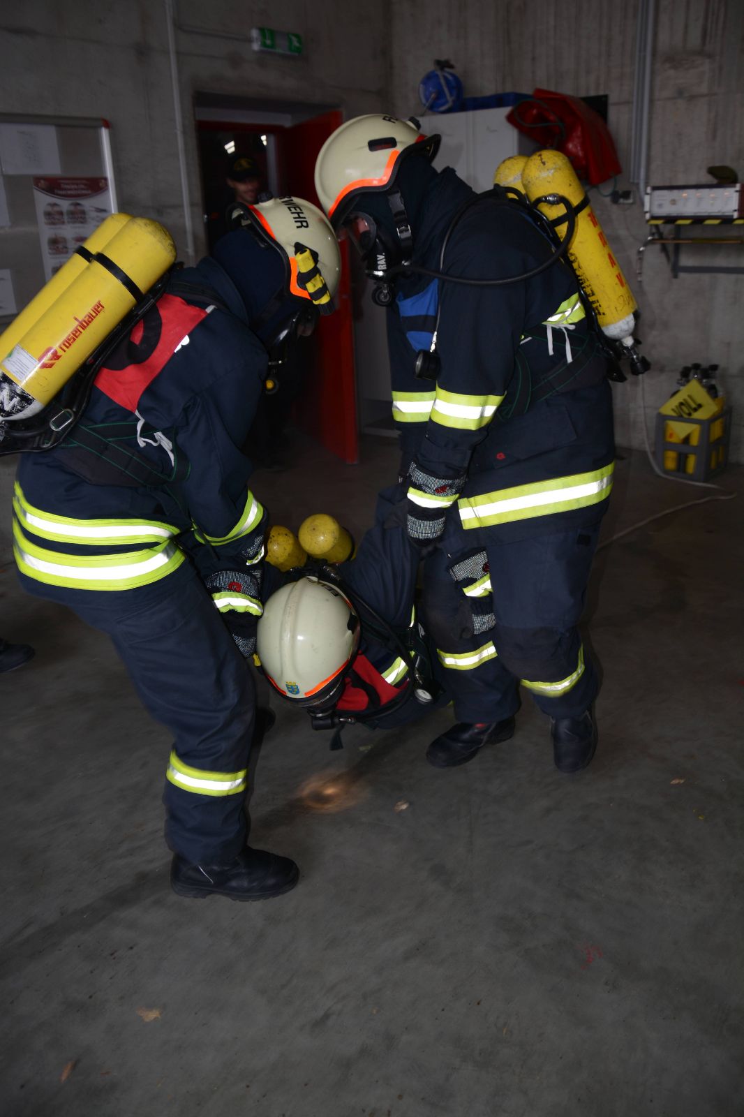Die Leistungsprüfung wurde in der Schutzbekleidung abgelegt und somit kamen die Kandidaten ordentlich ins Schwitzen.