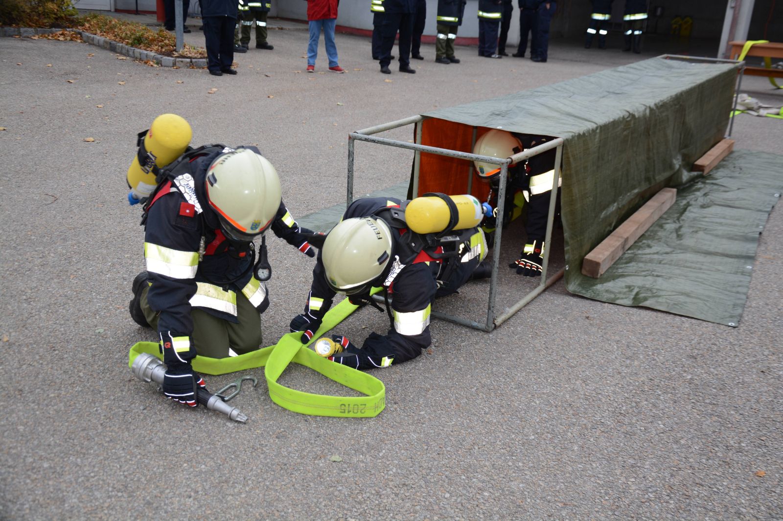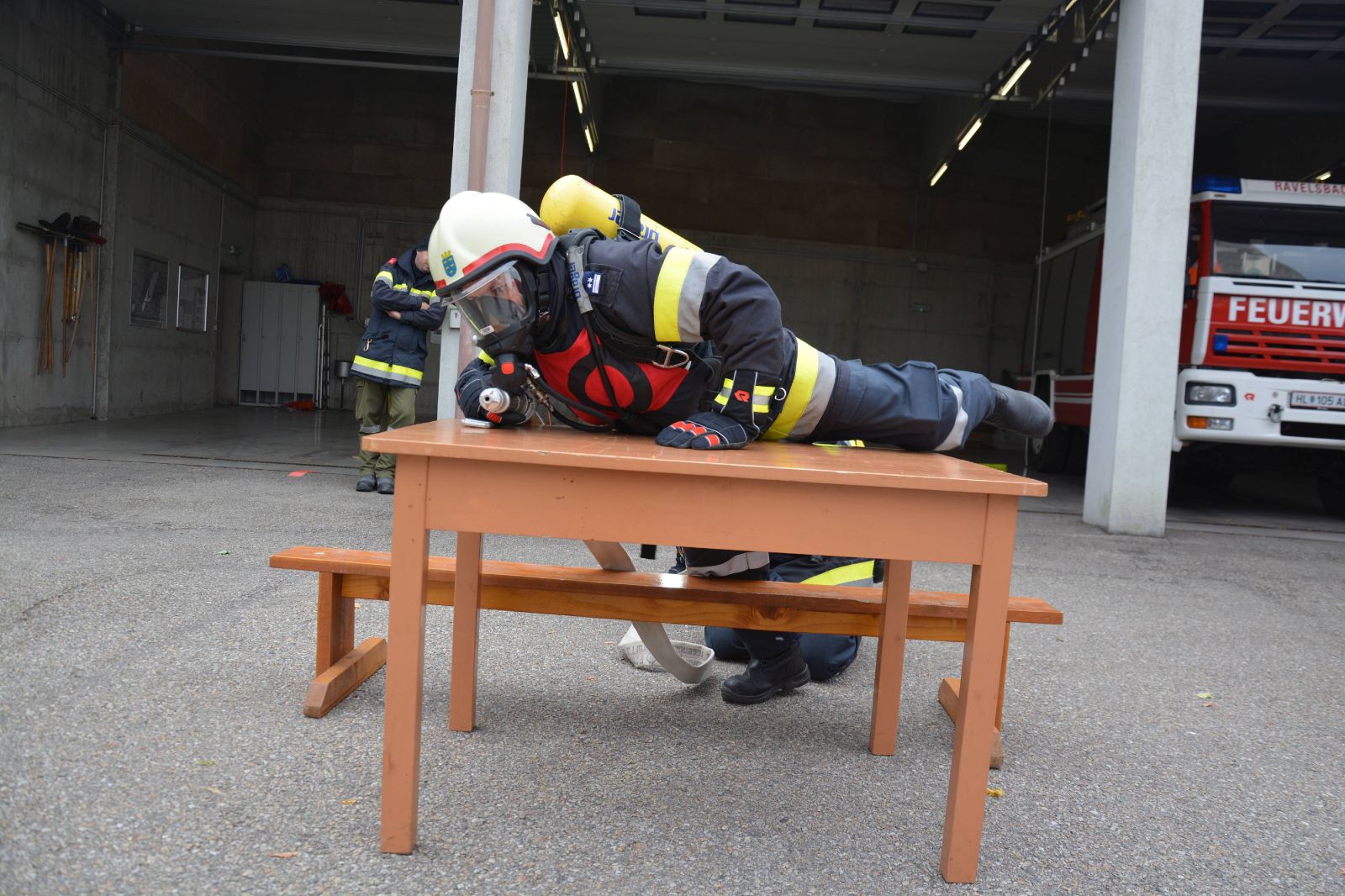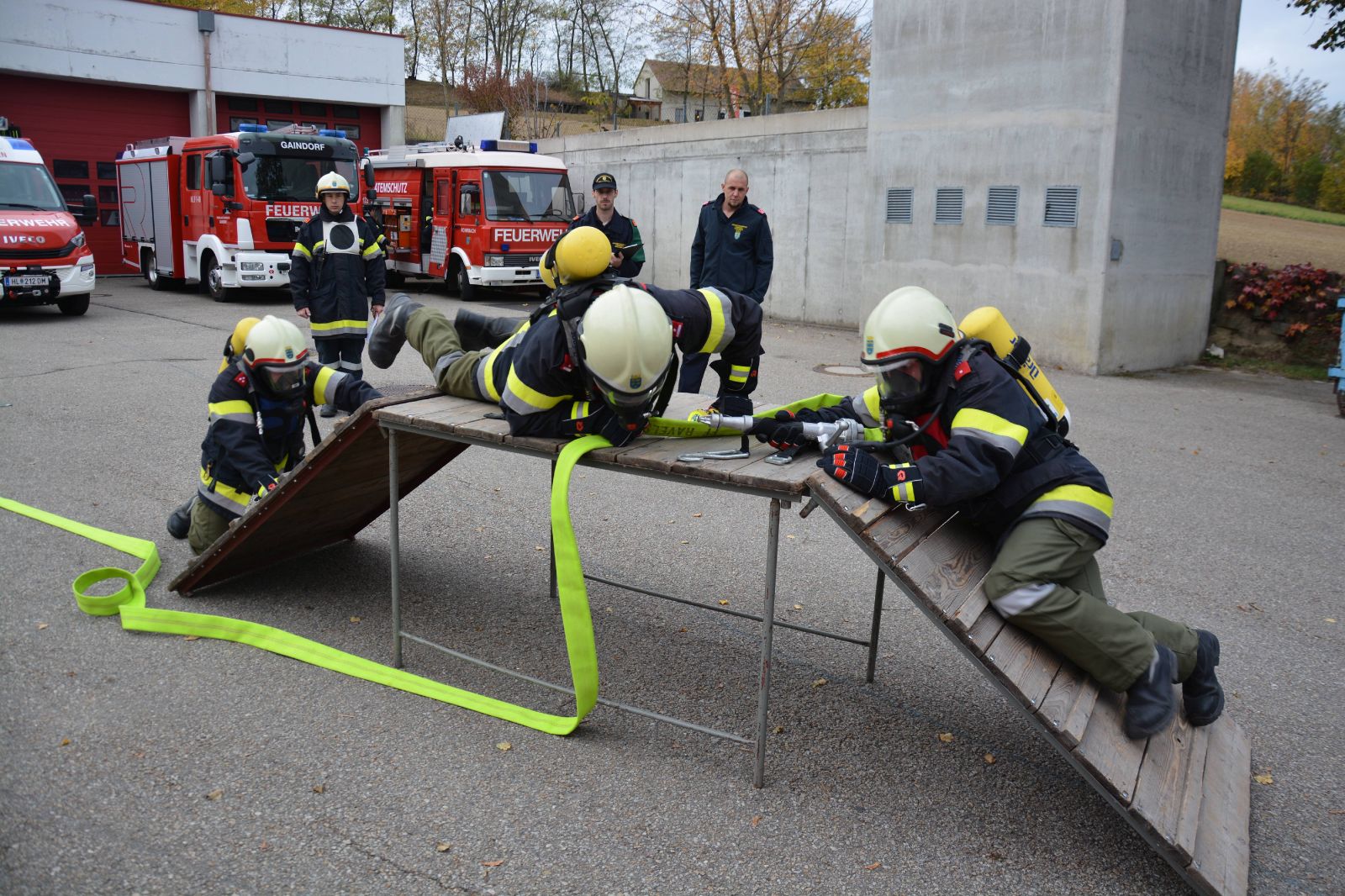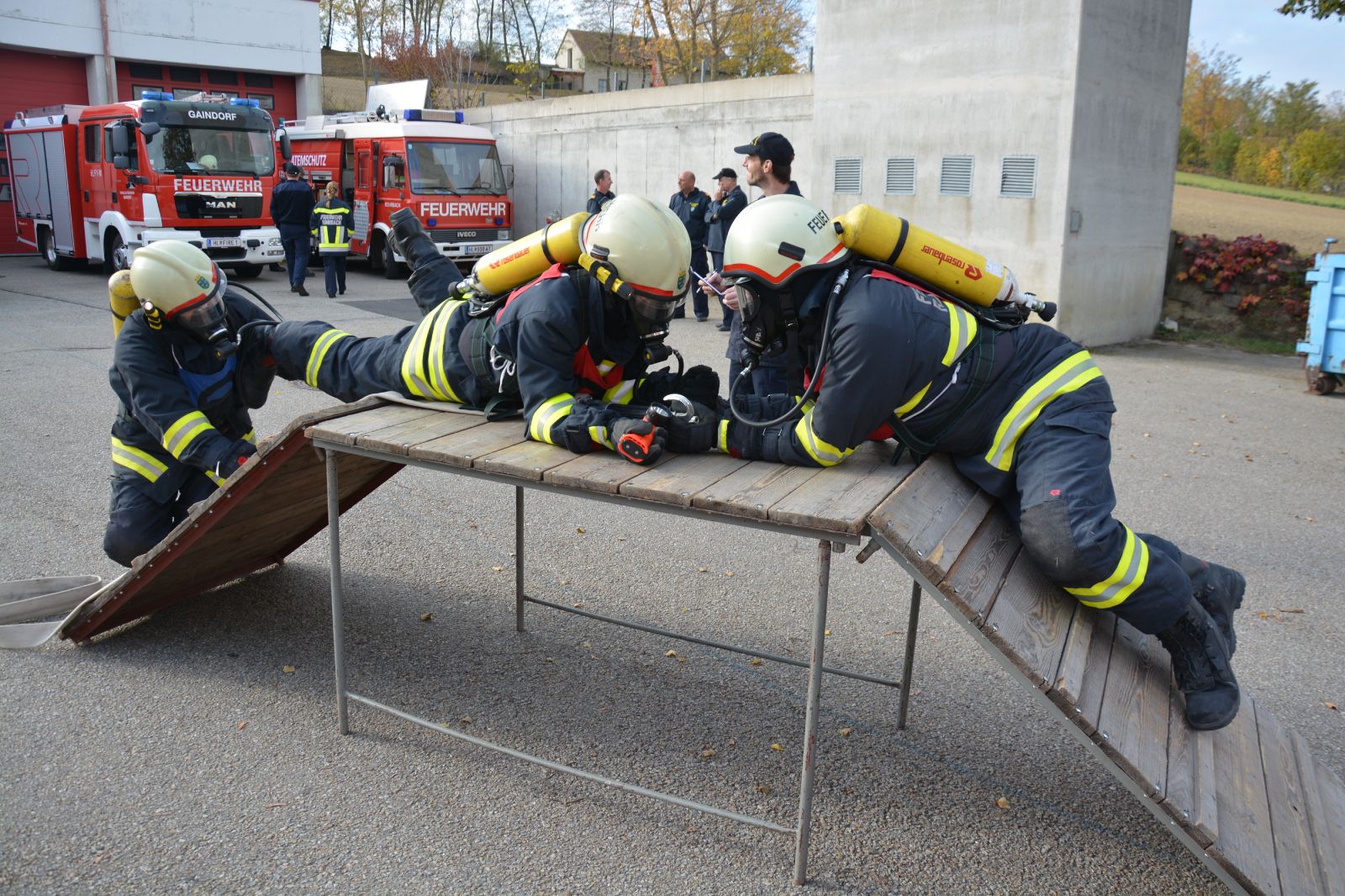 Heute, am Nationalfeiertag, unterzogen sich 5 Atemschutztrupps des Unterabschnittes Ravelsbach der Ausbildungsprüfung Atemschutz in Bronze, Silber und Gold.