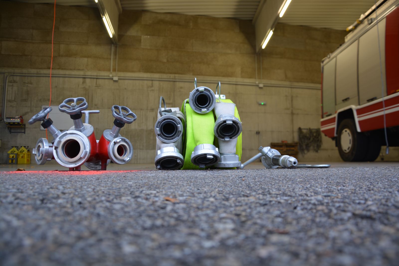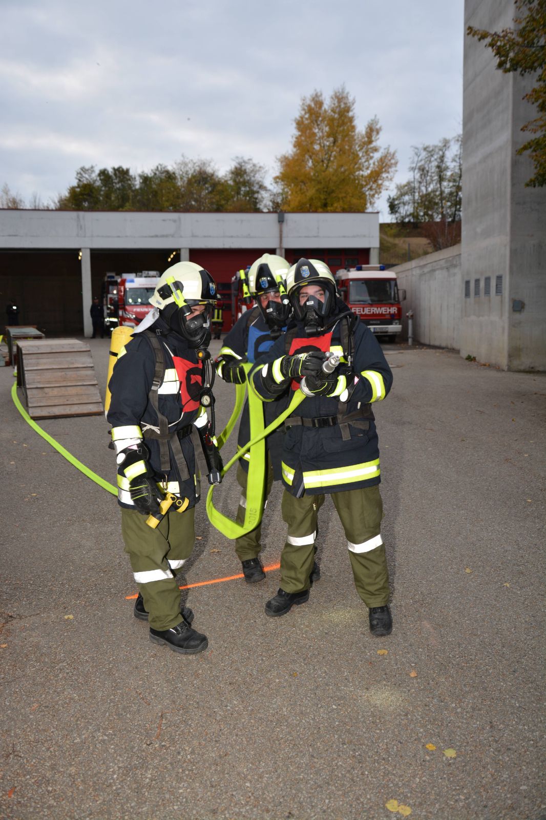 °) mit einer Löschleitung über einen Hindernisparcours