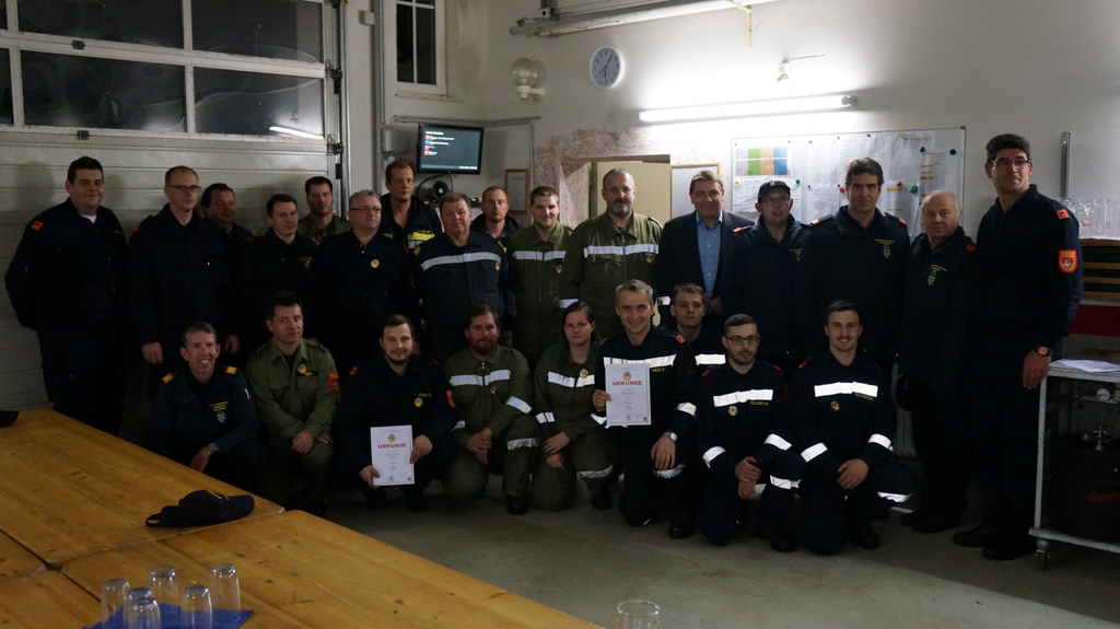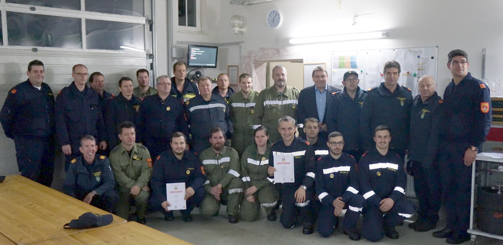 Insgesamt stellten sich vier Mitglieder der FF Heufurth, vier Mitglieder der FF Pleissing-Waschbach und sieben Mitglieder der FF Riegersburg der Ausbildungsprüfung.