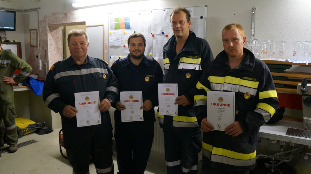 Alle vier Trupps haben die Ausbildungsprüfung „Atemschutz“ erfolgreich absolviert. Folgende Trupps sind zur Prüfung angetreten: