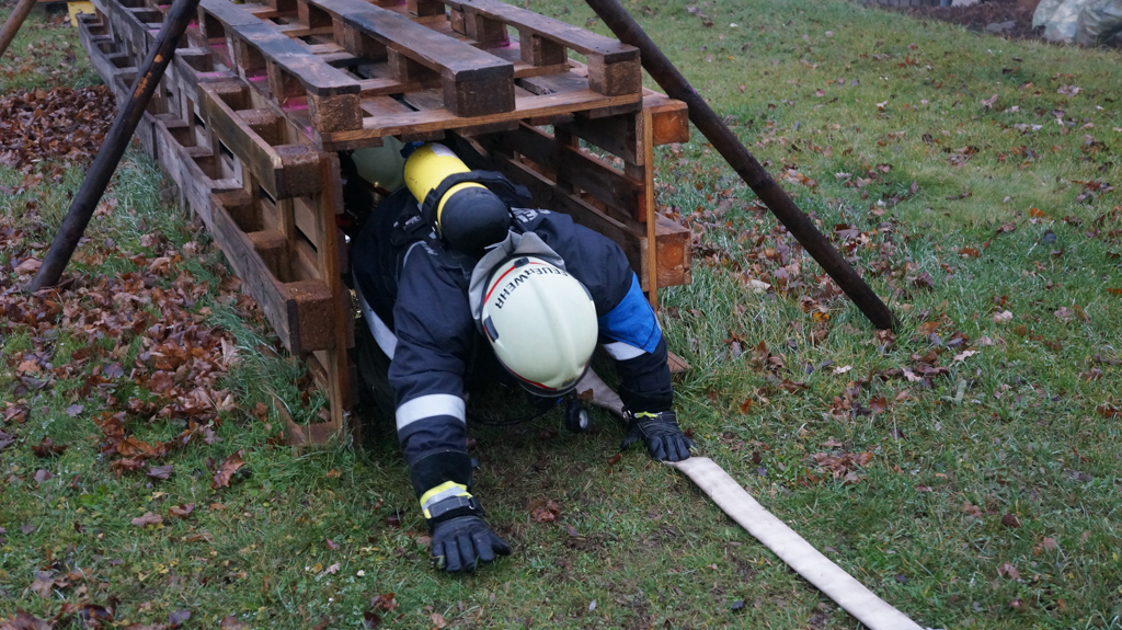 Die Mitglieder müssen in einem verrauchten Raum eine Person finden und retten. In dem Raum sind außerdem mit Gefahrennummern versehene Kanister gelagert, die der Atemschutz-Trupp dem Gruppenkommandanten zu melden hat.
