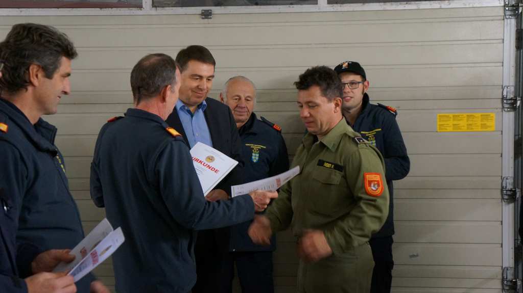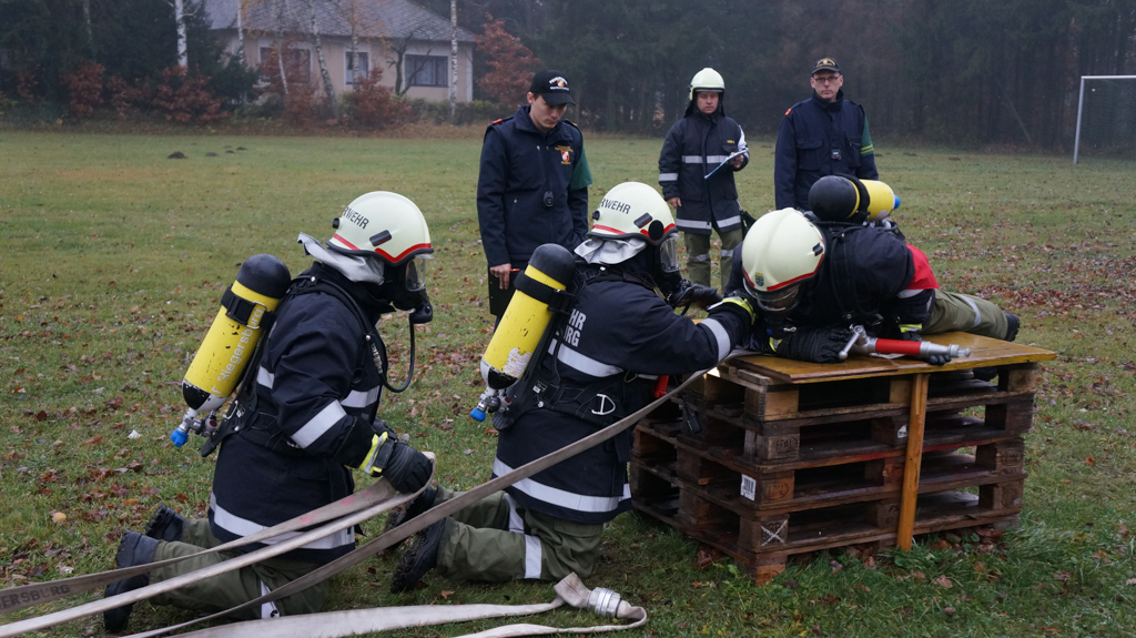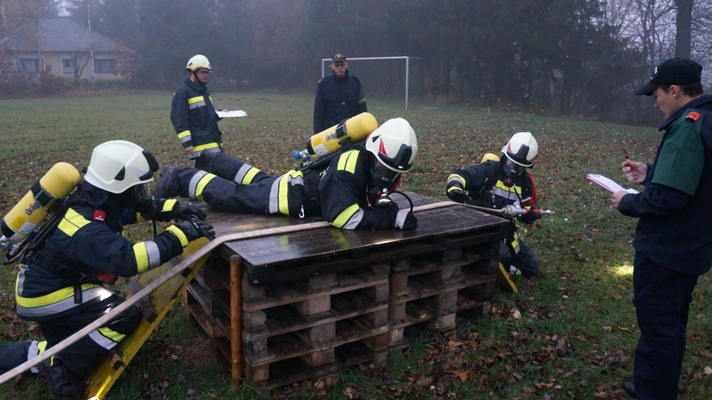 Nach intensiven Vorbereitungen traten am Samstag, den 10.11.2018 insgesamt vier Gruppen von den Feuerwehren Heufurth (mit Bezirksfeuerwehrkommandantstv. Reinhard Scheichenberger), Pleissing-Waschbach und Riegersburg zur Ausbildungsprüfung „Atemschutz“ an. Stattgefunden hat die Prüfung am Sportplatz in Riegersburg unter der Leitung von Hauptprüfer OBI Klaus Schüller der FF Groß-Stelzendorf, sowie OBI Markus Pfeifer von der FF Hollabrunn und BI Florian Bauer von der FF Seefeld-Kadolz.