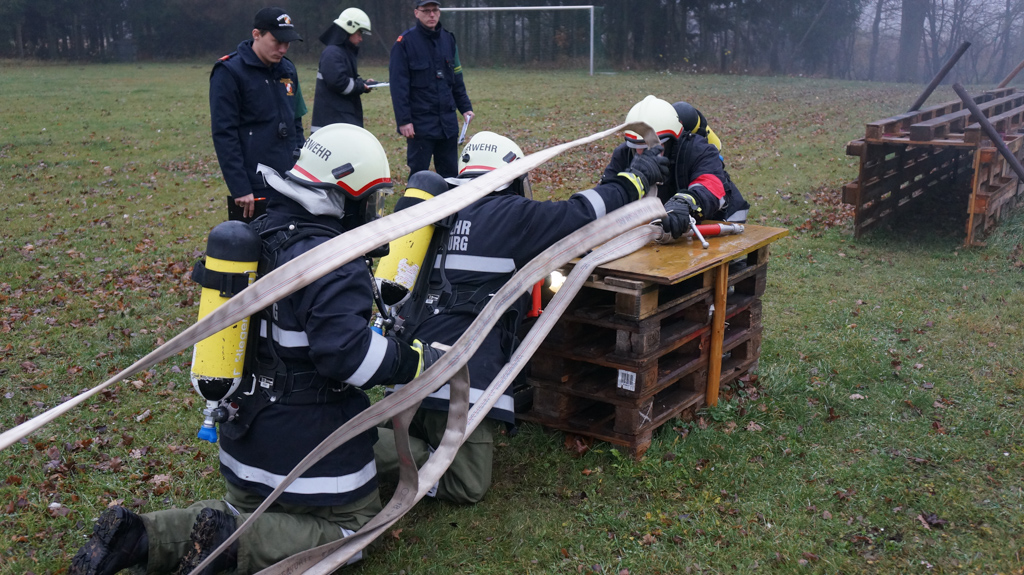 Bei der Ausbildungsprüfung „Atemschutz“ liegt das Hauptaugenmerk nicht auf dem schnellen Arbeiten, sondern auf guter Zusammenarbeit innerhalb der Gruppe, richtiger