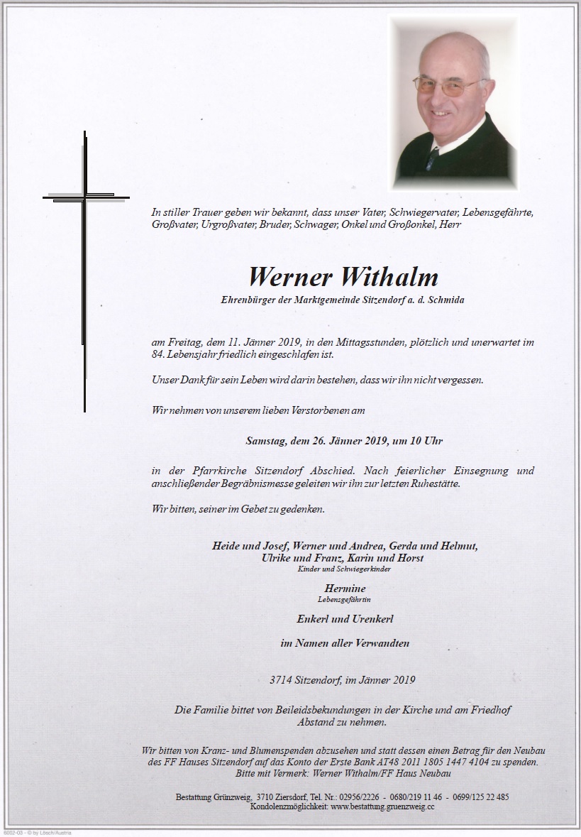 Leider müssen wir die traurige Nachricht vom Ableben unser Kameraden Ehrenbrandrat Werner Withalm mitteilen.