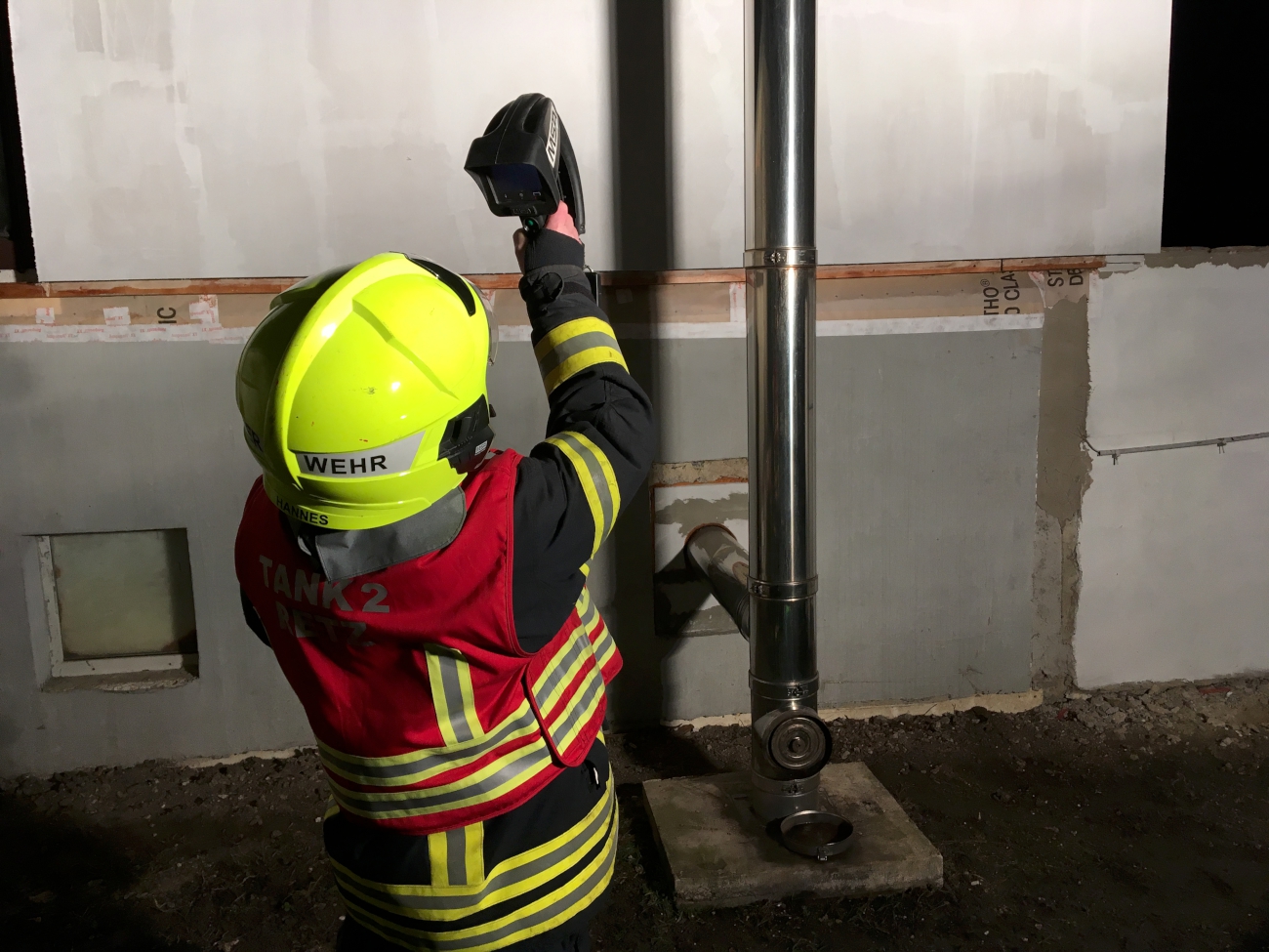 Vor Ort wurde sofort der Brandschutzes und die Beleuchtung aufgebaut. Der Rauchfangkehrer kontrollierte den Heizkessel, begutachtete den Kamin und konnte nach kurzer Zeit Entwarnung geben. Mit der Wärmebildkamera wurden ständig die Temperaturen gemessen.