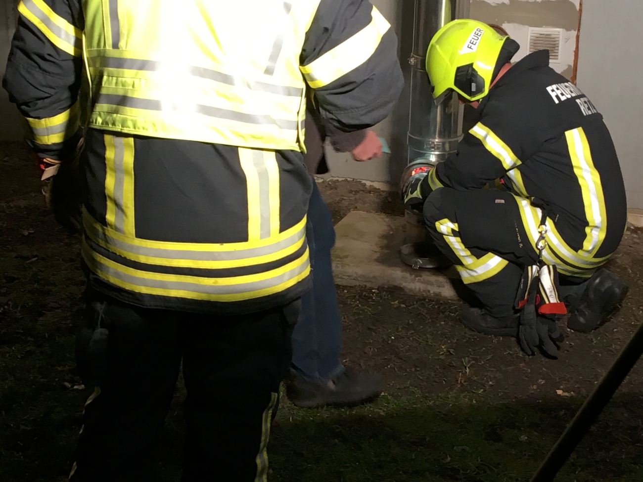 Nach weiterer Beobachtung sanken die Temperaturen am Kessel und am Kamin und die Kameraden konnten wieder ins Feuerwehrhaus einrücken.
