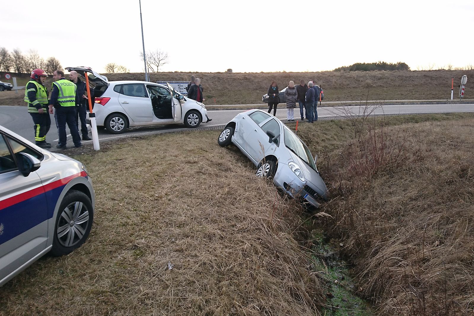 Dabei kam ein Lenker mit seinem PKW von der Fahrbahn ab und rutsche in den angrenzenden Entwässerungsgraben.