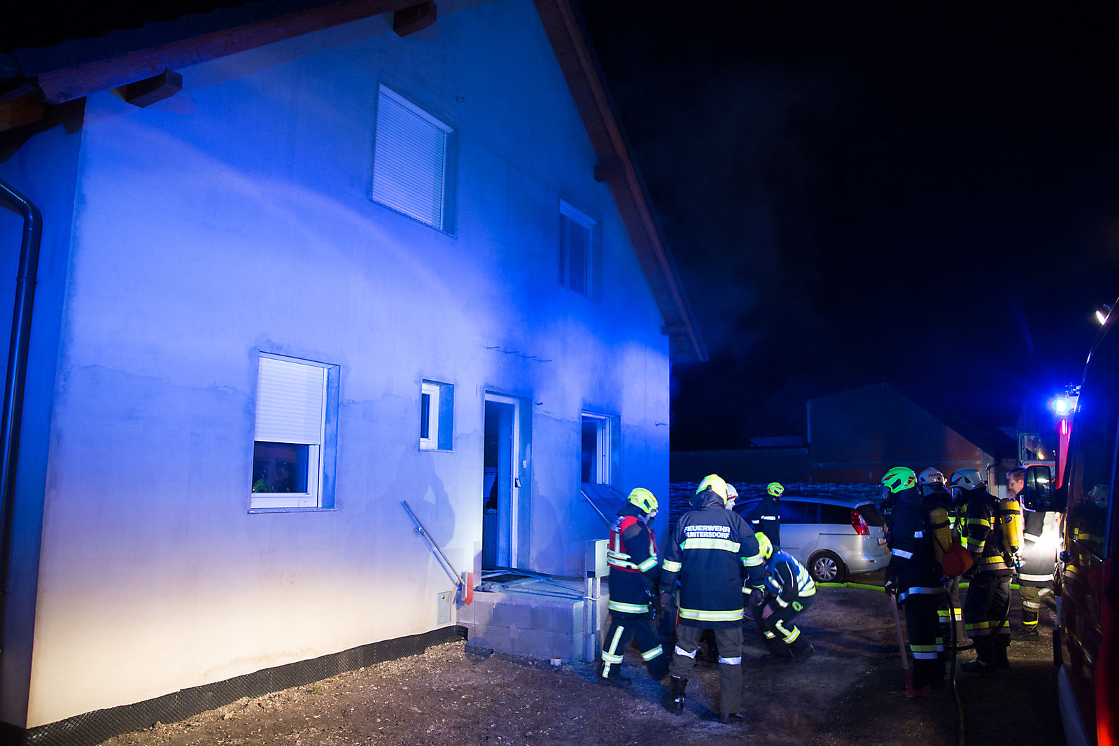 Gleichzeitig drang über die Vorderseite ein Atemschutztrupp ein und suchte nach den Haustieren der Familie. Ein weiterer Atemschutztrupp führte die Löscharbeiten im Bereich der Küche durch. Der Brand konnte rasch unter Kontrolle gebracht werden. Im Anschluss wurden Lüftungsöffnungen geschaffen und der Neubau belüftet.