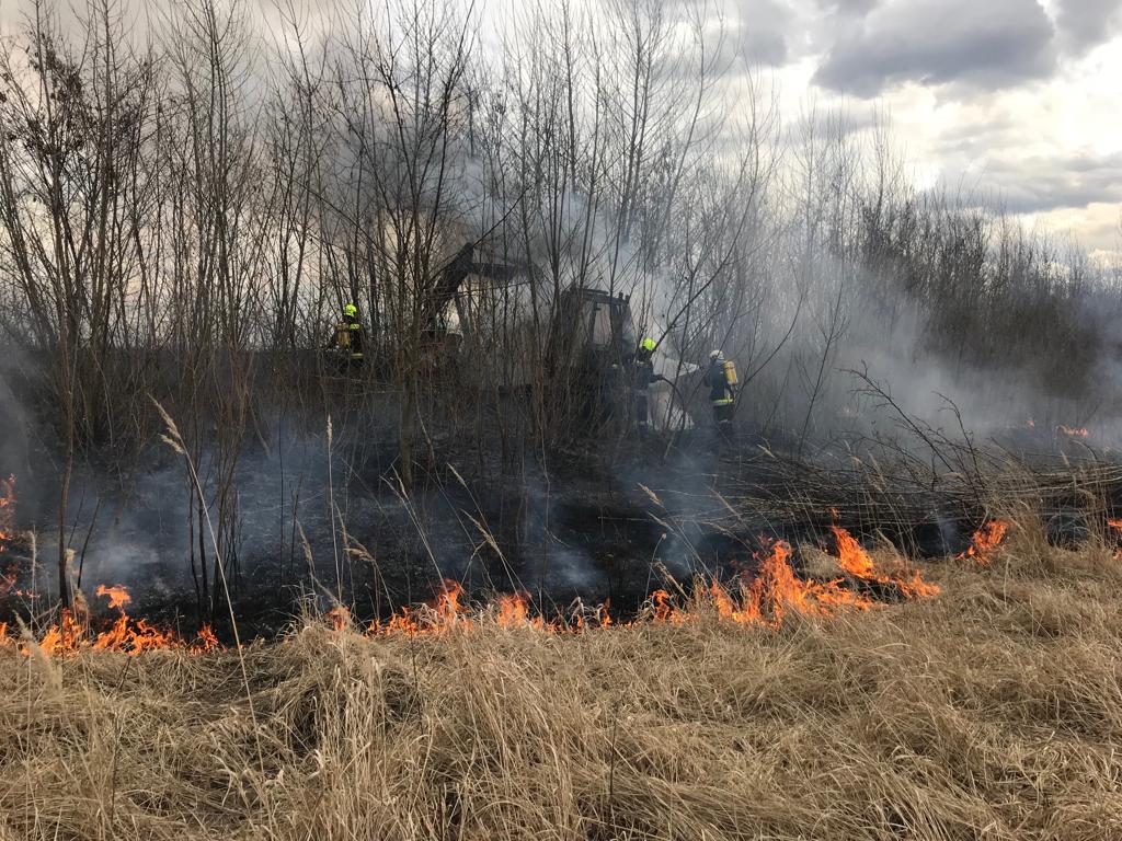 Der Brand bereitete sich auf das angrenzende Waldstück aus. Der Bagger wurde mit Schaum abgelöscht und die Nachlöscharbeiten wurden unter Atemschutz durchgeführt.