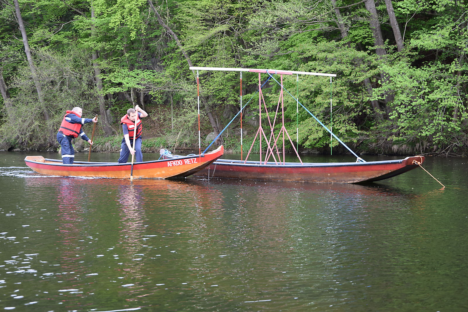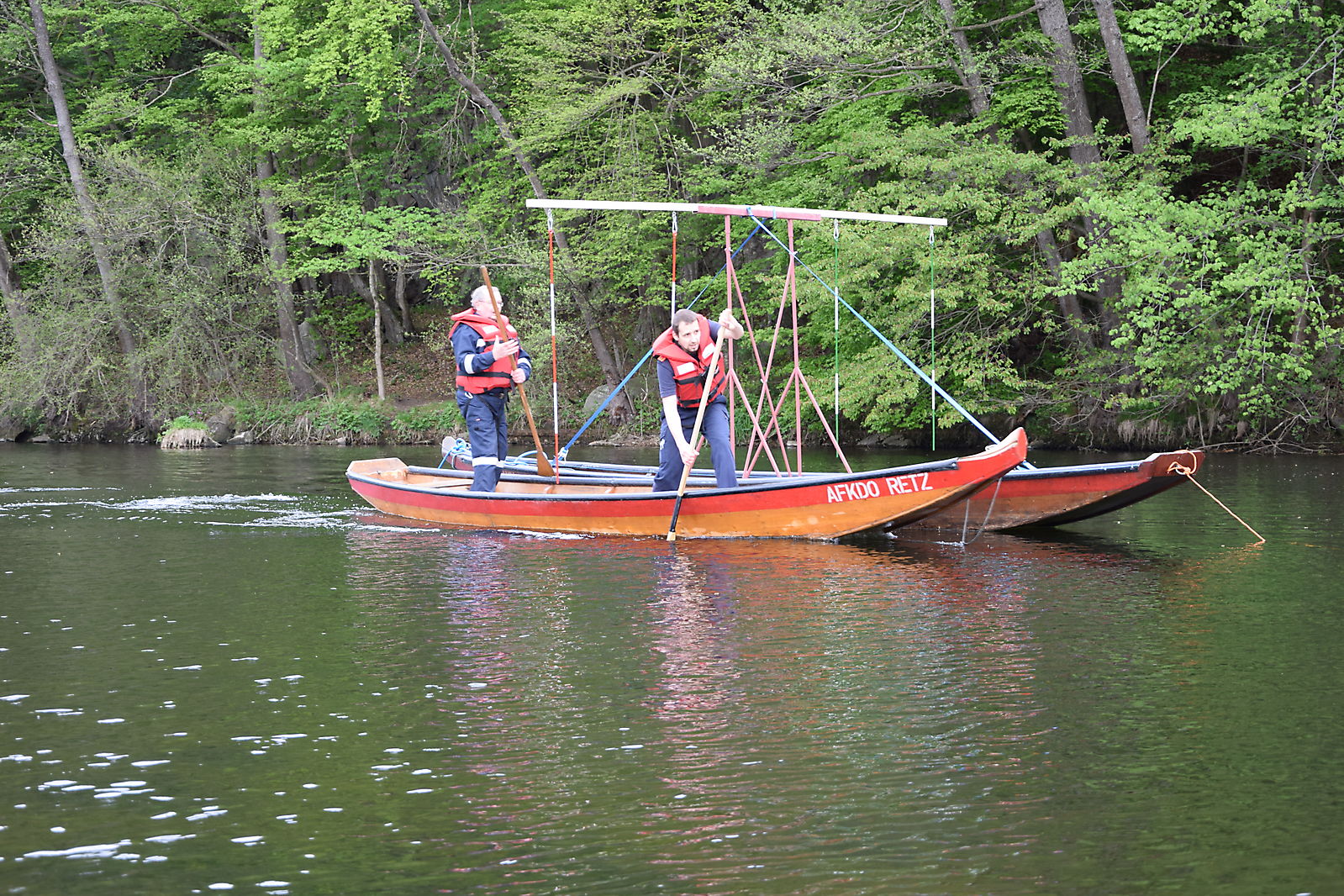 Die Zillengasse wurde auch gleich in einer Zille aufgebaut und in der Thaya platziert, nach dem Üben, wurde die Zillengasse wieder abgebaut und verstaut.