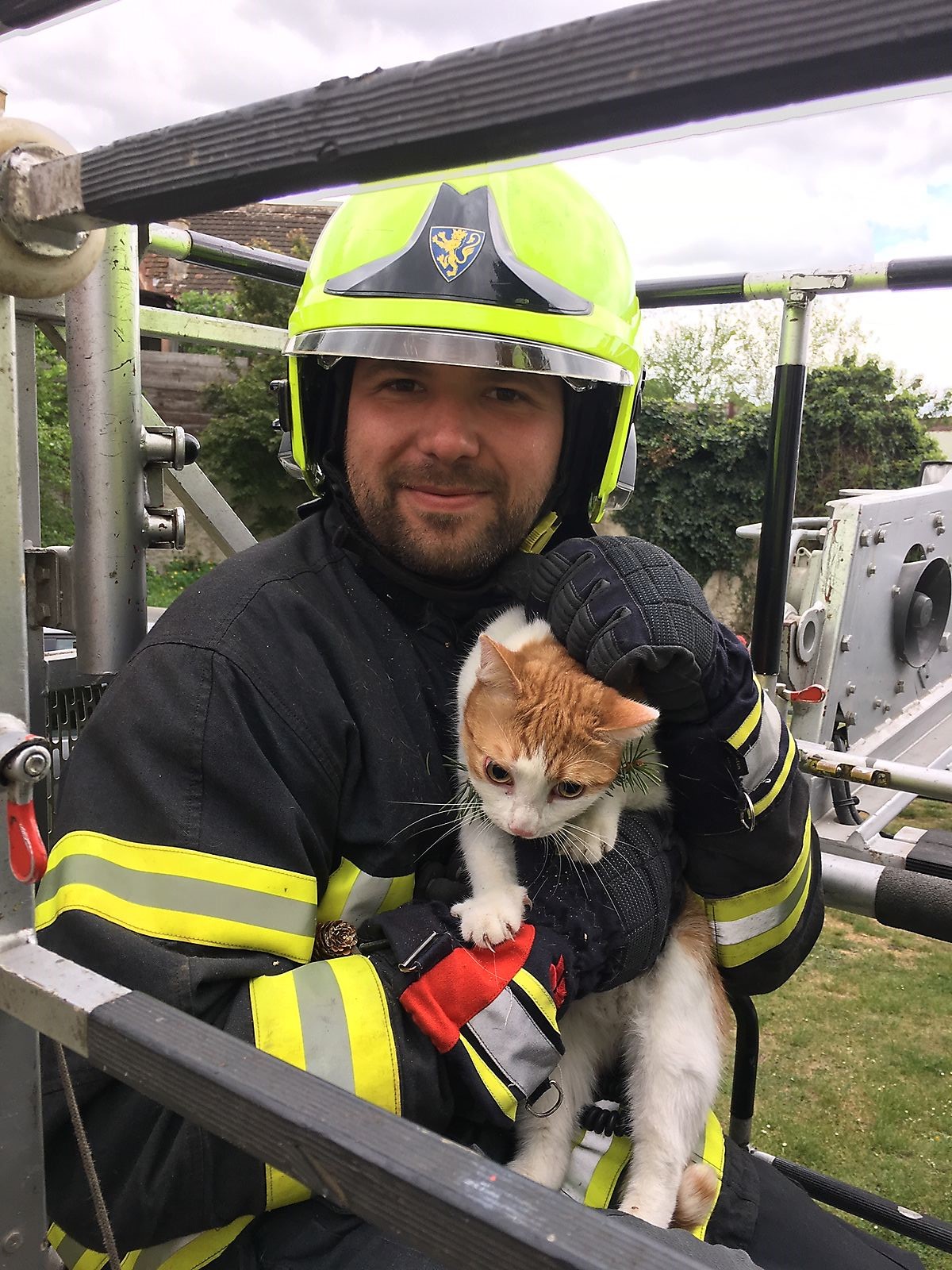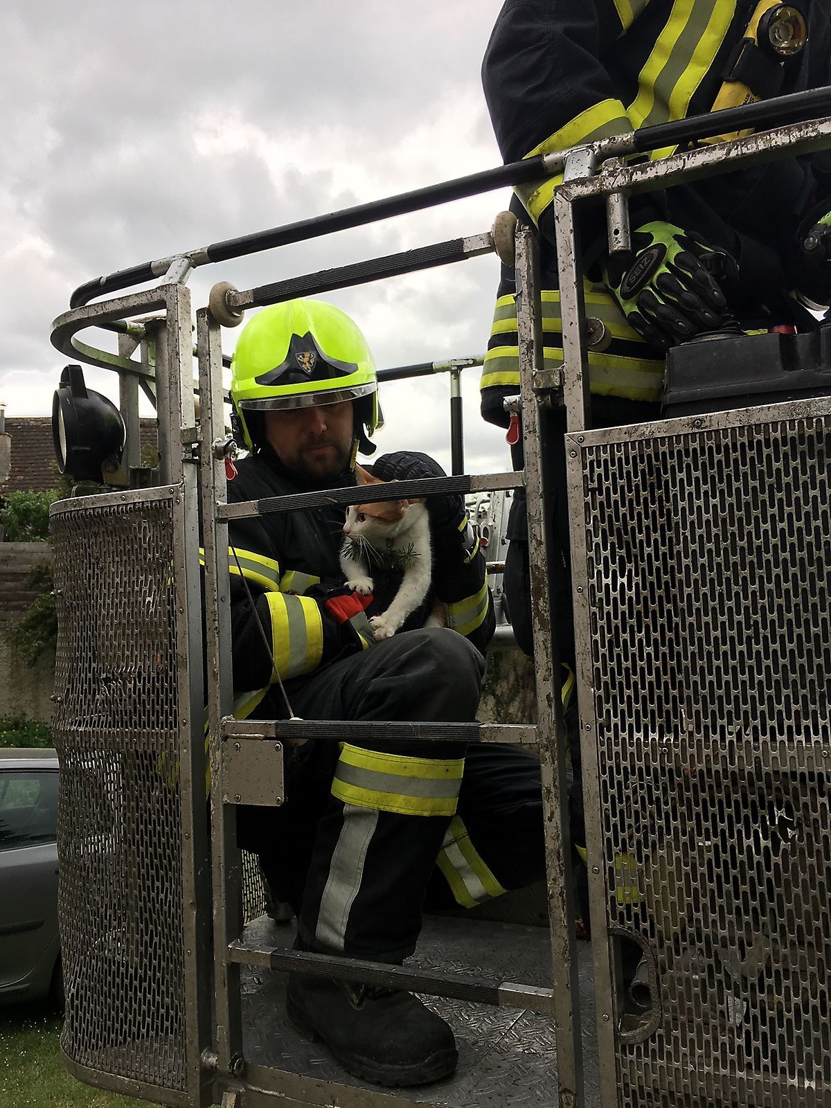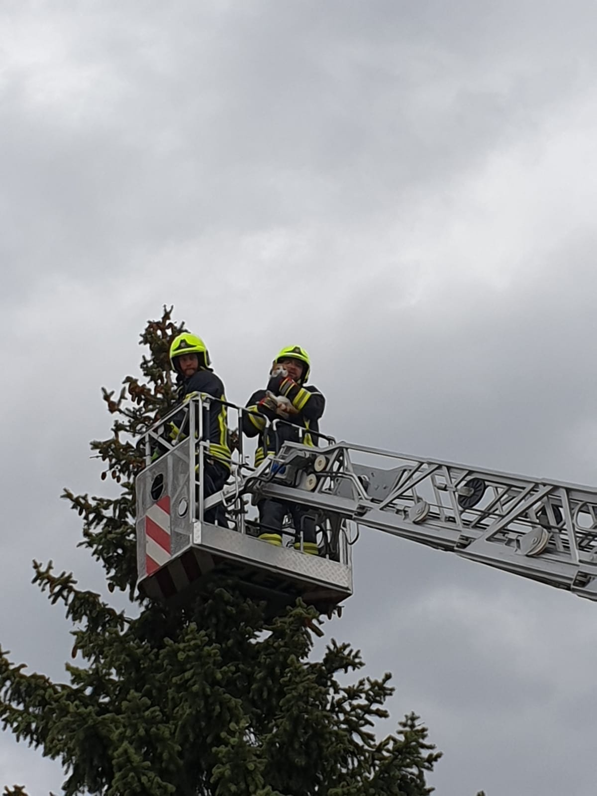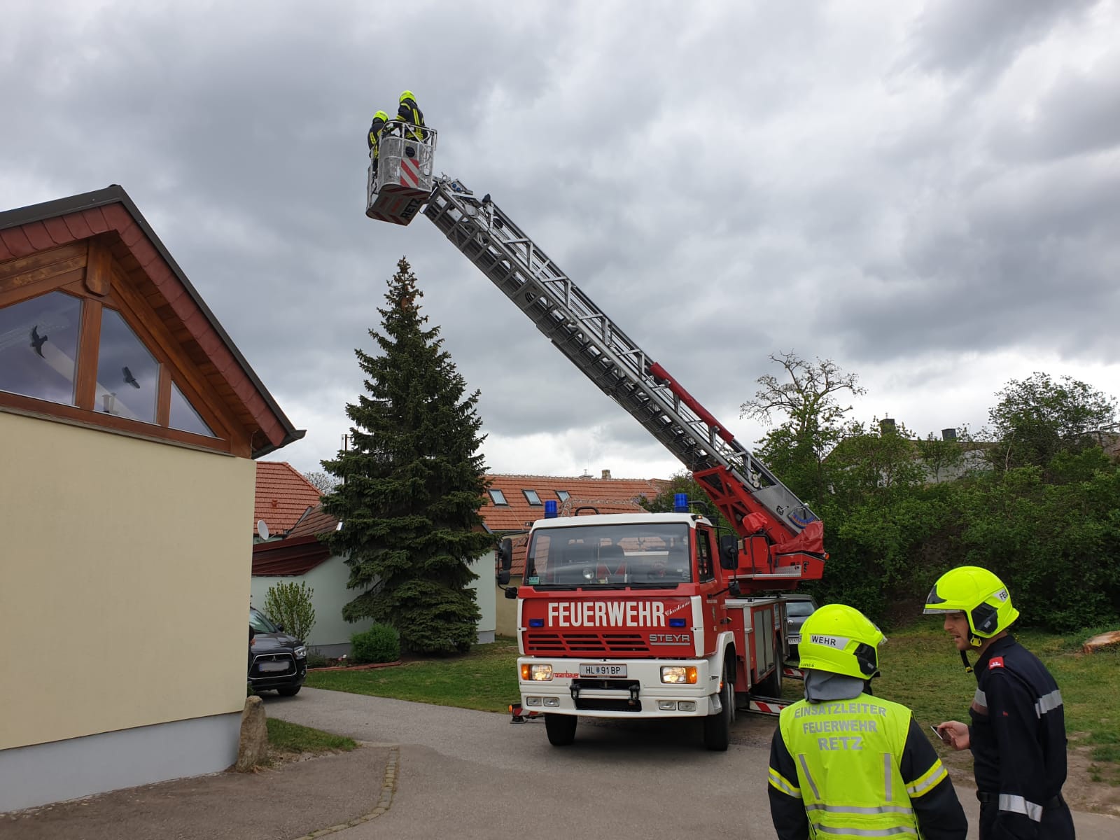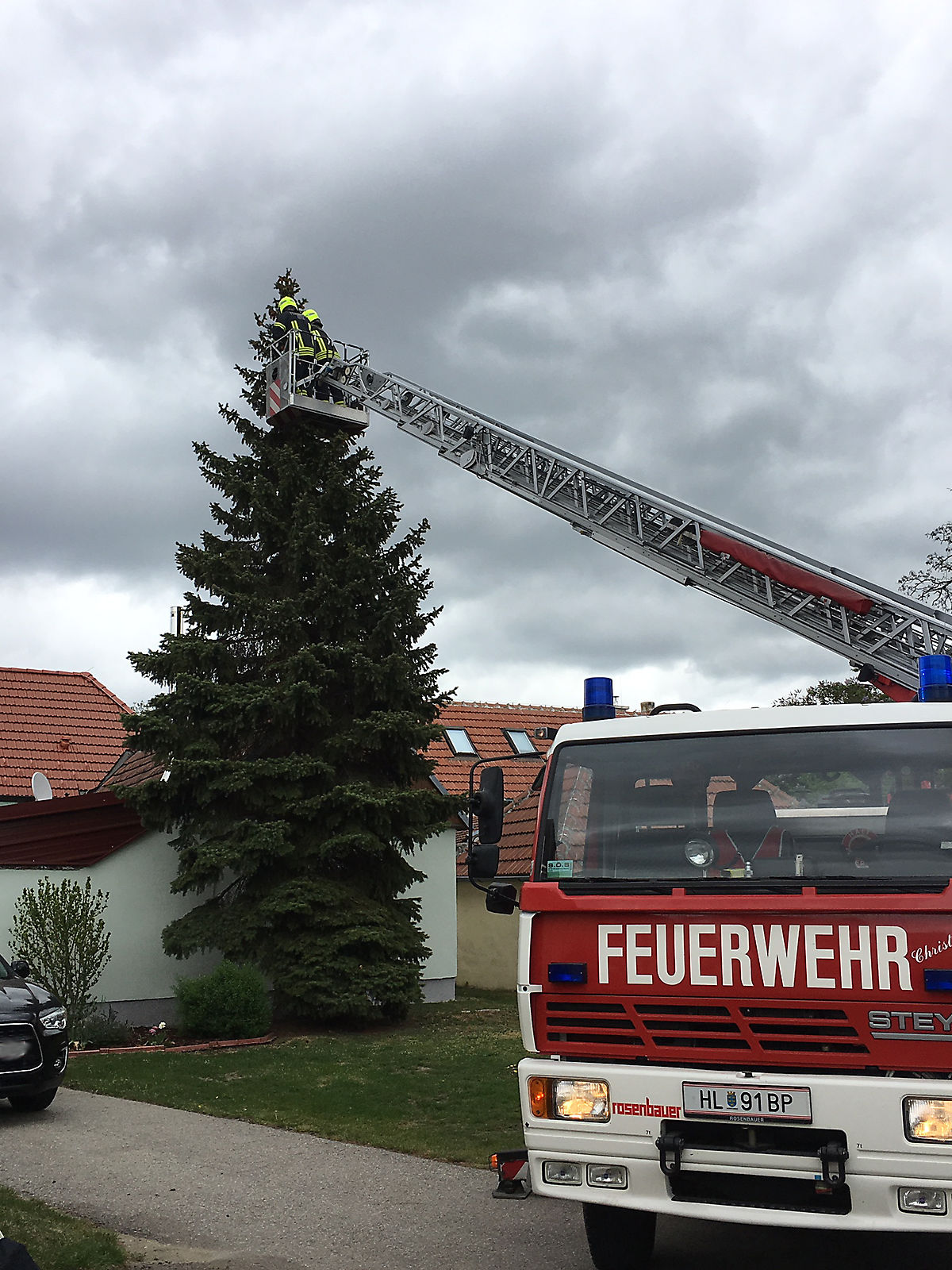 Am 27.04.2019 wurde die Freiwillige Feuerwehr Retz um 10:32 Uhr zu einer Tierrettung nach Obernalb alarmiert. Die Kameraden der Freiwilligen Feuerwehr Obernalb benötigten unsere Unterstützung, da eine Katze von einem hohen Baum nicht mehr herunter konnte. Aufgrund der Vorbereitungen zu unserem Feuerwehr-Heurigen, welcher noch heute und morgen stattfindet, waren schon einige Mitglieder im Feuerwehrhaus, wodurch eine rasche Ausrückung unserer Wehr erfolgen konnte. Am Einsatzort wurden wir vom dortigen Einsatzleiter über die Lage informiert und brachten die Drehleiter in Stellung. Bereits nach wenigen Minuten konnte das Tier mittels Drehleiter geborgen und unverletzt an die Besitzer übergeben werden.