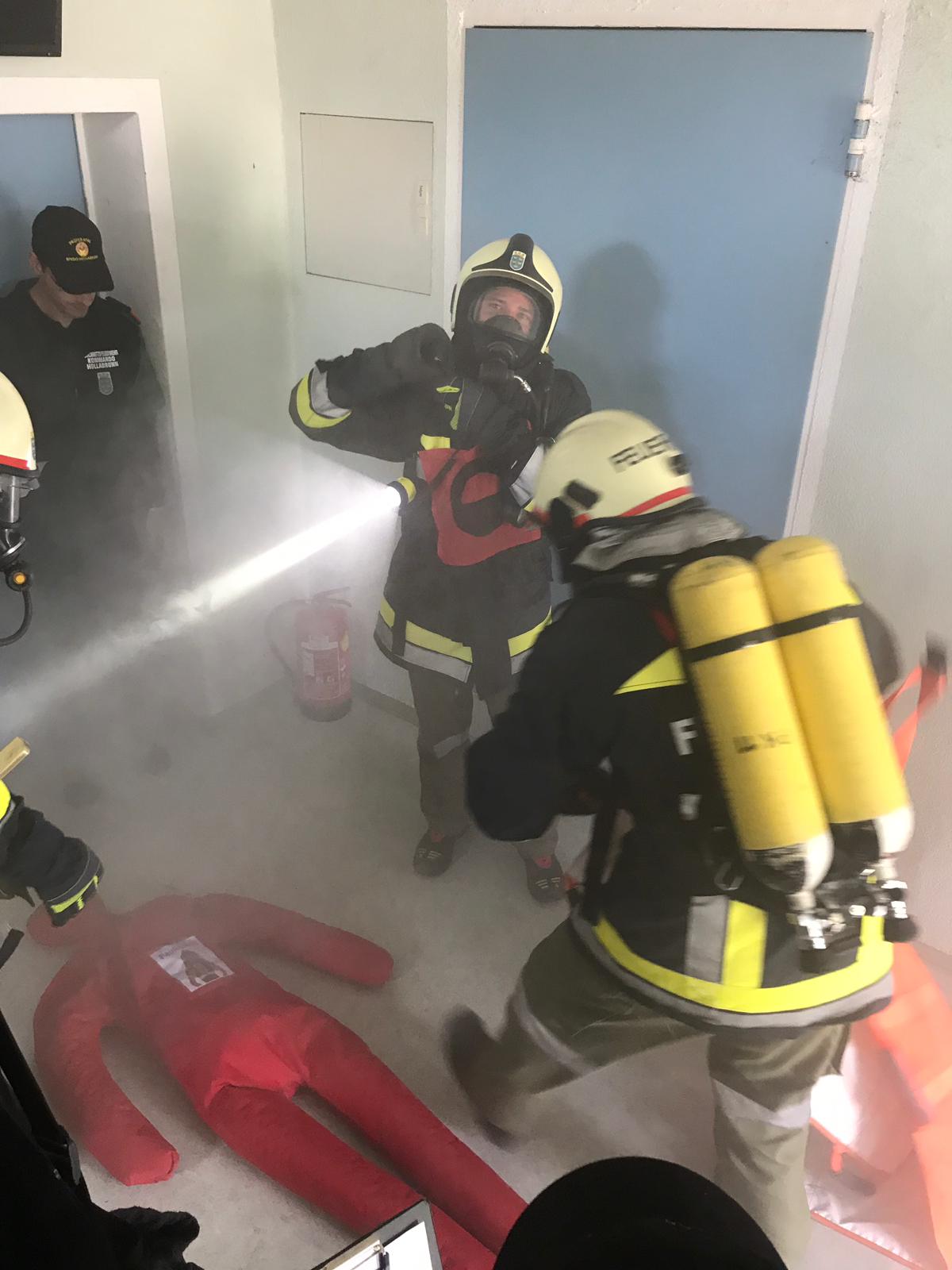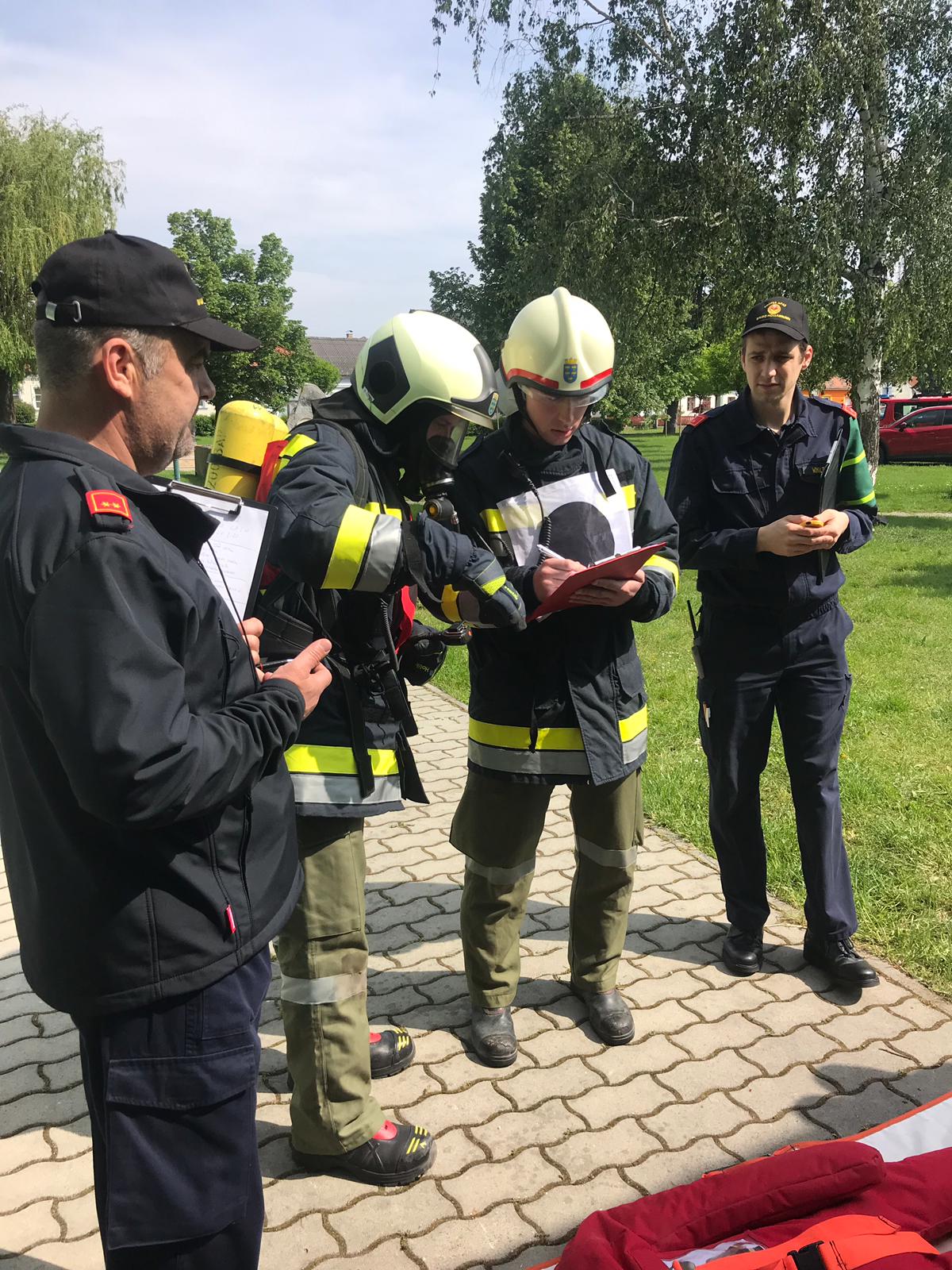 Diese Prüfung umfasst vier Stationen (richtiges Ausrüsten, Personensuche in einem verrauchten Raum, Hindernisbahn und das richtige Versorgen der Geräte). In den Wochen davor wurde insgesamt bis zu achtmal geübt um den Ablauf und das in den Modulen erlernte richtig umsetzen zu können.