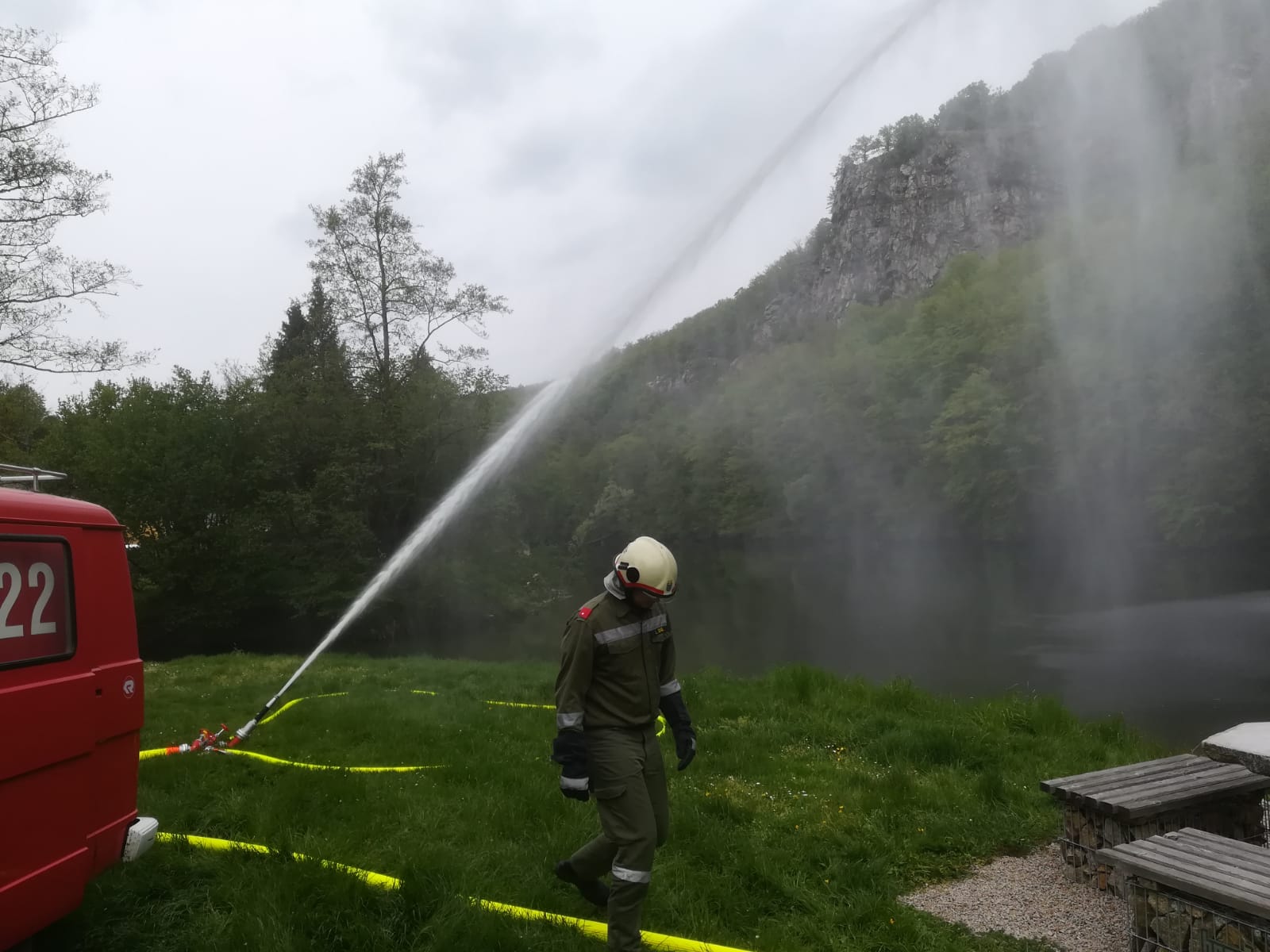 Abschnittsfeuerwehrkommandant Christian Lehninger bedankte sich beim Nationalparkzentrum für die Räumlichkeiten, beim Ausbildungsteam und bei den Teilnehmerinnen und Teilnehmern für Ihre aktive Mitarbeit.