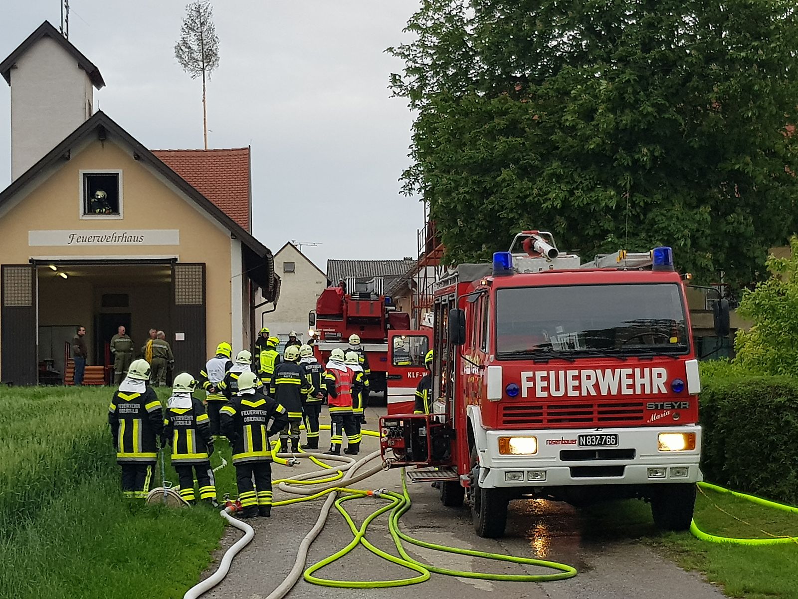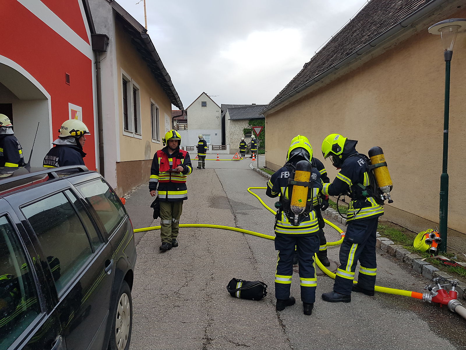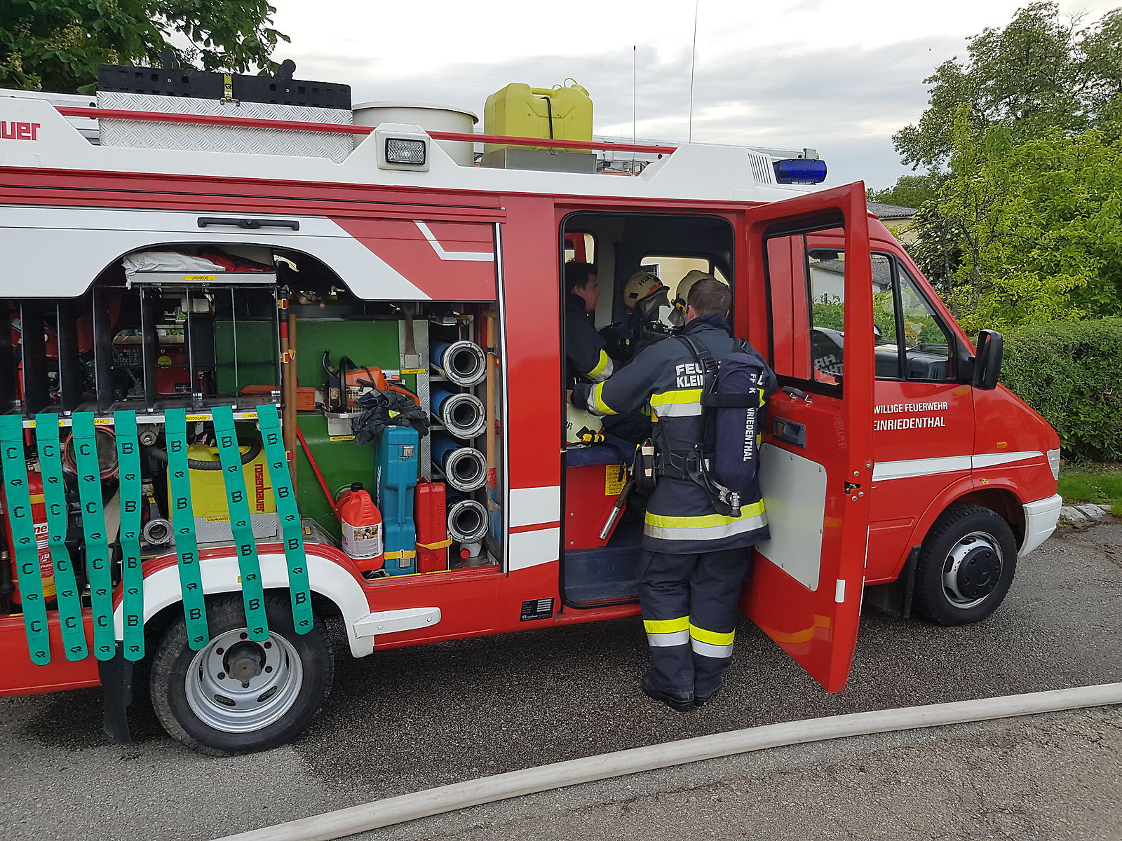 Die Feuerwehr Kleinriedenthal rüstete sich mit Atemschutz aus, um die vermissten Personen aus dem verrauchten Raum zu retten. Es waren insgesamt 6 Atemschutztrupps im Einsatz. Gleichzeitig wurde ein Löschangriff vorgenommen.