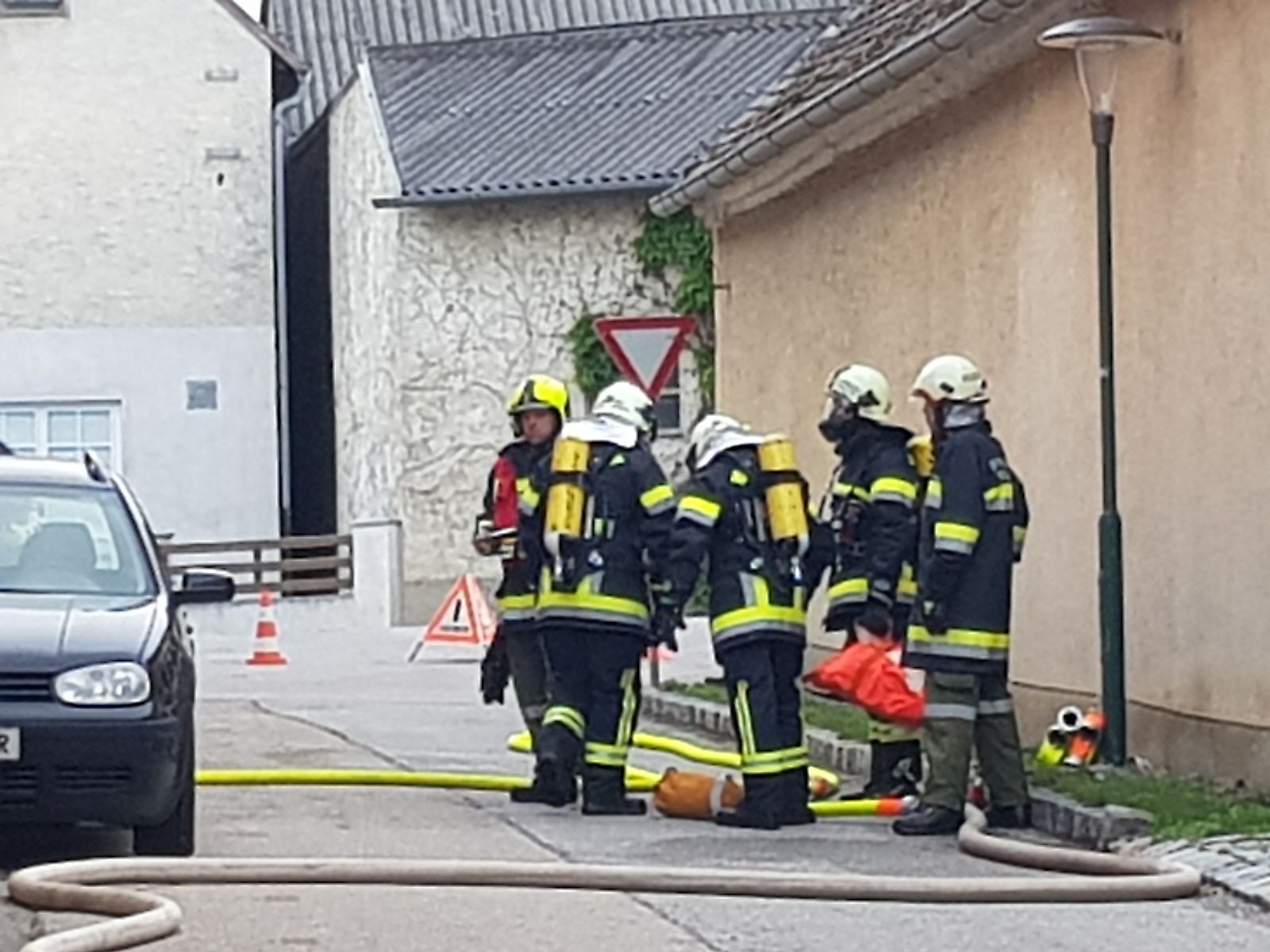 Die Feuerwehr Retz rettete mit Hilfe der Drehleiter eine verletzte Person aus dem Obergeschoß.
