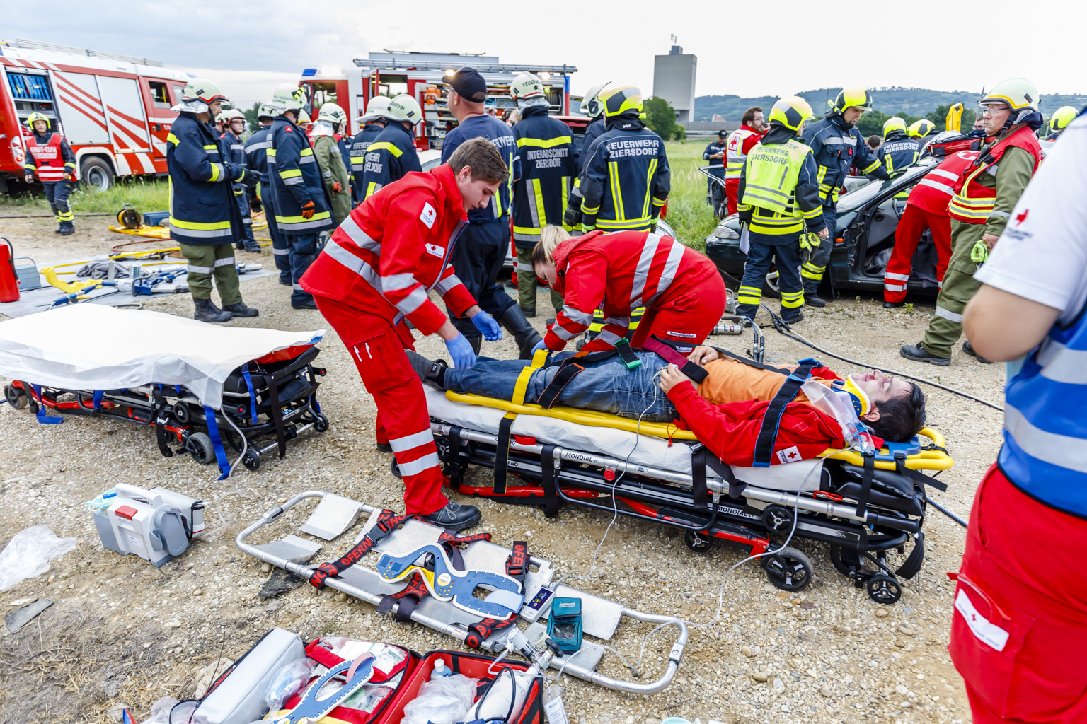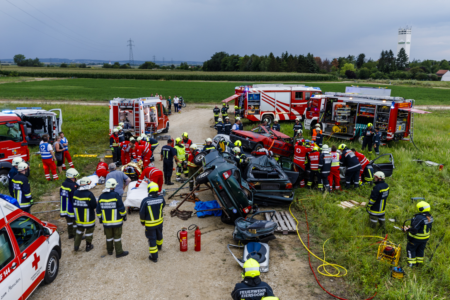 So nahmen die Feuerwehren Großmeiseldorf, Großwetzdorf, Ravelsbach und Ziersdorf sowie das Rote Kreuz Ziersdorf mit insgesamt 75 Einsatzkräften und 13 Fahrzeugen an der Übung teil.