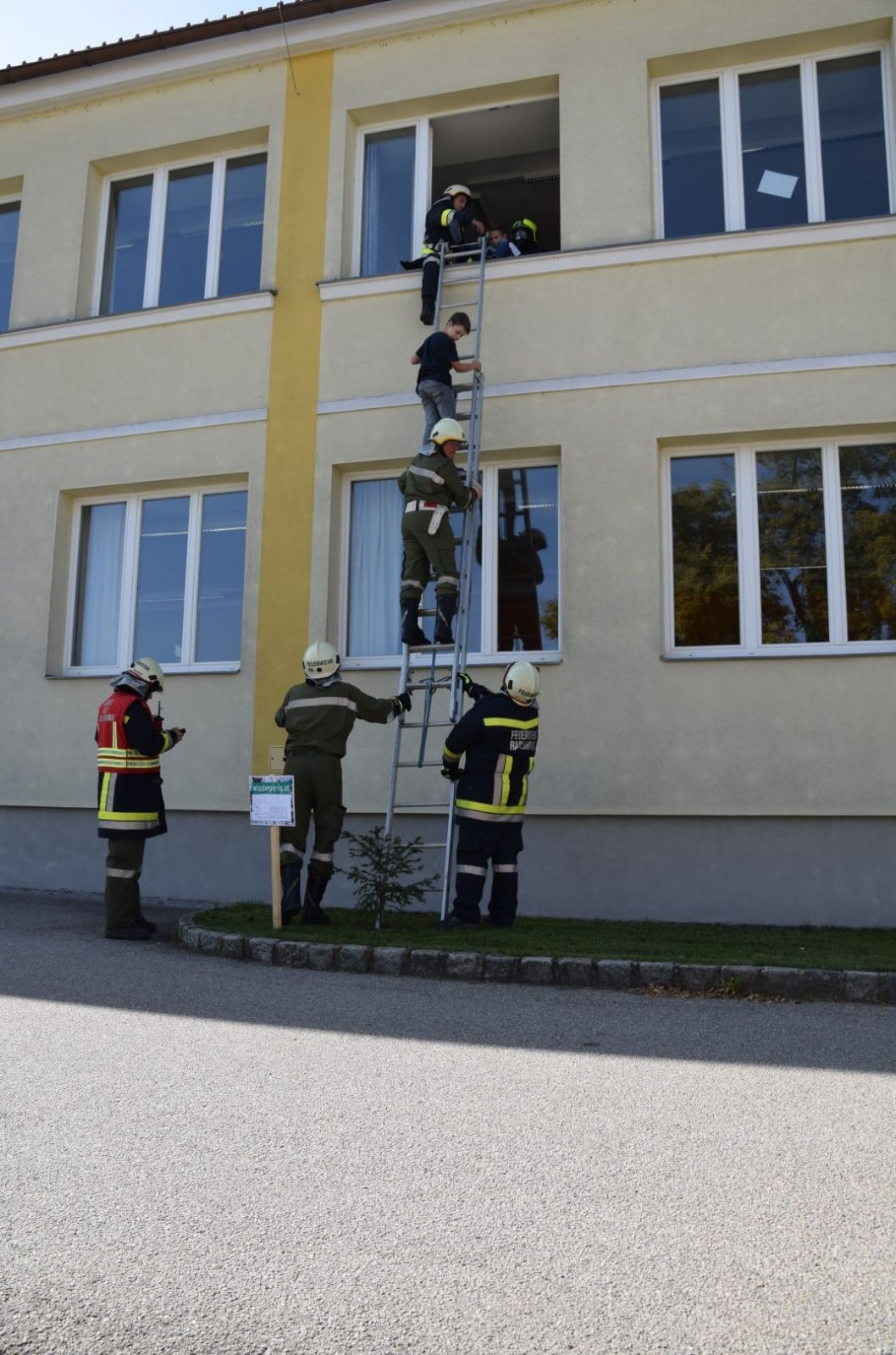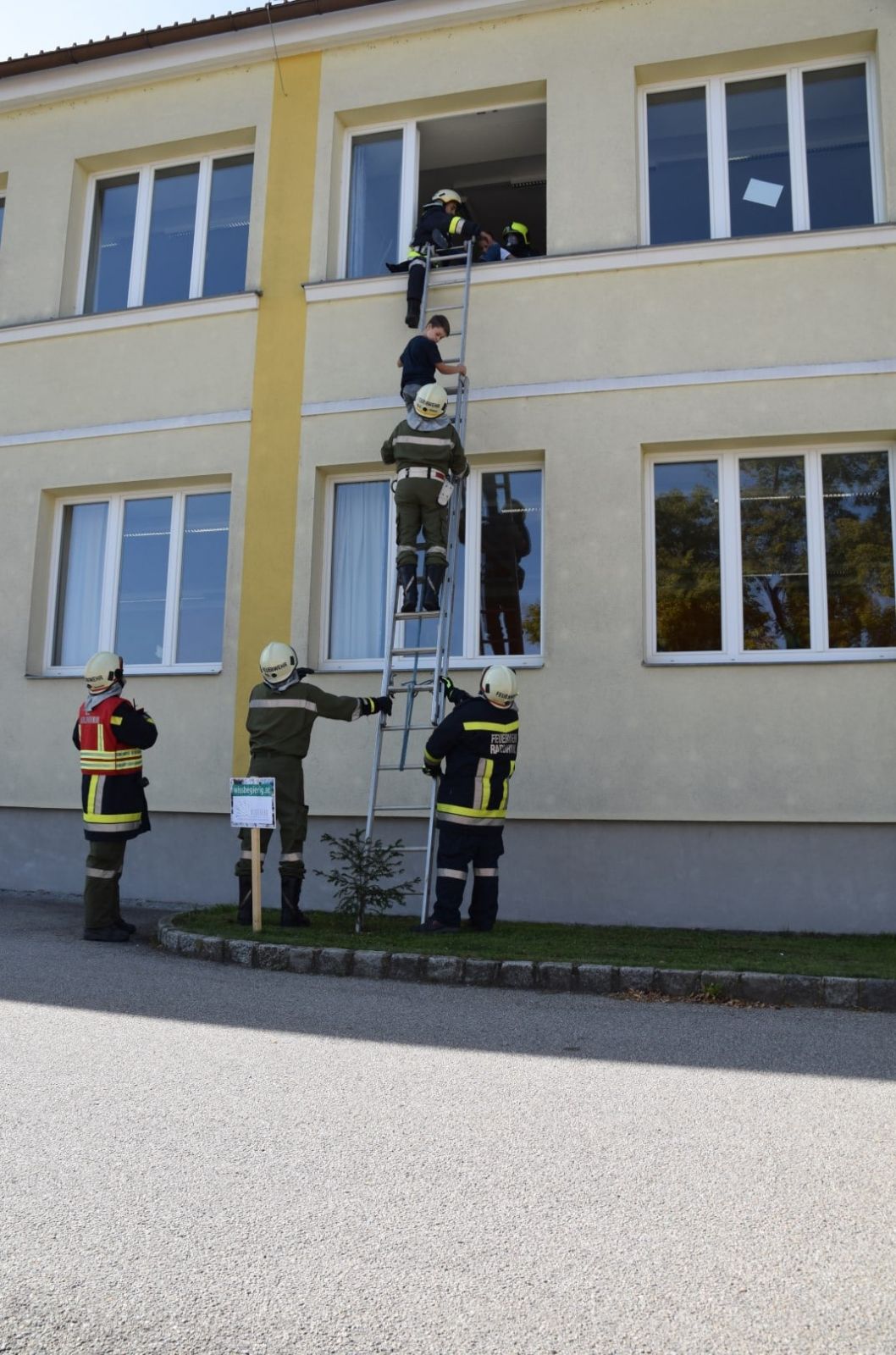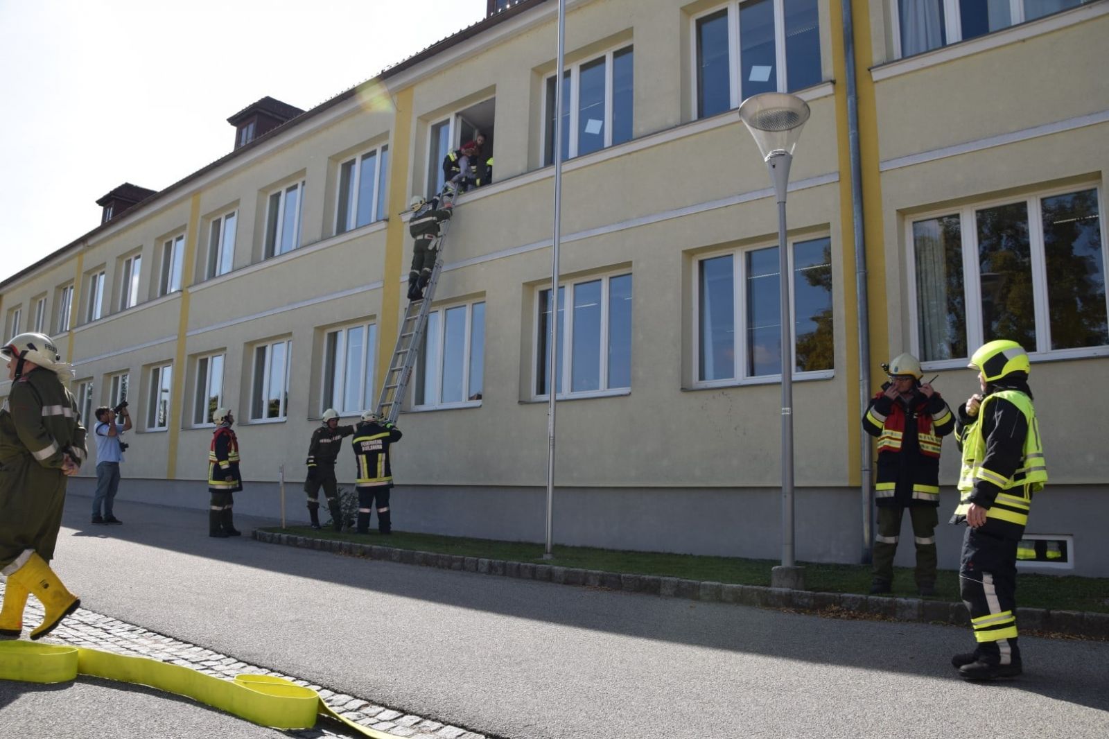 Der Schwerpunkt wurde von Übungsleiter BI Andreas Kisser auf die Evakuierung gelegt. Die Schüler und Lehrer wurden durch die Feuerwehr über Fluchtstiegen, mittels Schubleiter oder unter Zuhilfenahme einer Drehleiter aus dem Schulgebäude gebracht.