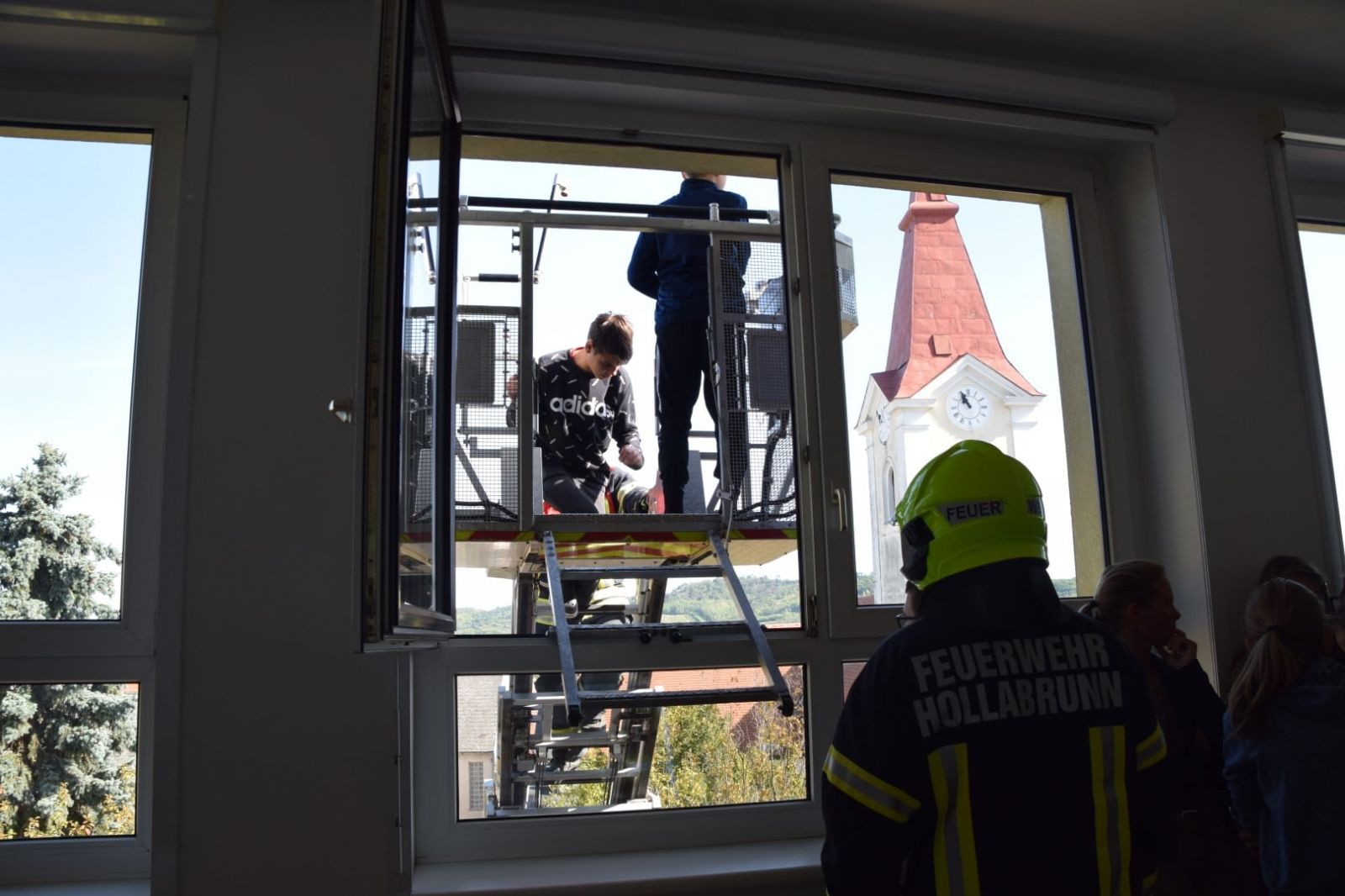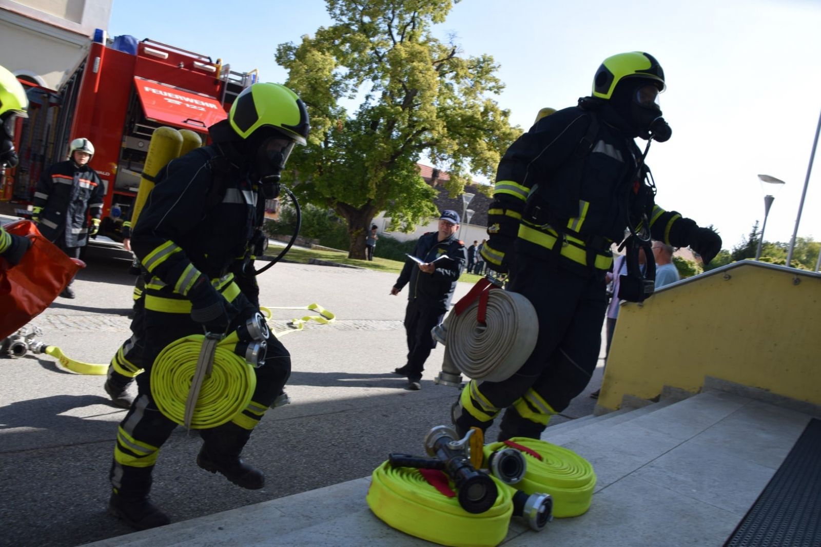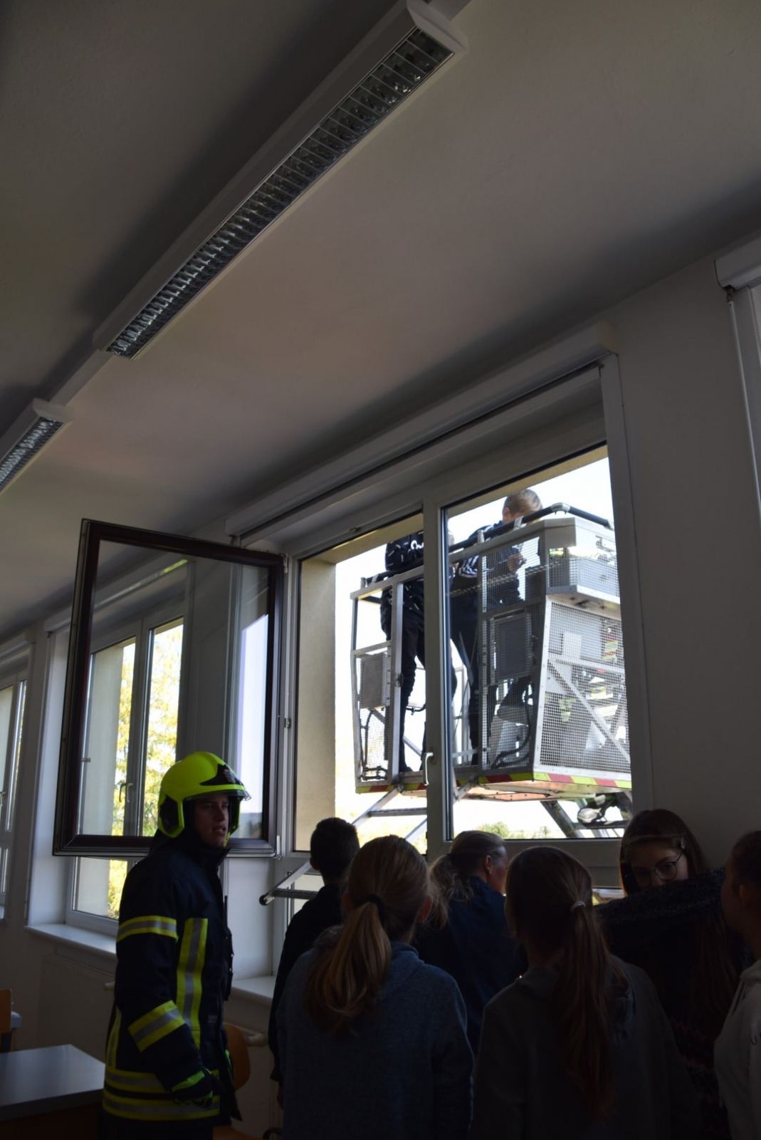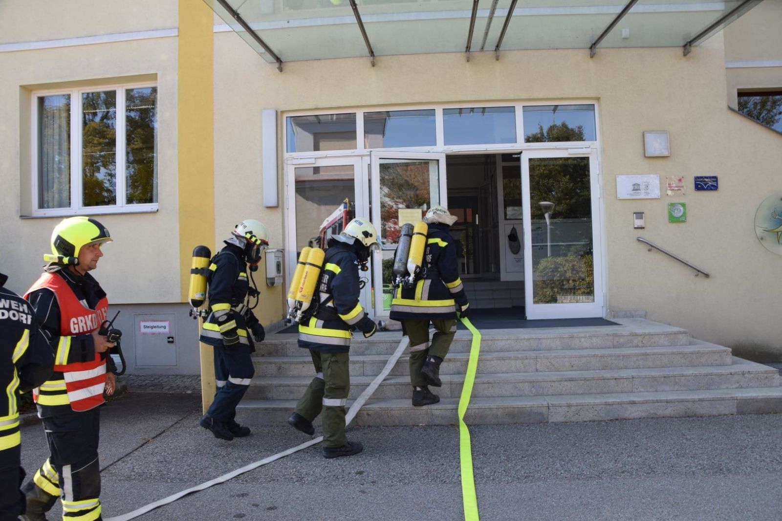 Der Schwerpunkt wurde von Übungsleiter BI Andreas Kisser auf die Evakuierung gelegt. Die Schüler und Lehrer wurden durch die Feuerwehr über Fluchtstiegen, mittels Schubleiter oder unter Zuhilfenahme einer Drehleiter aus dem Schulgebäude gebracht.