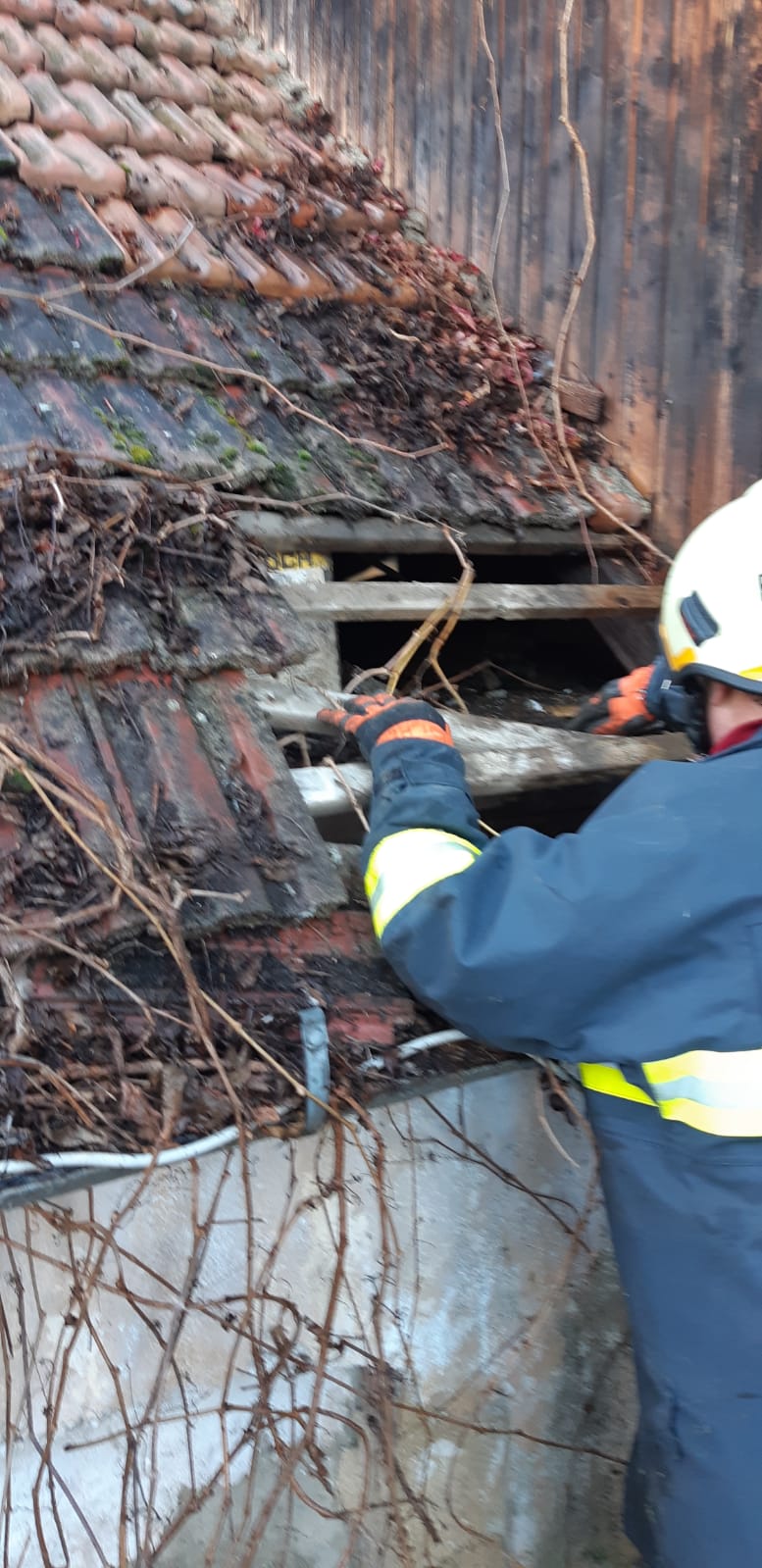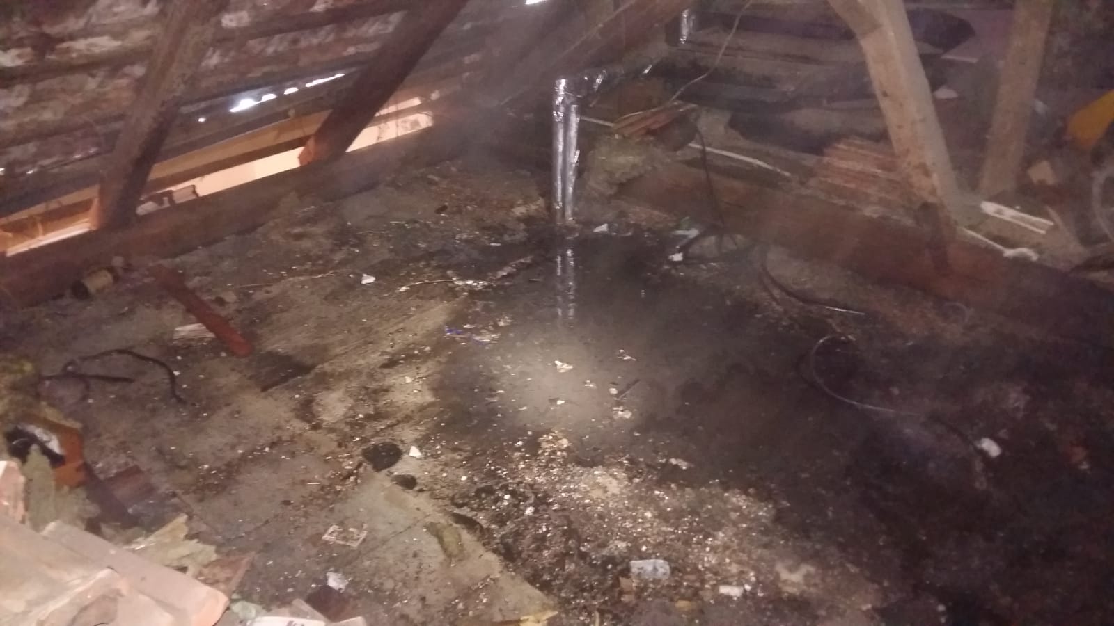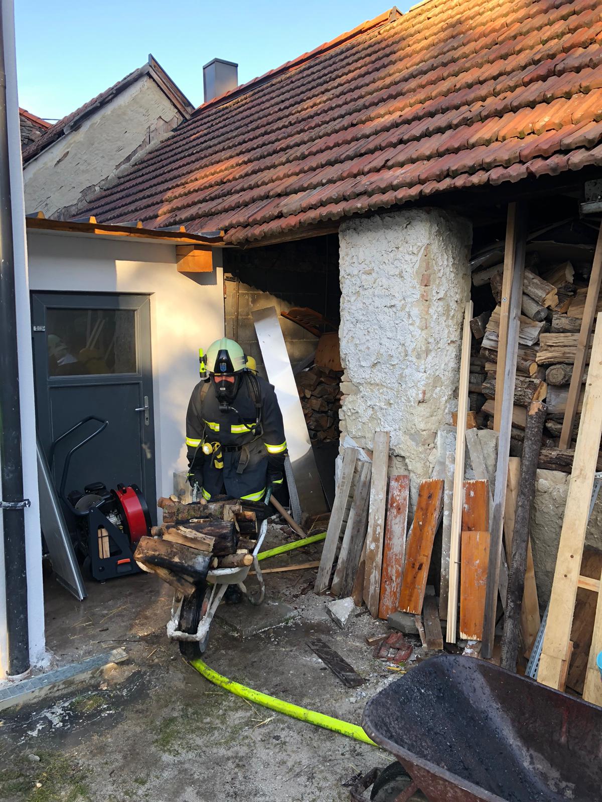 Weiters wurden Holzdecken freigemacht und der Dachboden bereinigt um Schwelbrände zu beseitigen.