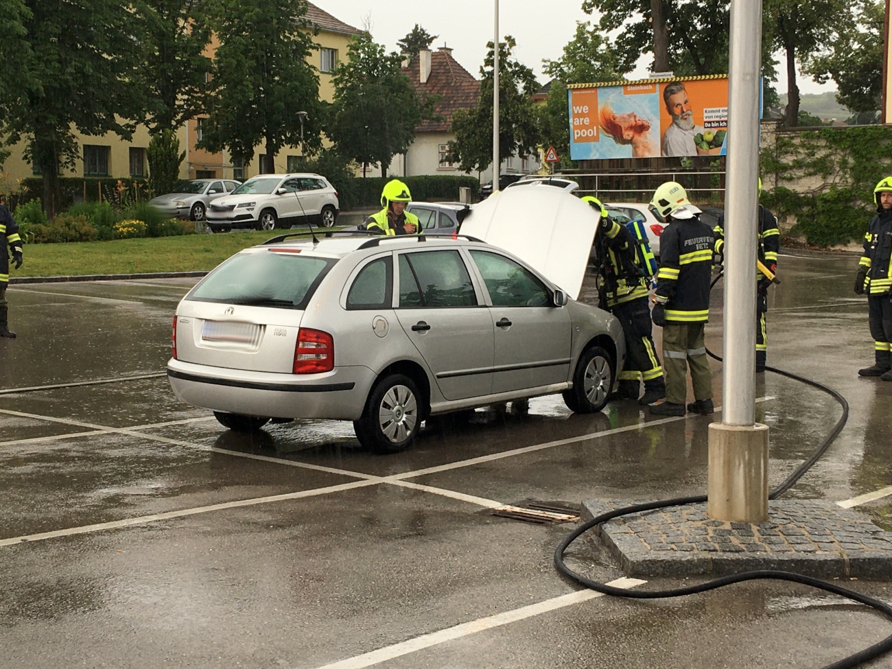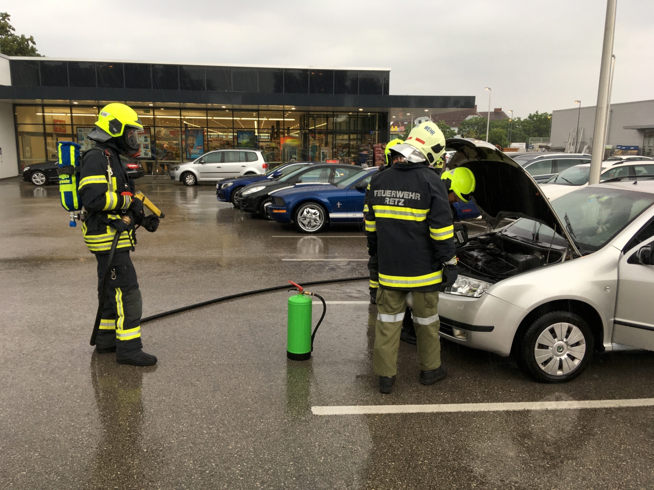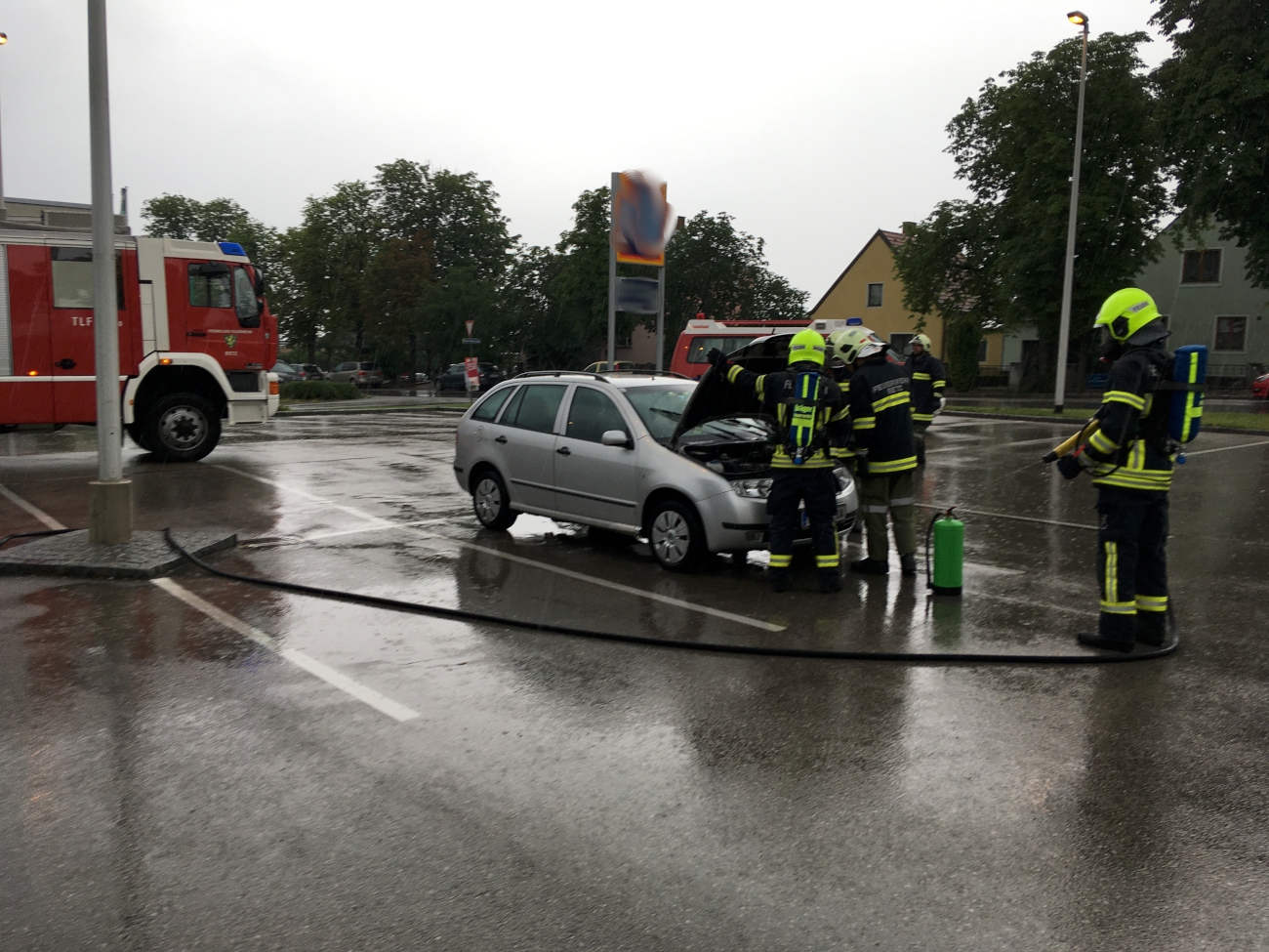 Eine Fahrzeuglenkerin stand mit ihrem PKW auf einem Parkplatz eines Lebensmittelmarktes. Beim Starten des Motors nahm sie eine leichte Rauchentwicklung im Fahrgastraum wahr und alarmierte die Einsatzkräfte über den Notruf 122.