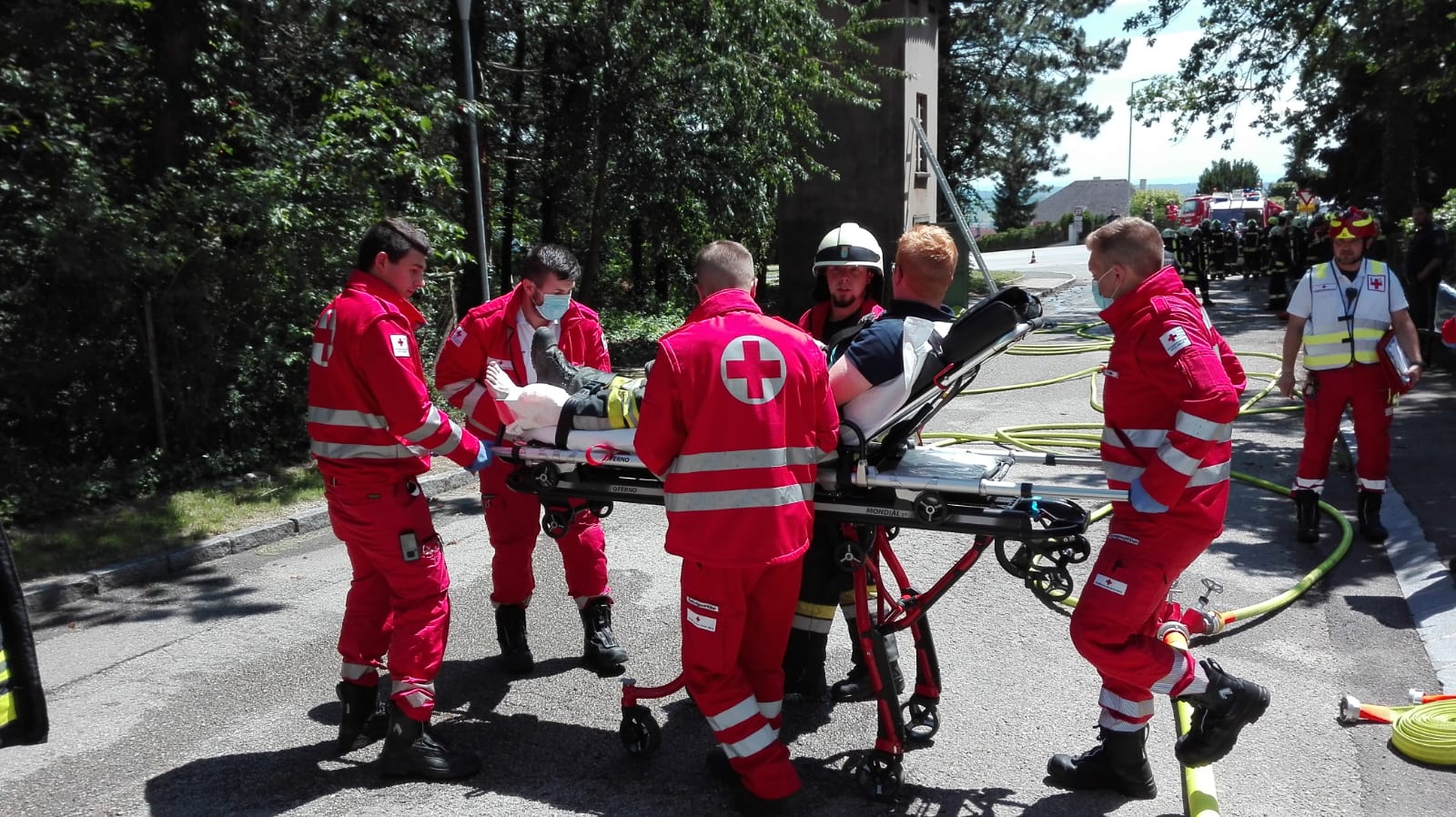 Bei den Löscharbeiten verletzte sich ein Atemschutzträger so schwer, dass er anschließend von der Rettung ins Unfallkrankenhaus Horn abtransportiert werden musste.