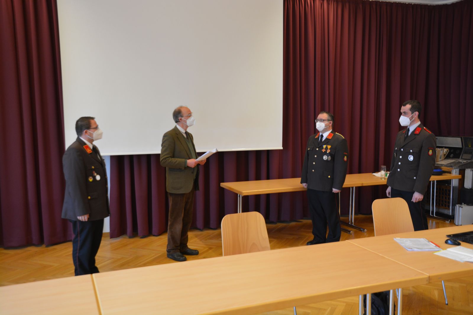 Nach den Berichten von Kommandant Werner Trauner und Stellvertreter Leo Elsner legten diese Ihre Funktion zurück und Bürgermeister Mag. Martin Gudenus übernahm den Wahlvorsitz.