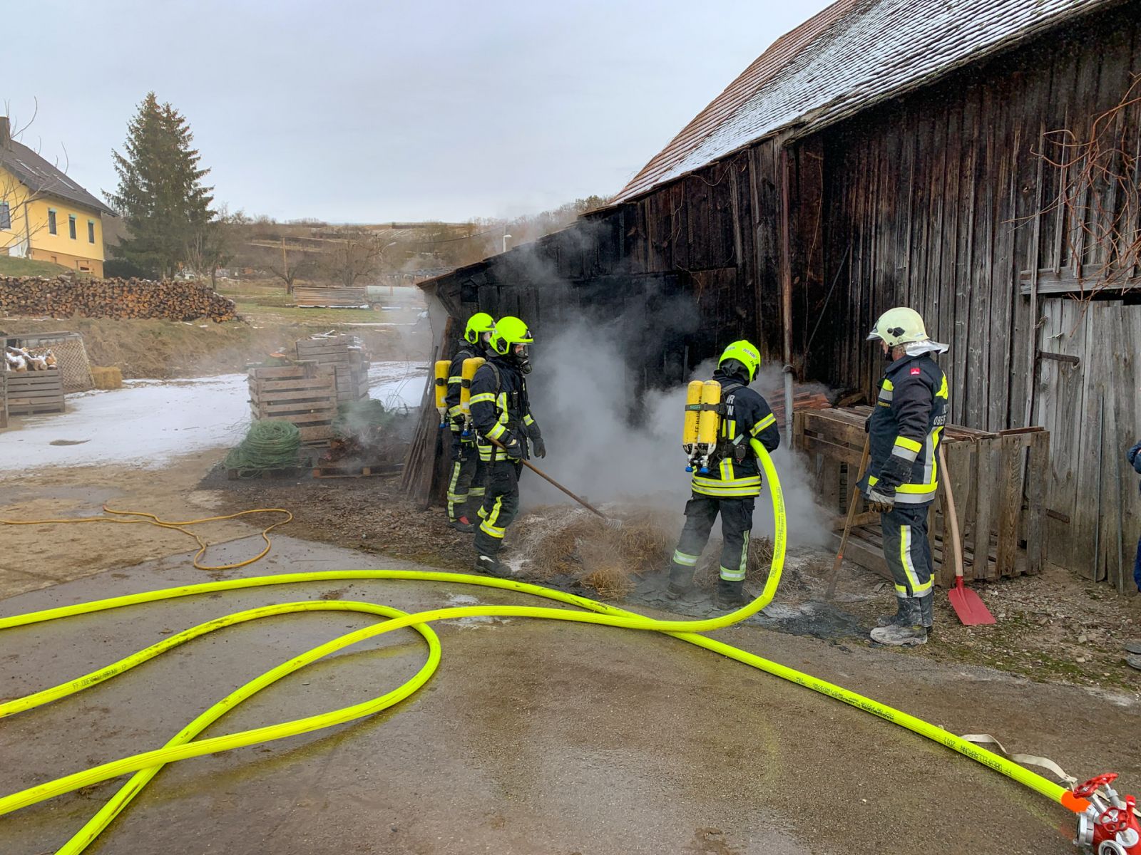 Nur durch das beherzte Eingreifen der Familie und des raschen Einsatzes der Feuerwehr Oberfellabrunn konnte ein Übergreifen auf die gesamte Scheune verhindert werden.