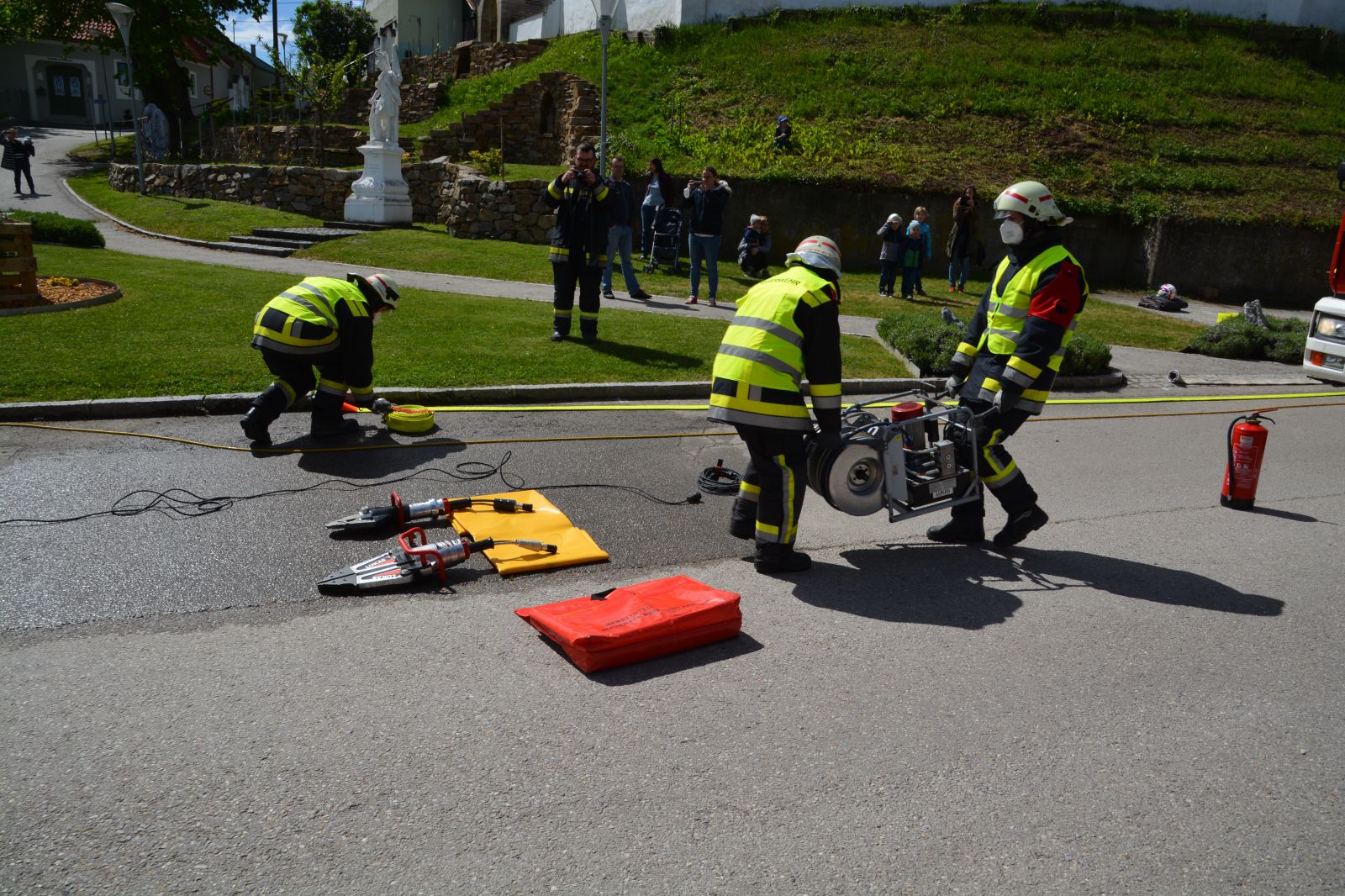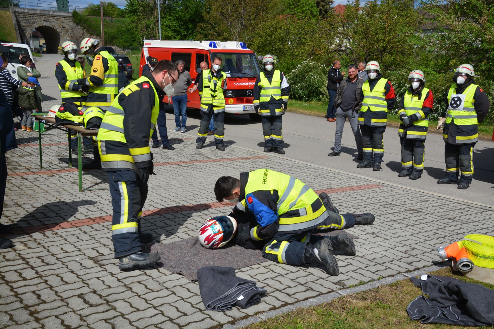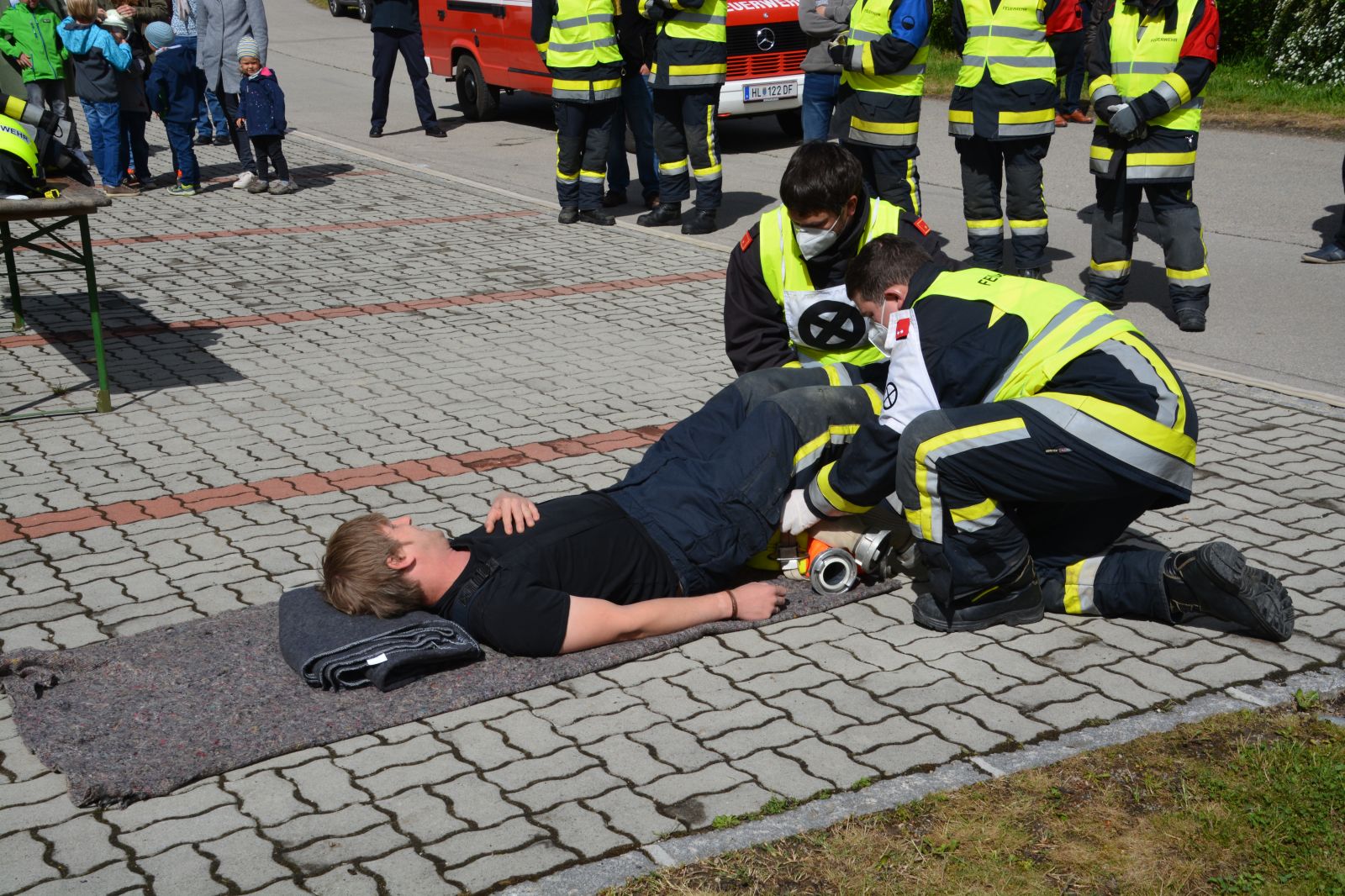 Gefordert wurde: 1.) Erste Hilfe 2.) Gerätekunde: Geräte des RLF & KDO mussten blind gezeigt und erklärt werden 3.) Das Abarbeiten eines Verkehrsunfalles mit Menschenrettung. 4.) Der Gruppenkommandant hat zusätzlich 20 Fragen aus dem Fragenkatalog (90 Fragen) zu beantworten.