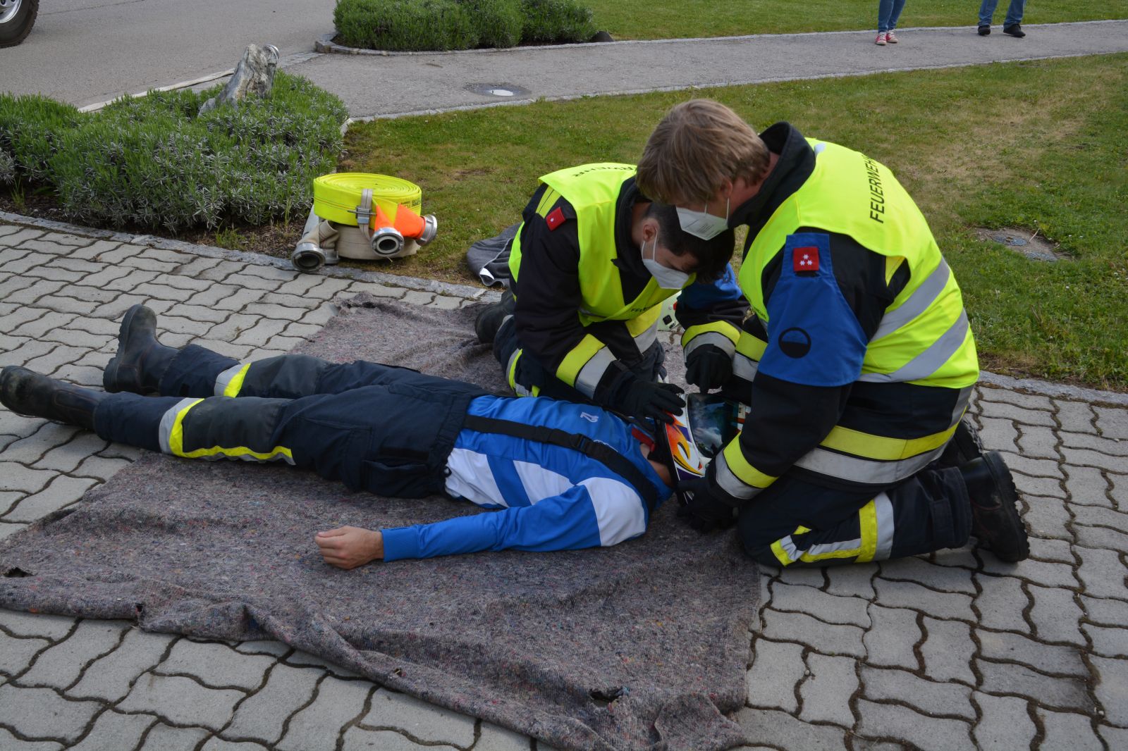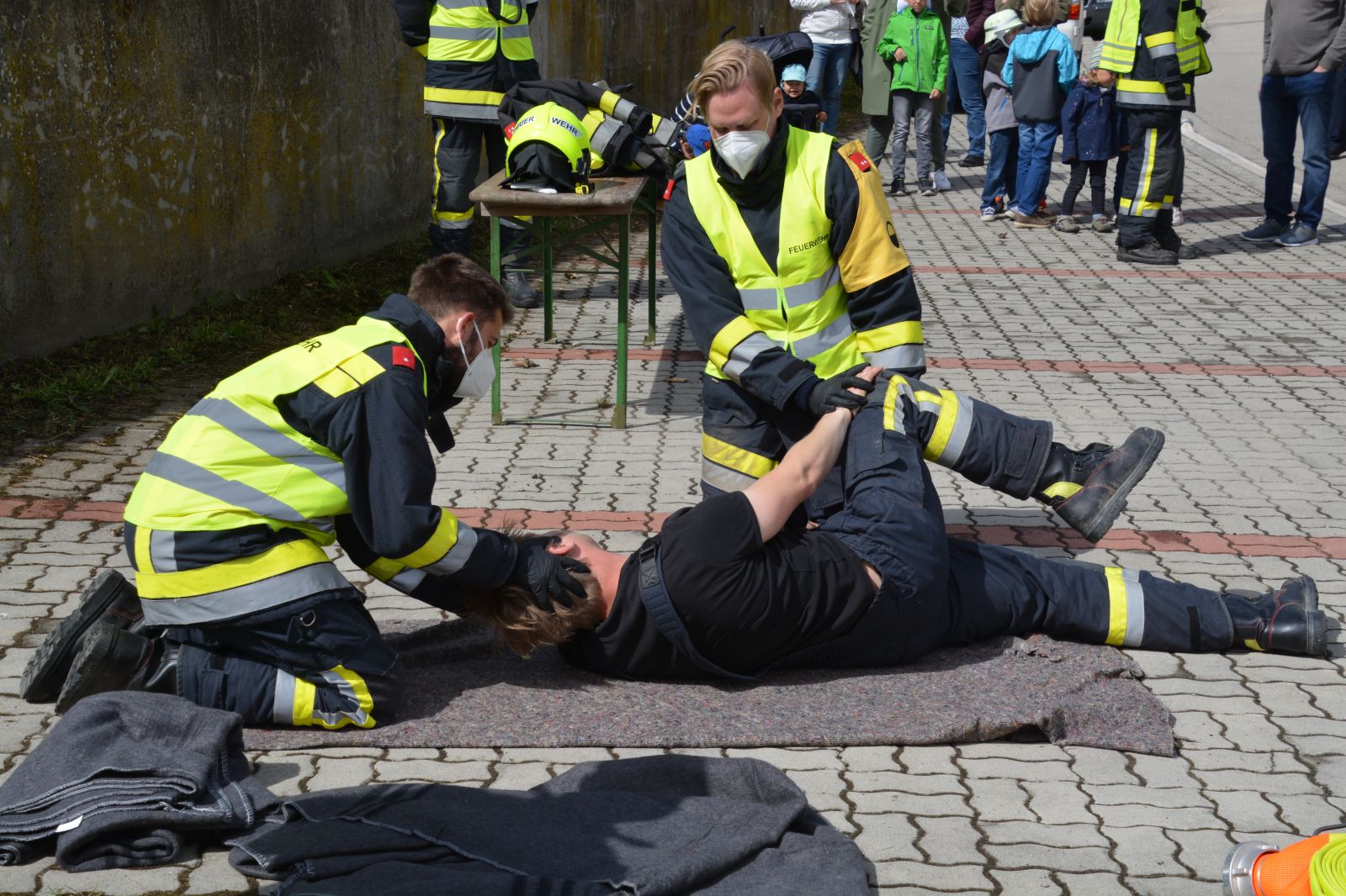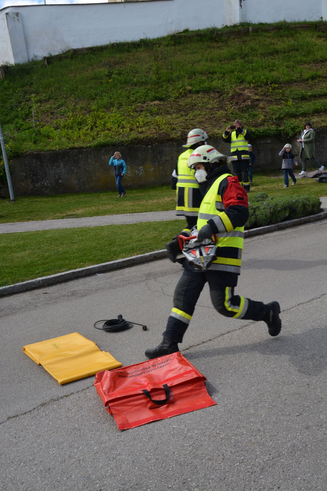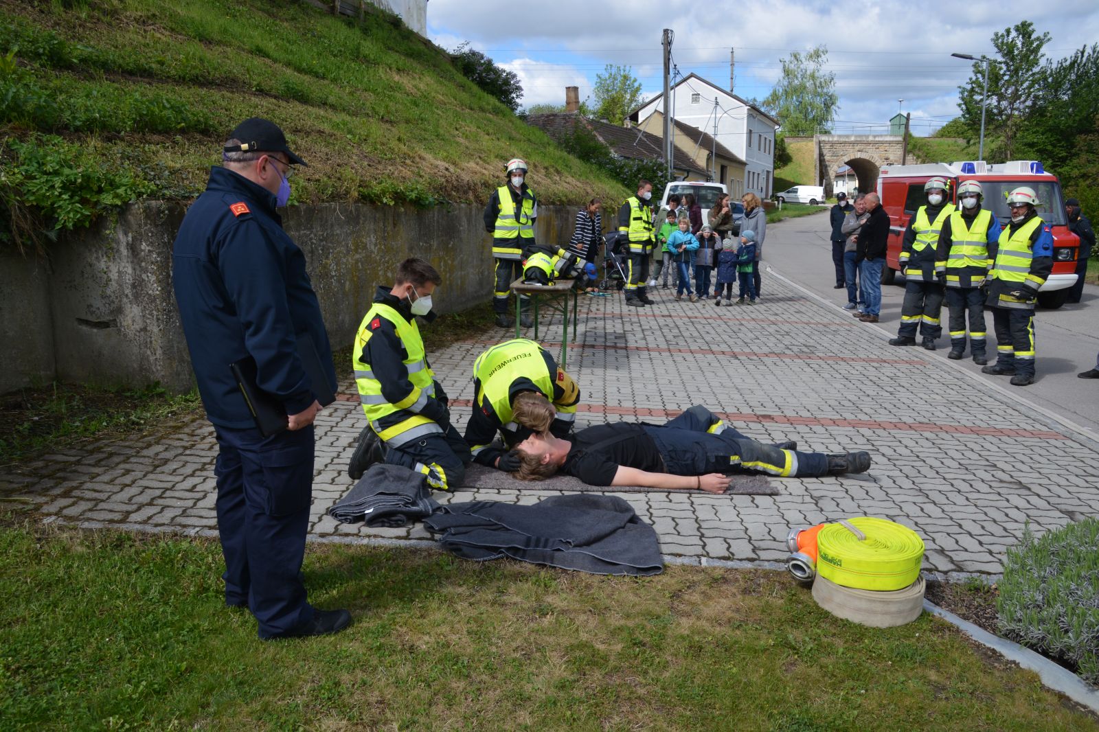 Gefordert wurde: 1.) Erste Hilfe 2.) Gerätekunde: Geräte des RLF & KDO mussten blind gezeigt und erklärt werden 3.) Das Abarbeiten eines Verkehrsunfalles mit Menschenrettung. 4.) Der Gruppenkommandant hat zusätzlich 20 Fragen aus dem Fragenkatalog (90 Fragen) zu beantworten.