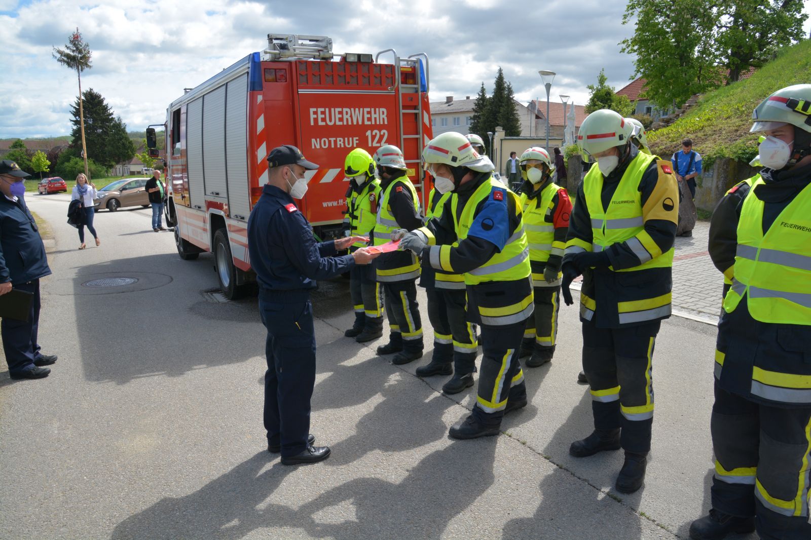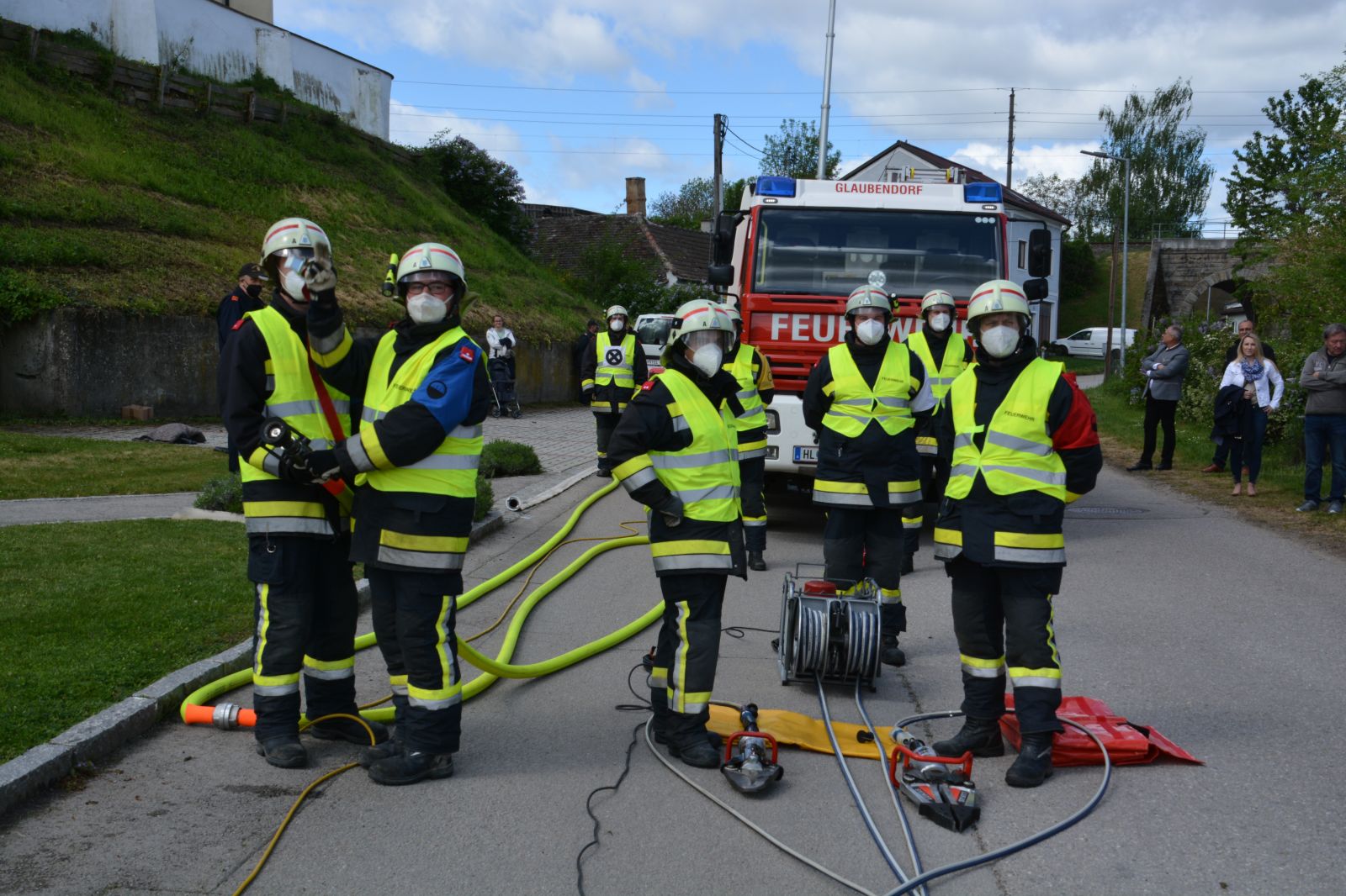 Alle 12 Teilnehmer haben die Prüfung mit Erfolg bestanden. Bezirkskommandant-Stv. Reinhard Scheichenberger freute es sehr, dass die Kameraden wieder angefangen hatten, eine Ausbildungsprüfung zu machen. Es wurde immer nach einem Corona-Test 2x pro Woche trainiert. Bürgermeister Ing. Peter Steinbach freute sich über die bestandene Prüfung und dass seine Feuerwehr so aktiv ist, da sie in den letzten Jahren schon einige Ausbildungsprüfungen absolviert hatten. Im Namen des Abschnittes Ravelsbach gratulierte Abschnittsbrandinspektor Josef Baummeister.