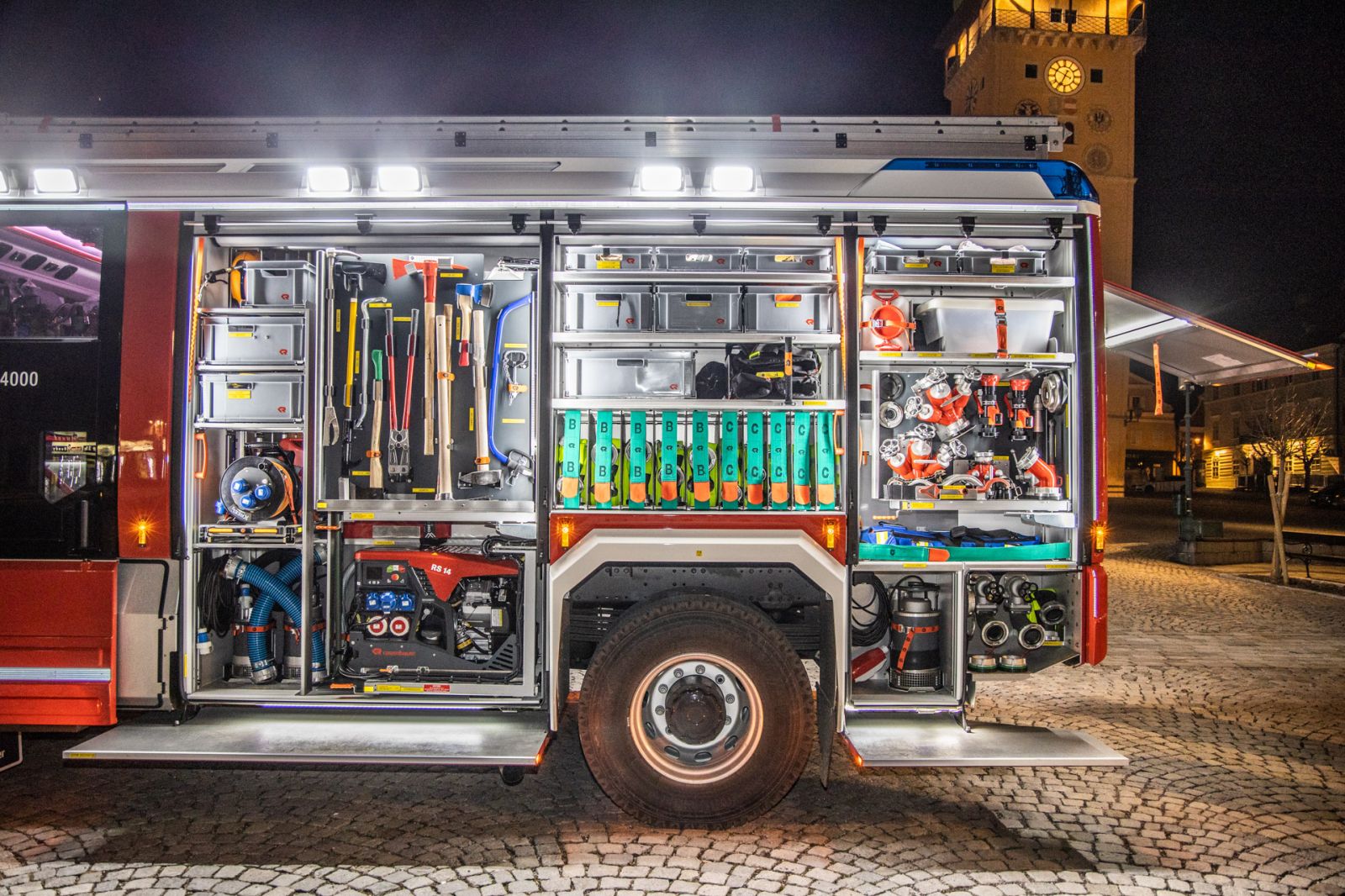 Eine Planungsgruppe hat sich über ein Jahr mit den Details des neuen Fahrzeugs beschäftigt. „Neben der Lagerung von vielen modernen Ausrüstungsgegenständen war die bewusste Einplanung von freien Plätzen für zukünftige Anforderungen ein wichtiger Aspekt“, so Feuerwehrkommandant Markus Leidenfrost.