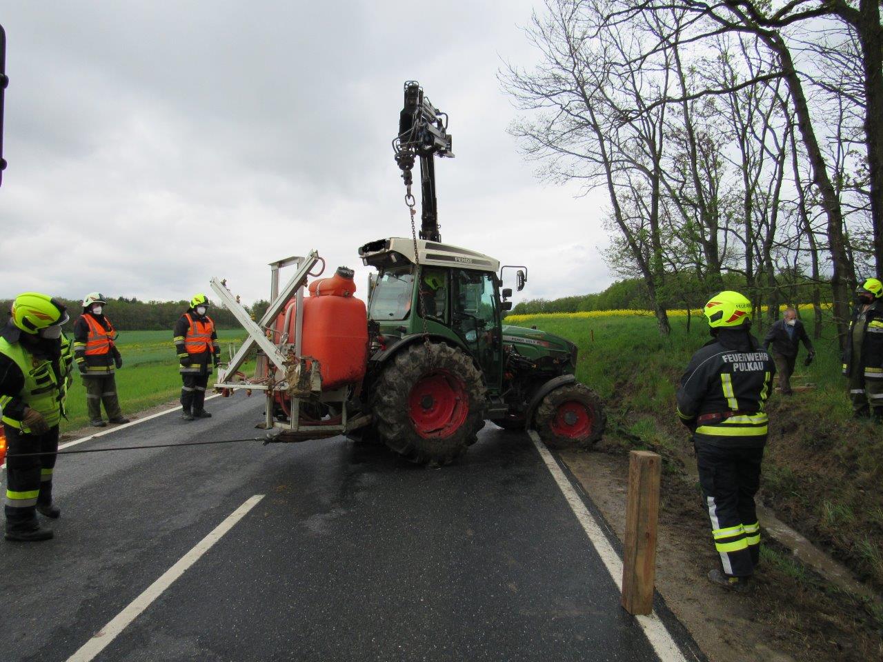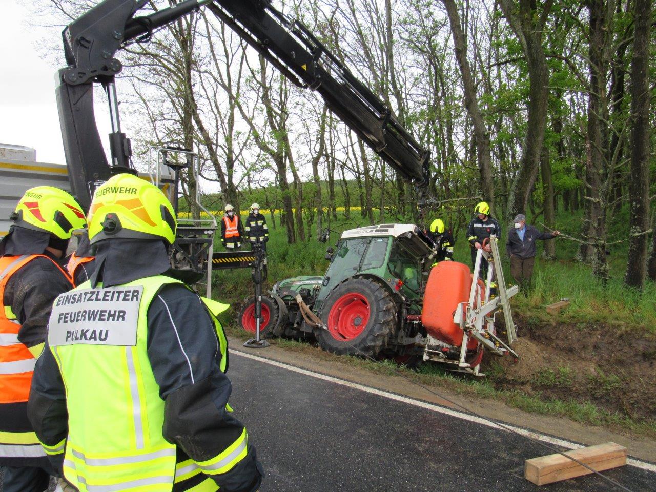 Am 14.05.2021 wurde um 10:52 Uhr die FF Pulkau zu einer Traktorbergung (T1) im eigenen Einsatzbereich alarmiert.