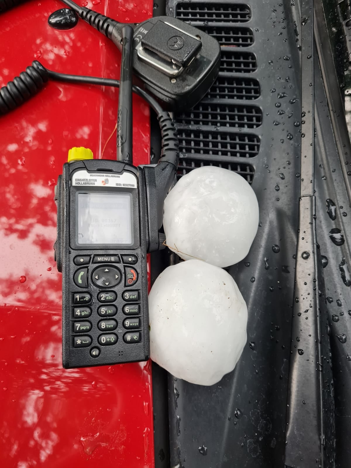 Einsatzleiter in Suttenbrunn, Unterabschnittskommandant Harald Dallamassl, berichtet von über 30 Einsatzstellen in Suttenbrunn und fast 600 Einsatzstunden, die in 6 Tagen geleistet wurden: „Auch die ältesten Dorfbewohner können sich nicht an so ein Wetterereignis erinnern. Die Hagelkörner hatten ein Gewicht von bis zu 300g. In Suttenbrunn ist fast jedes Dach beschädigt. Wir brachten Planen an und verklebten hunderte Meter Abdichtband, das wir kurzfristig aus der gesamten Gegend organisiert haben. Auch der Teich ging über die Ufer und Keller waren überflutet. Ich möchte mich bei allen Feuerwehrmitgliedern bedanken, die in Suttenbrunn im Einsatz waren, bei meinen eigenen Kameradinnen und Kameraden, aber auch bei den Kräften aus Hollabrunn, Stockerau und Retz.“