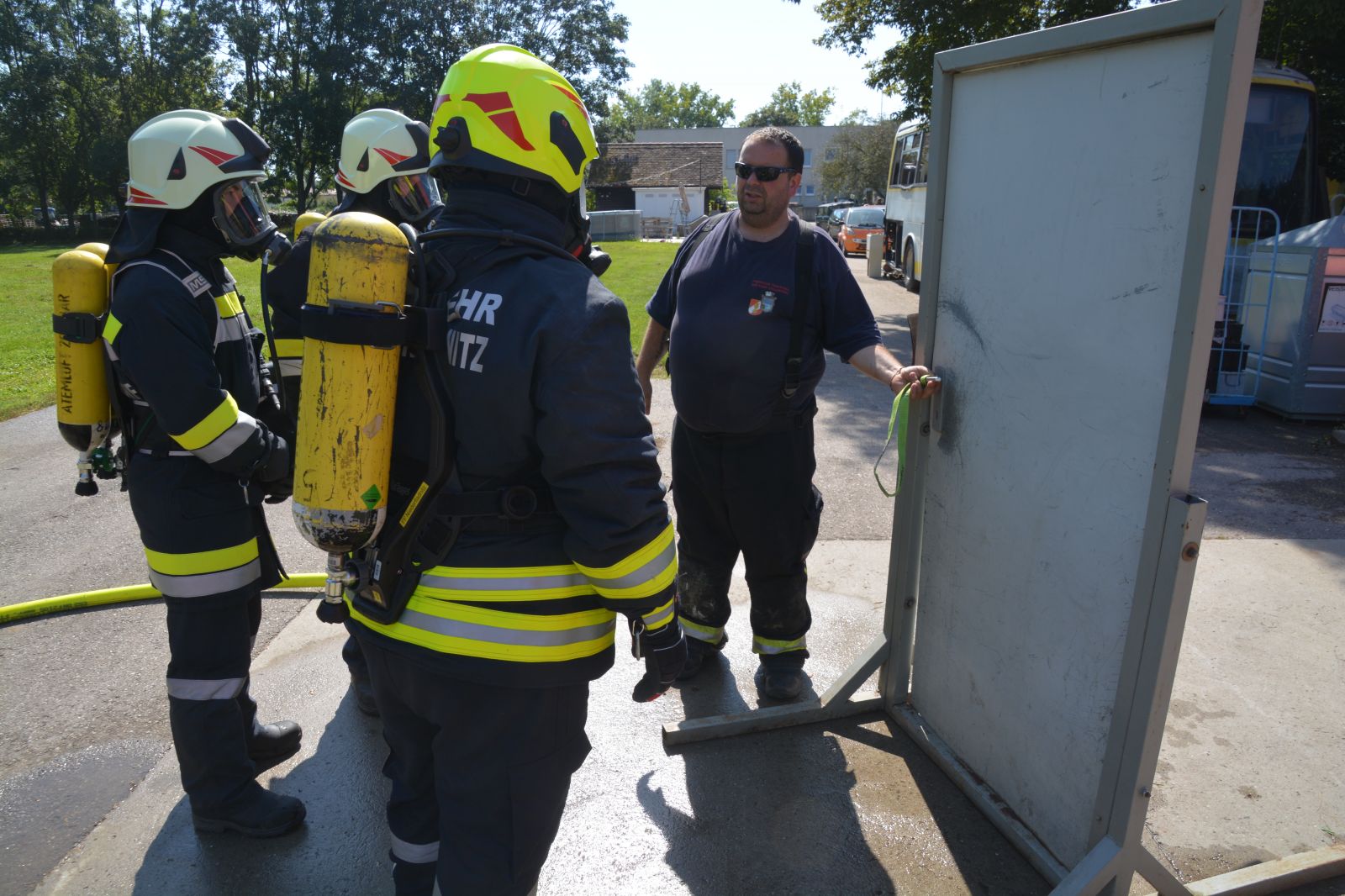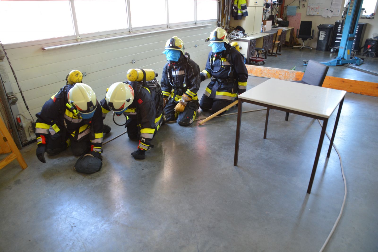 Die Ausbildung umfasst unter anderem: *) Handhabung des Geräts *) Türöffnung im Brandfall *) Suchtechniken *) Fortbewegungsarten & Rettungsgriffe *) Übungsstrecke im Brandcontainer