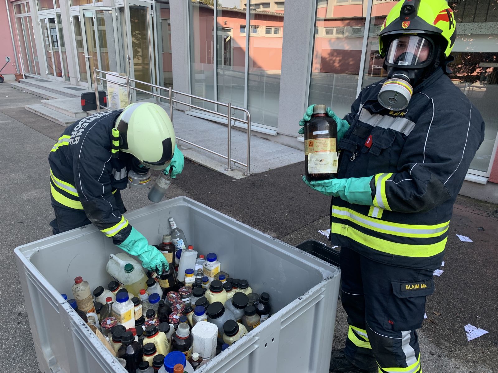 Unter der Leitung von Bezirkssachbearbeiter Schadstoff ABI Christian Holzer rückten Schadstoffeinheiten aus dem Bezirk Hollabrunn zum betroffenen Einsatzobjekt an. Unter Beachtung der Eigensicherheit wurde ein Trupp mit Schutzanzügen der Schutzstufe 2 unter umluftunabhängigem Atemschutz wurden rund 60 Behälter mit Kleinmengen unterschiedlichster Stoffe aus dem Gefahrenbereich geborgen.