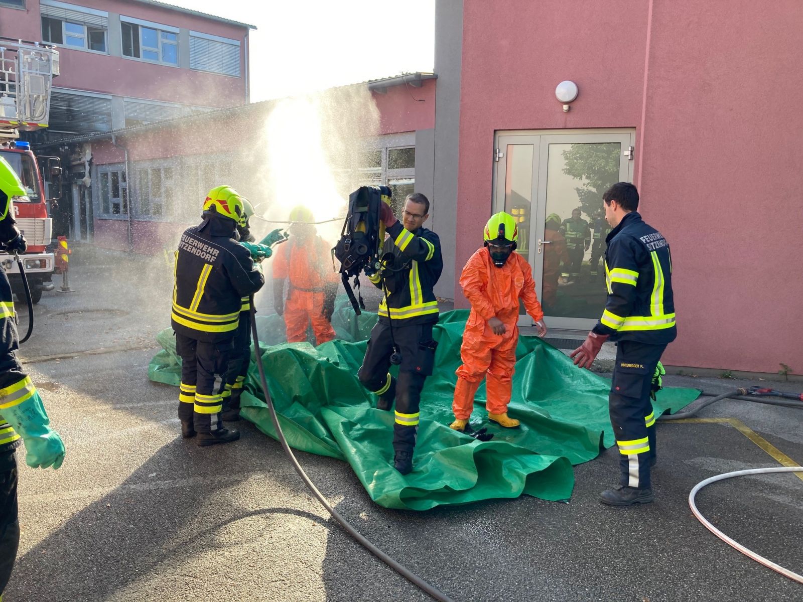 Der Feuerwehreinsatzleiter entschied sich die Schadstoffgruppe zur Unterstützung zu alarmieren.