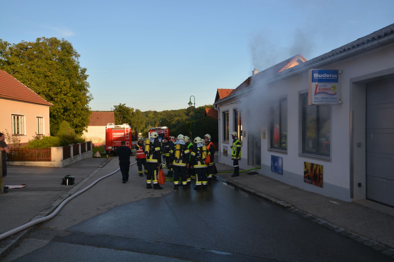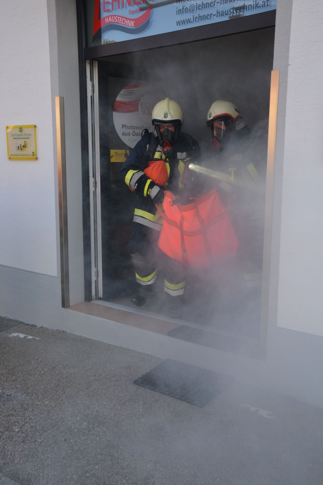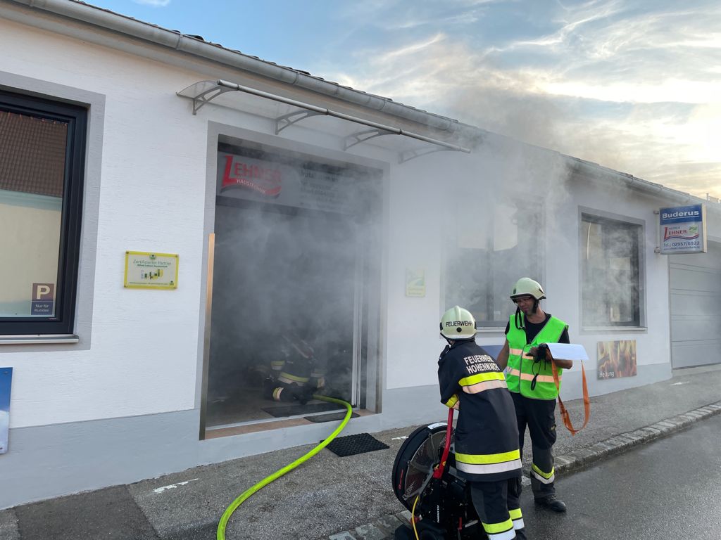 Übungsannahme war ein Brand beim Installateur Lehner mit vermissten Personen.
