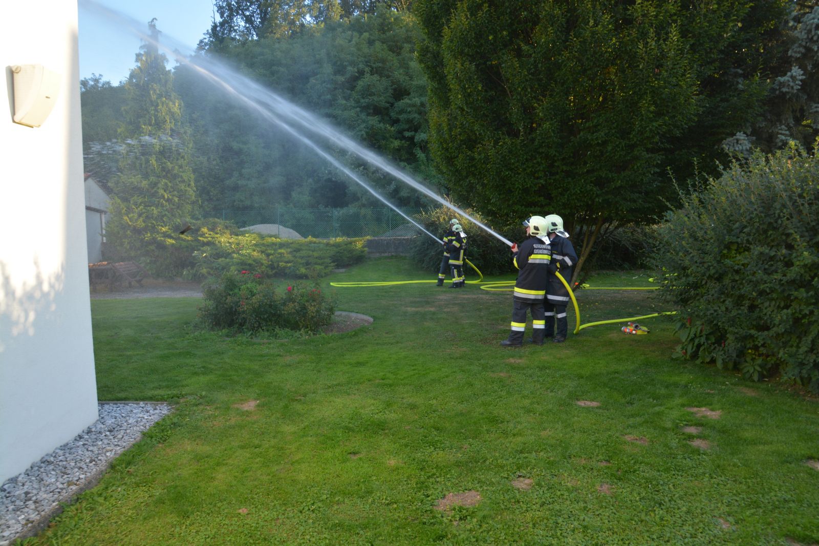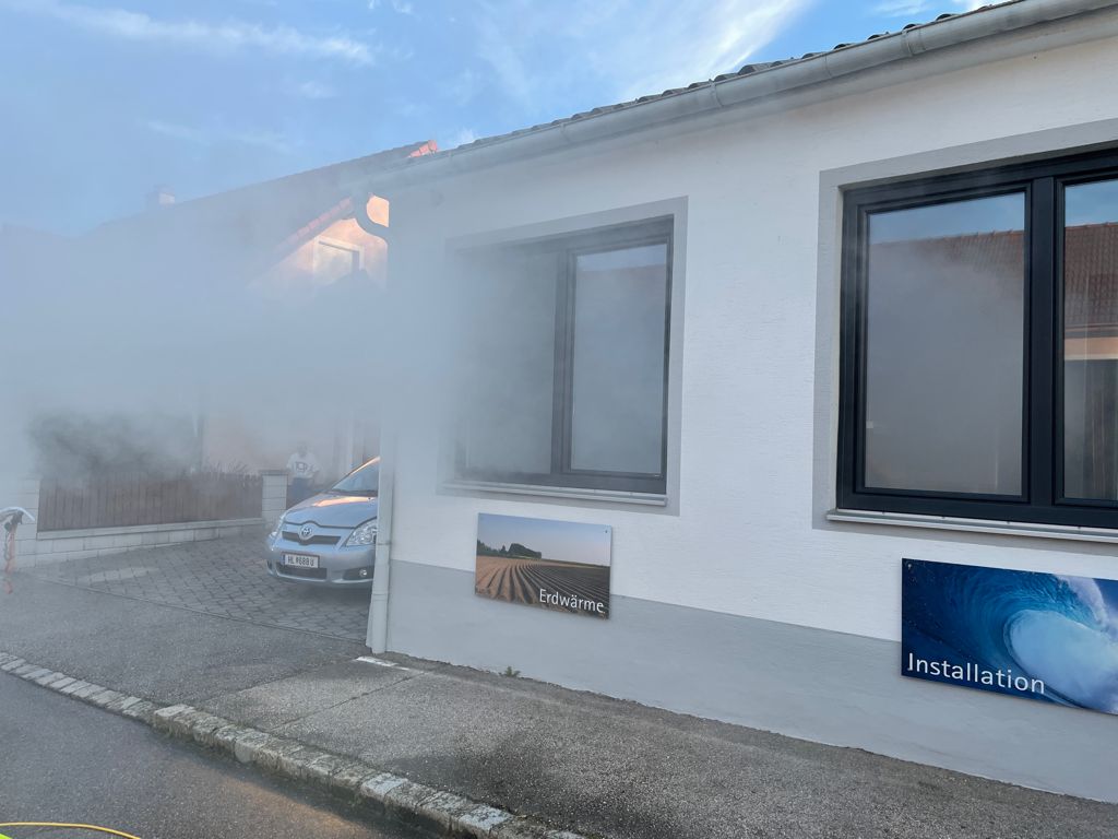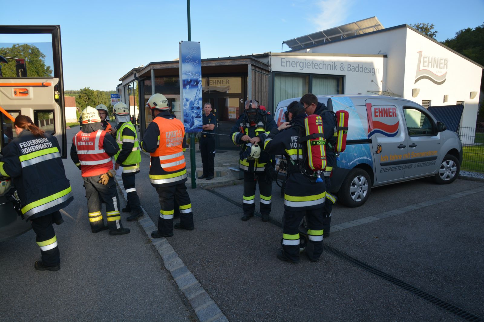 Übungsannahme war ein Brand beim Installateur Lehner mit vermissten Personen.