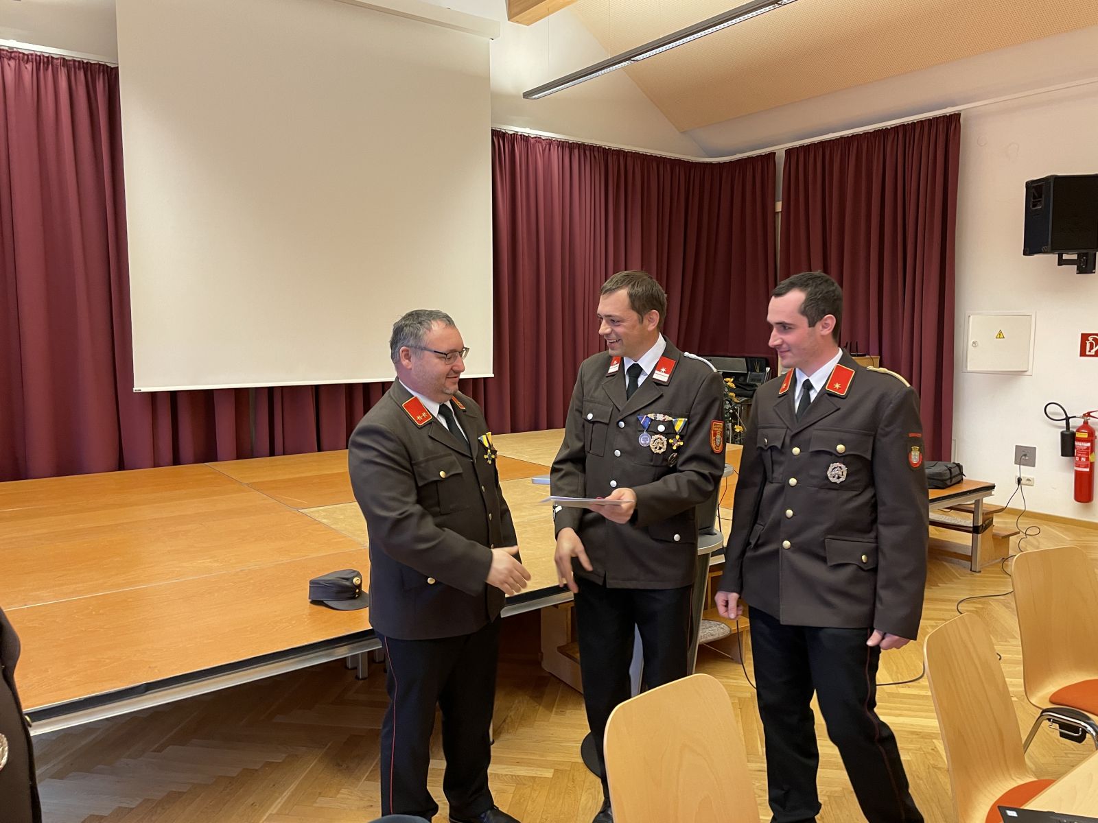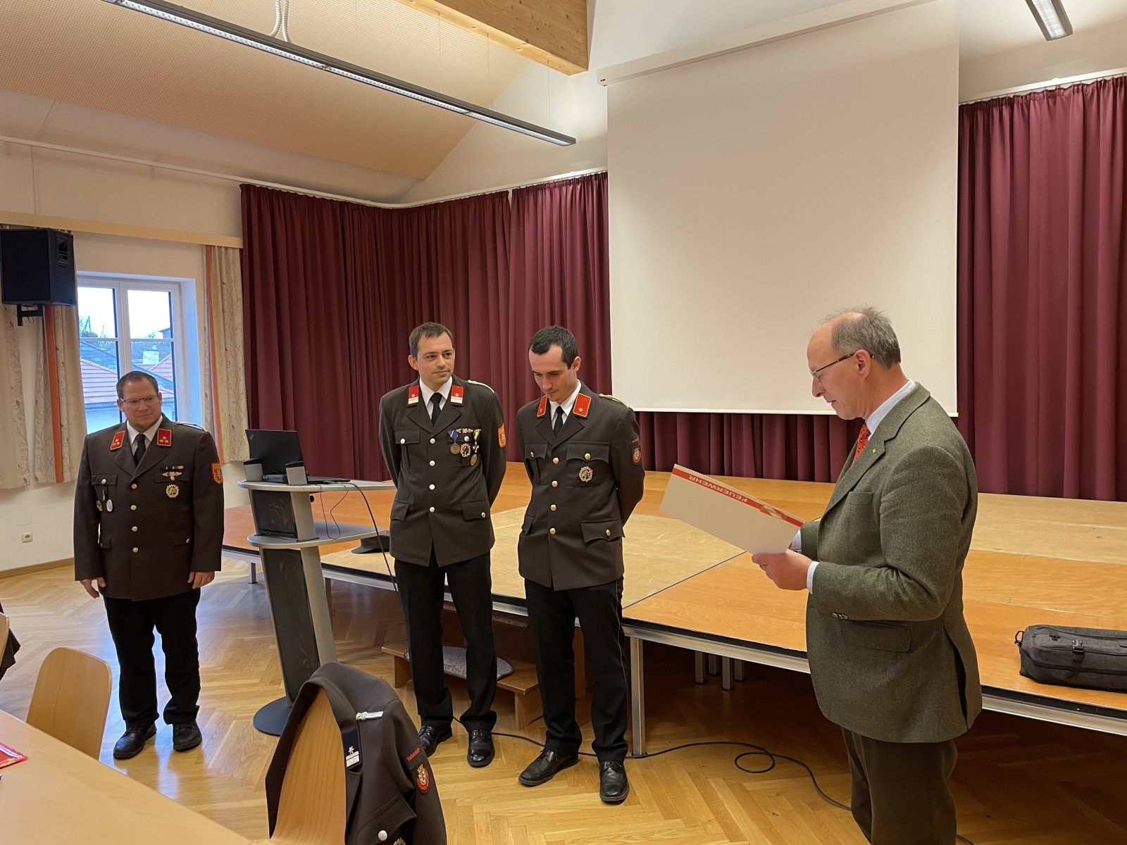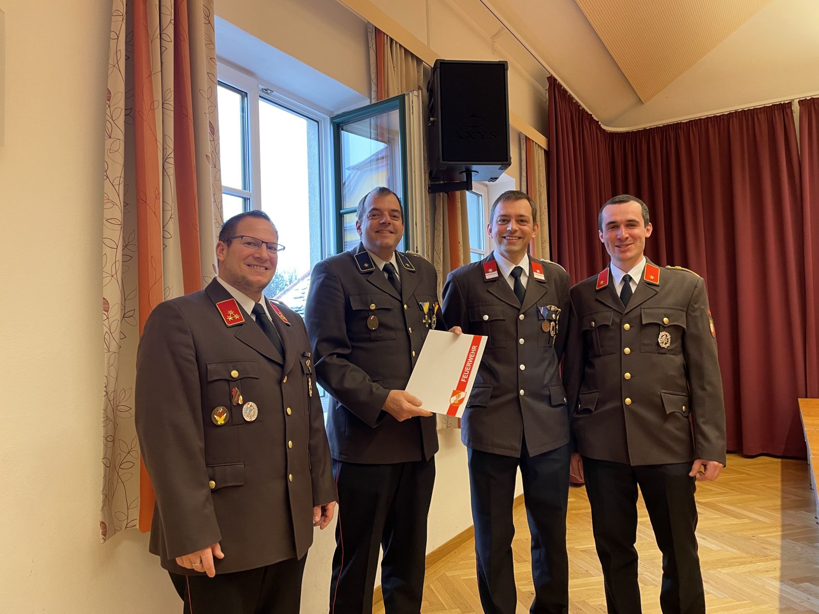 Werner Trauner wurde zum Ehren-Oberbrandinspektor ernannt. Leo Elsner übernahm den Zugskommandanten von Stefan Obritzhauser und wurde zum Oberbrandmeister befördert.