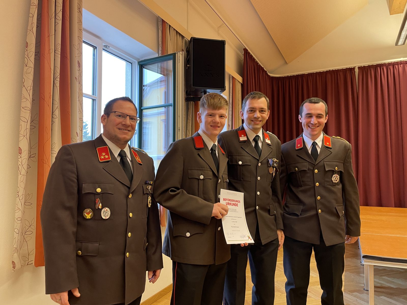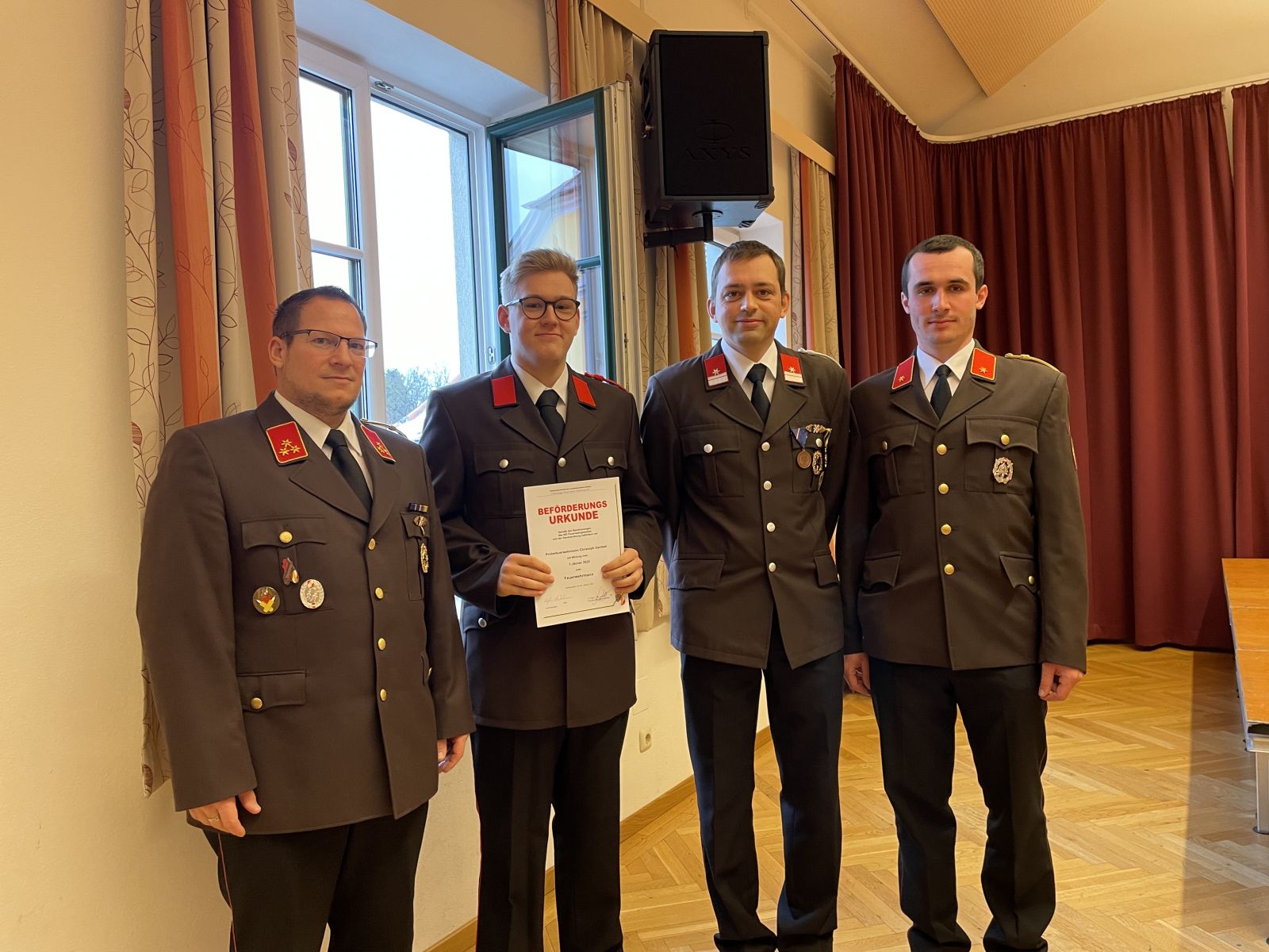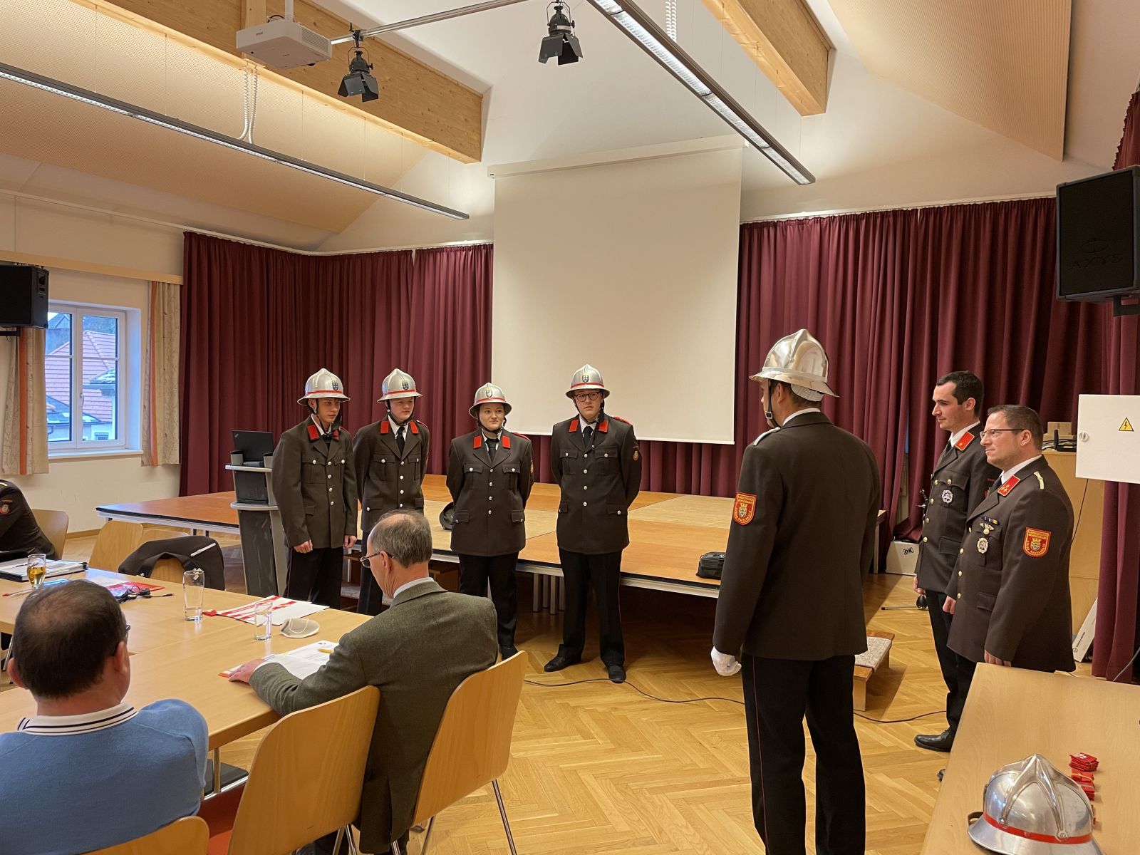 Weitere Beförderungen: Christian Obritzhauser zum Ehrenverwalter, Martin Haberl zum Oberlöschmeister und Josef Kraft jun. zum Ehrenbrandmeister.