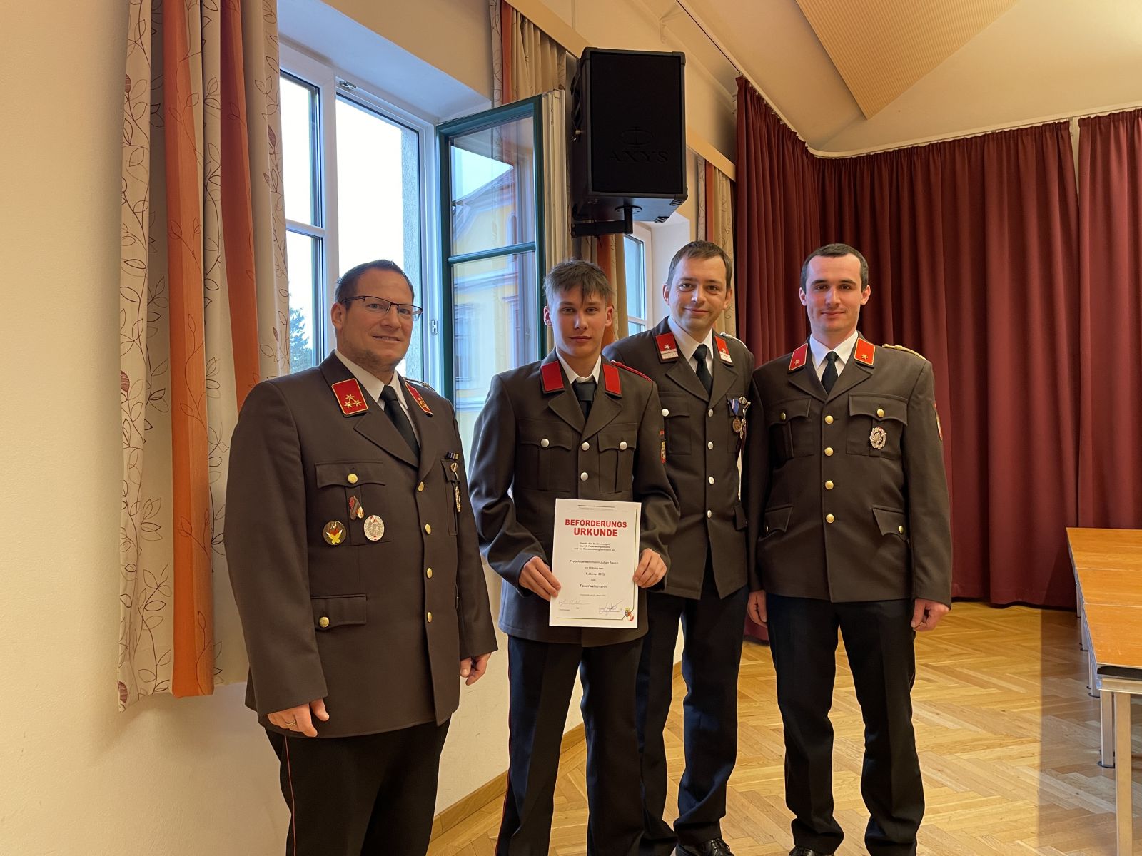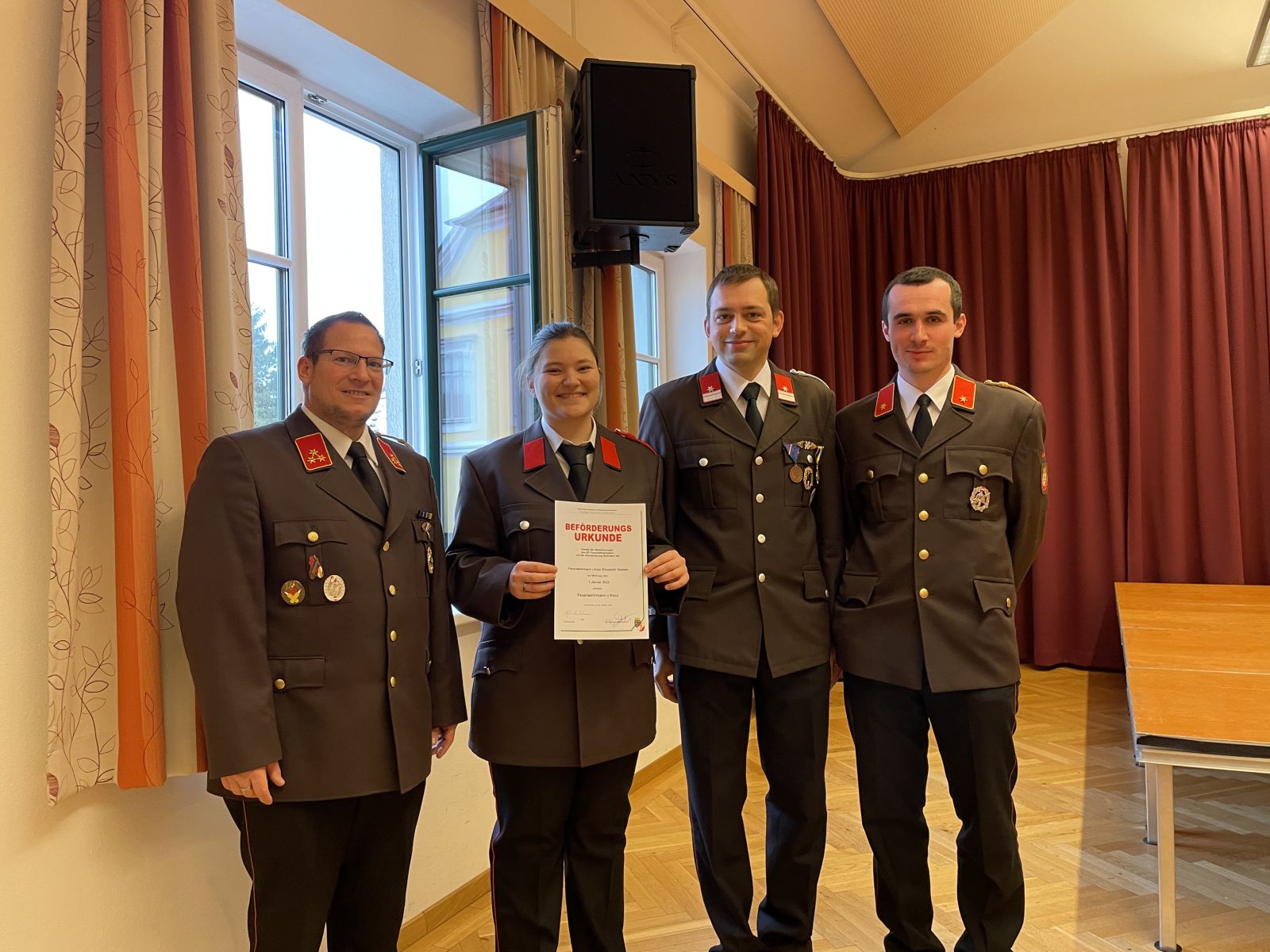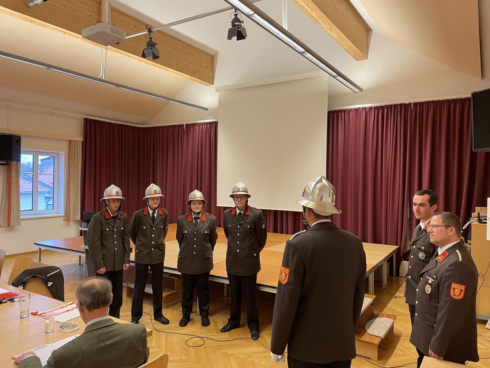 Weitere Beförderungen: Christian Obritzhauser zum Ehrenverwalter, Martin Haberl zum Oberlöschmeister und Josef Kraft jun. zum Ehrenbrandmeister.