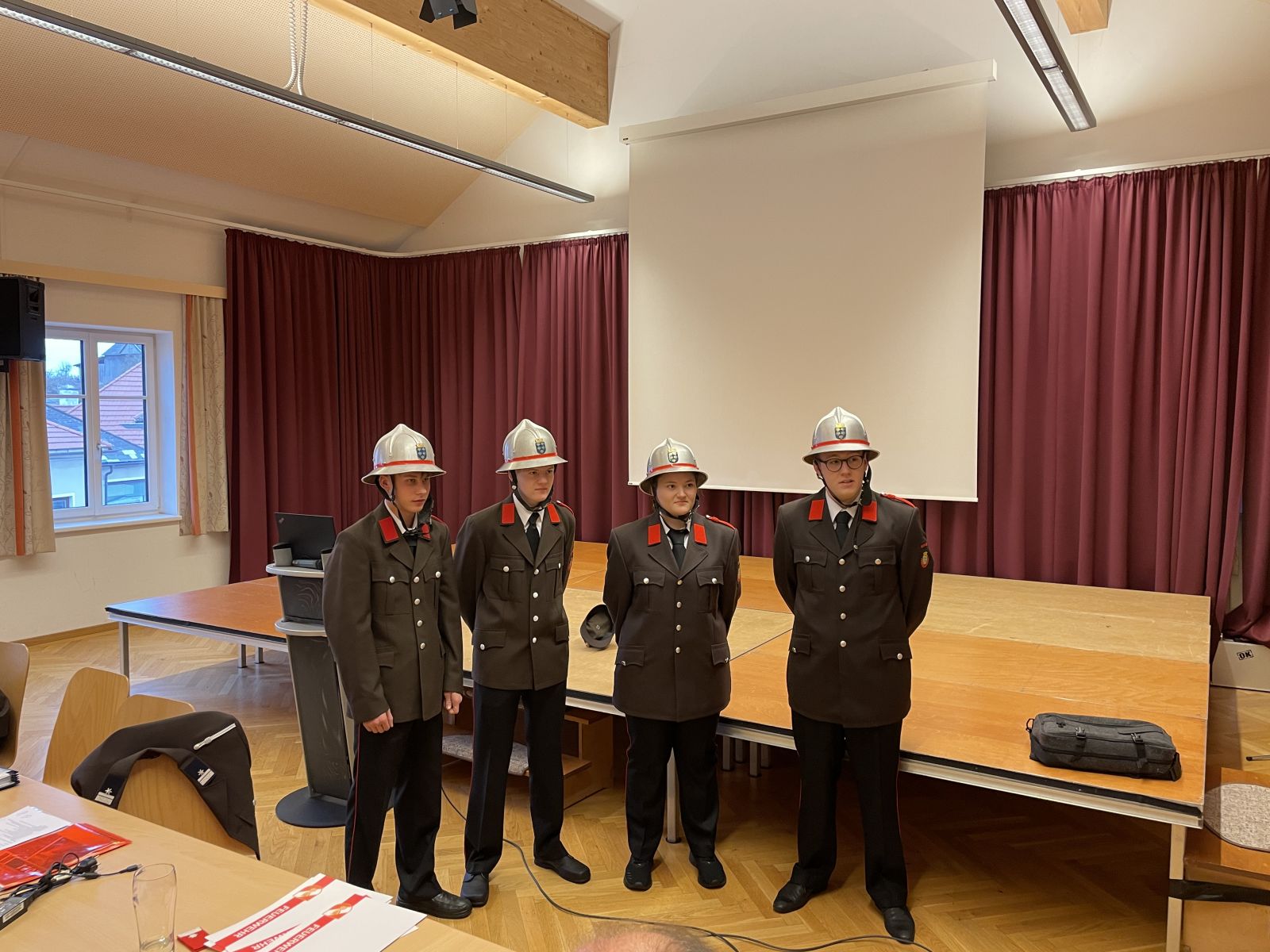 Danach wurde noch die Angelobung unserer 4 Neueintritte von 2021 nachgeholt: Elisabeth Hauser, Leonhard Hagenbüchl, Julian Rauch und Christoph Zanitzer.