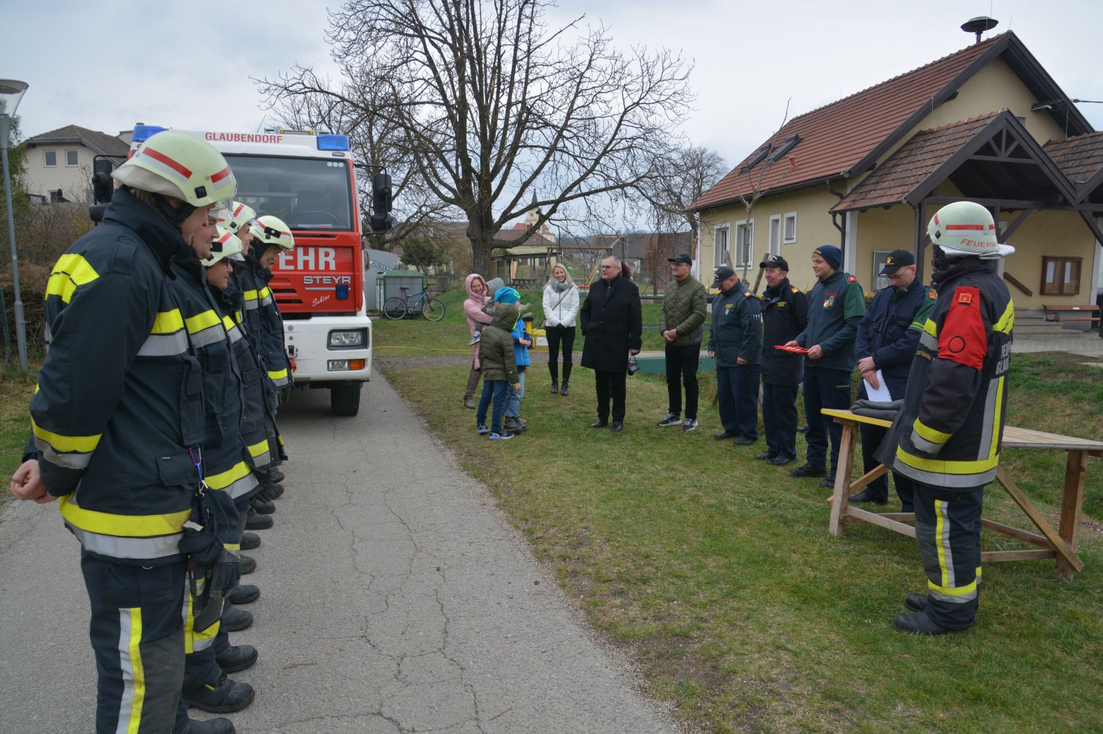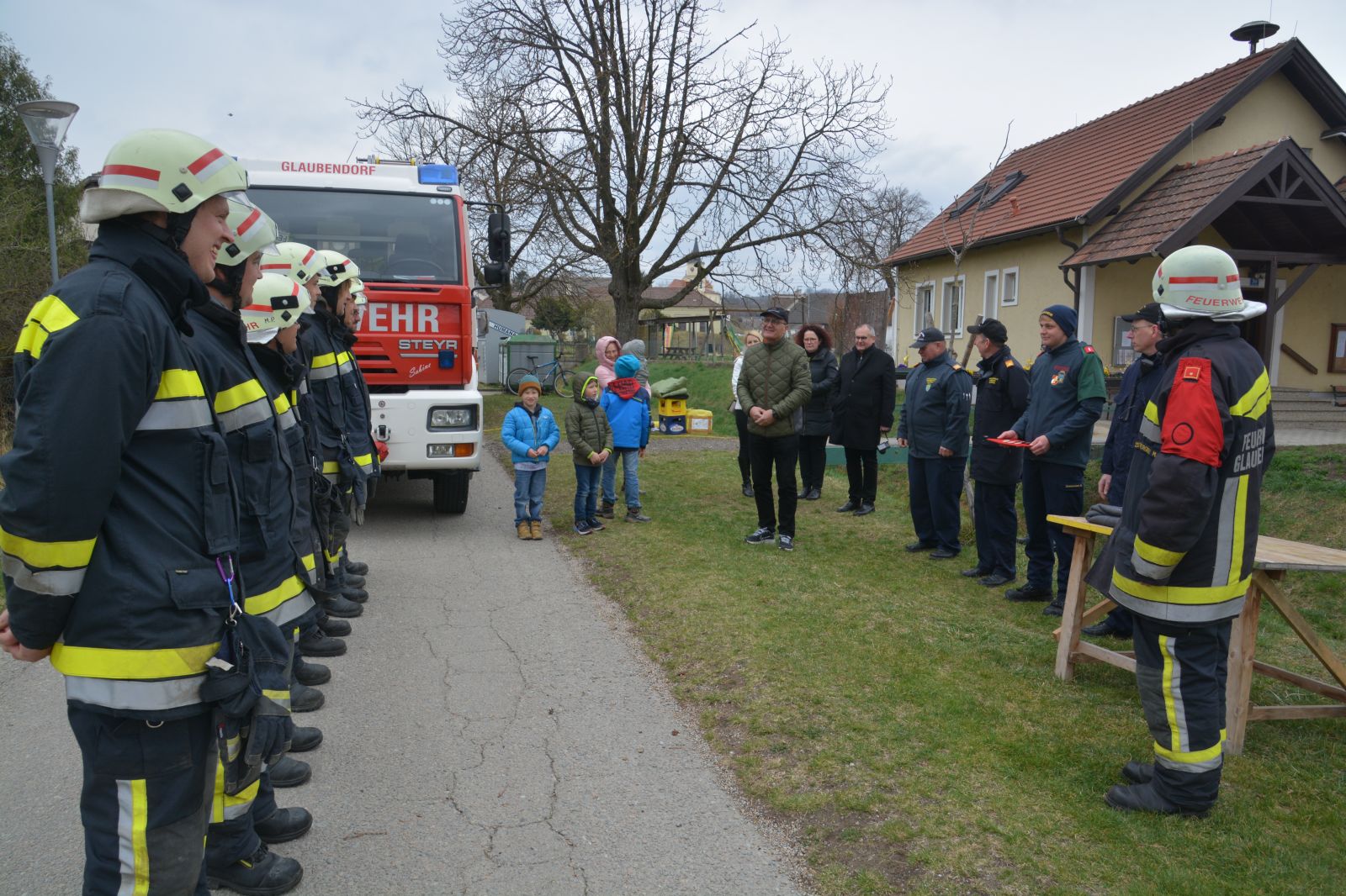 Im Anschluss bedankte sich Bezirksfeuerwehrkommandant LFR Alois Zaussinger in seiner Rede bei den Kameraden und nannte die Feuerwehr Glaubendorf eine Ausbildungshochburg, da jedes Jahr eine Ausbildungsprüfung stattfindet. Welche wiederum hilft, Einsätze organisierter und besser abzuwickeln, da die Kameraden bestens geschult sind.