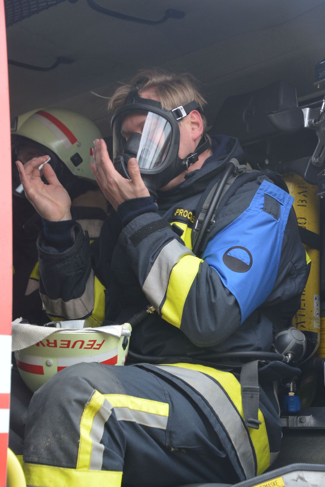 Die Leistungsprüfung wurde in der Schutzbekleidung abgelegt und somit kamen die Kandidaten ordentlich ins Schwitzen.