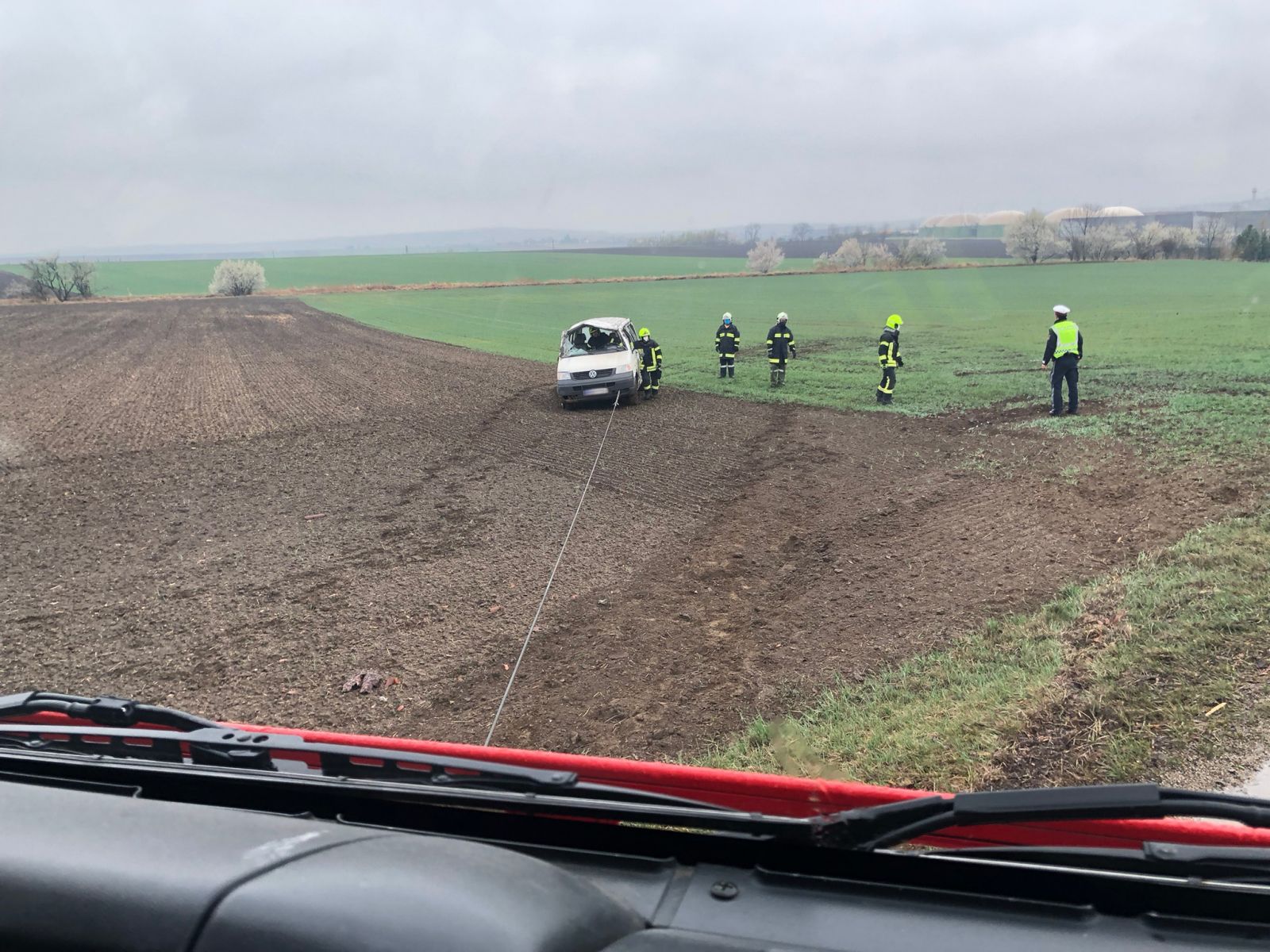 Am Einsatzort angekommen wurden die verletzten Fahrzeuginsassen bereits vom Roten Kreuz versorgt. Die Polizei regelte den Straßenverkehr. Beim Abtransport der beiden verletzten Personen zu den Rettungswagen unterstützen die Kameraden die Rot-Kreuz Mitarbeiter.